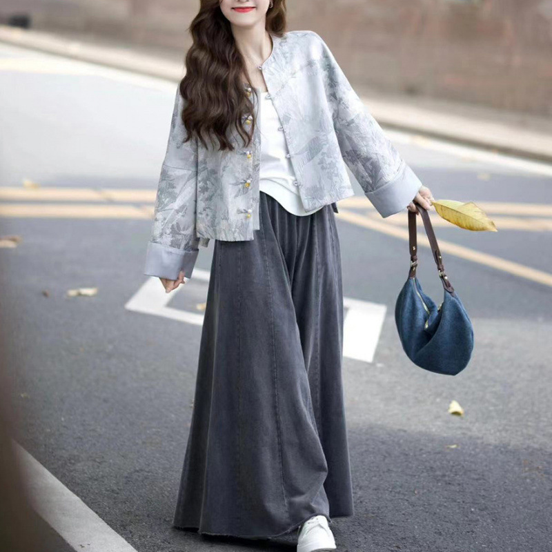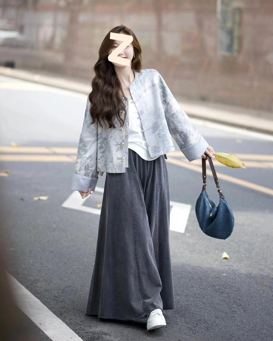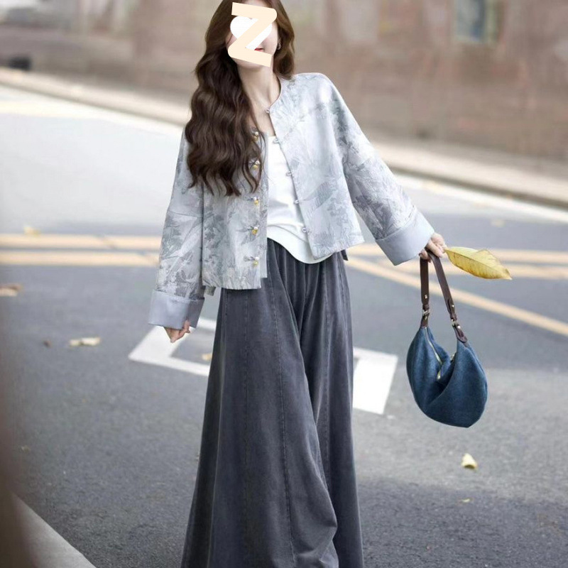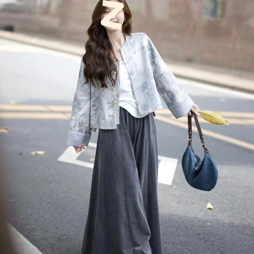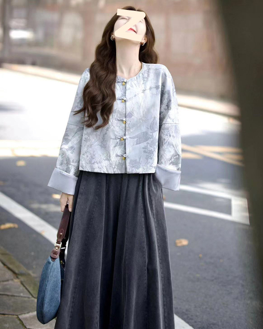올드 머니 스타일 여성을 위한 새로운 중국 스타일 의류 2025 새로운 디자인 루즈 자켓 하이 웨이스트 청바지 스커트 무료 배송스토어 가기