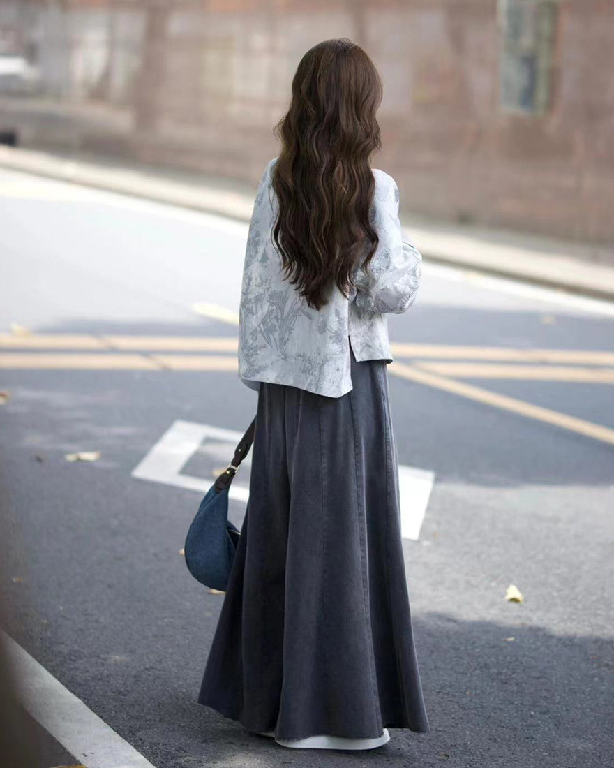 올드 머니 스타일 여성을 위한 새로운 중국 스타일 의류 2025 새로운 디자인 루즈 자켓 하이 웨이스트 청바지 스커트 무료 배송