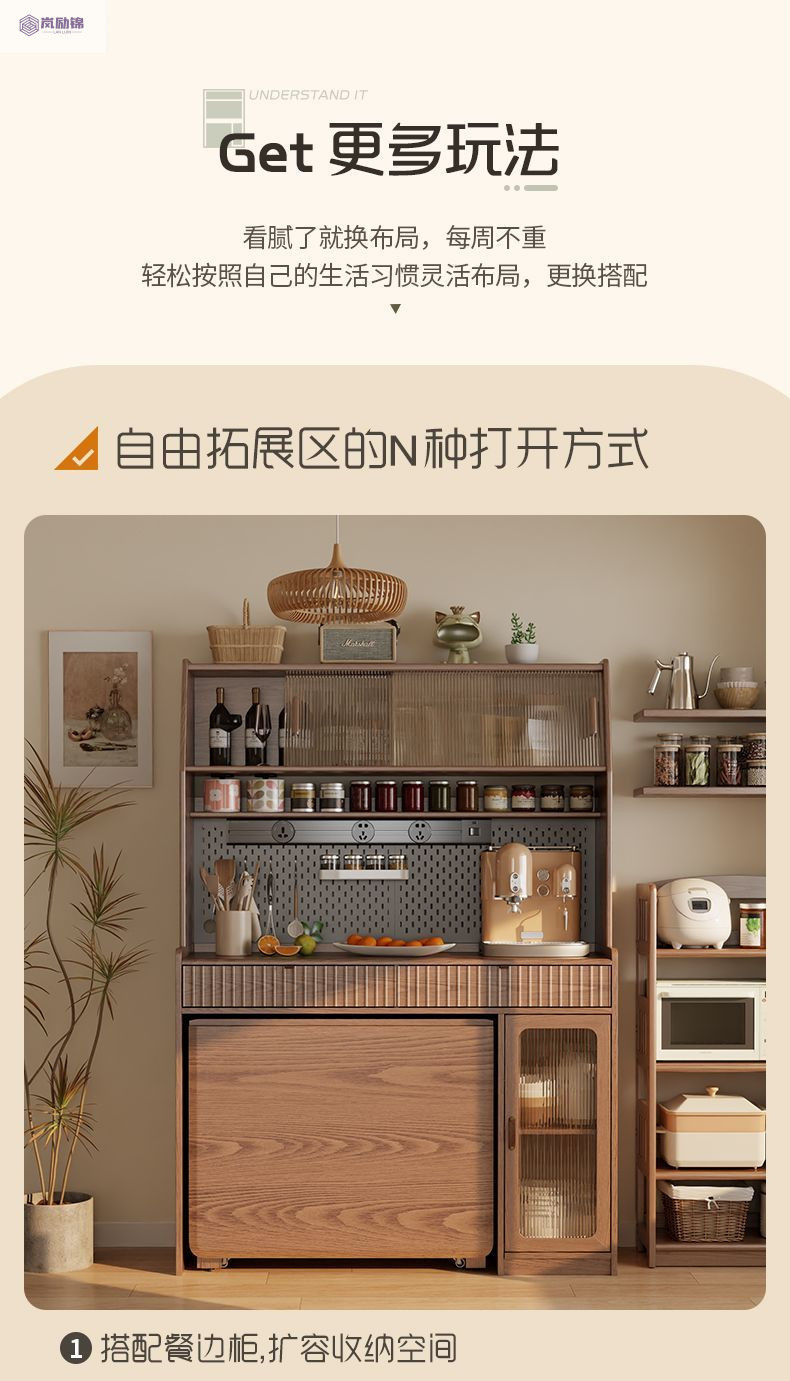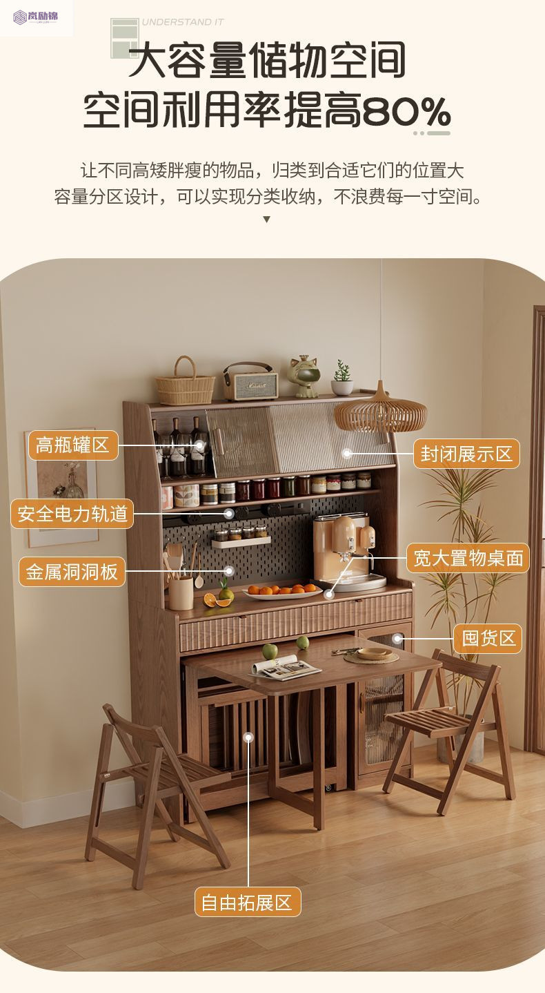 원목 찬장, 식탁, 일체형 벽걸이 수납장, 와인 캐비닛, 식탁이 있는 모던 심플 수납장, 주방 캐비닛스토어 가기