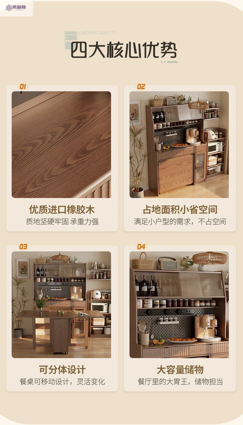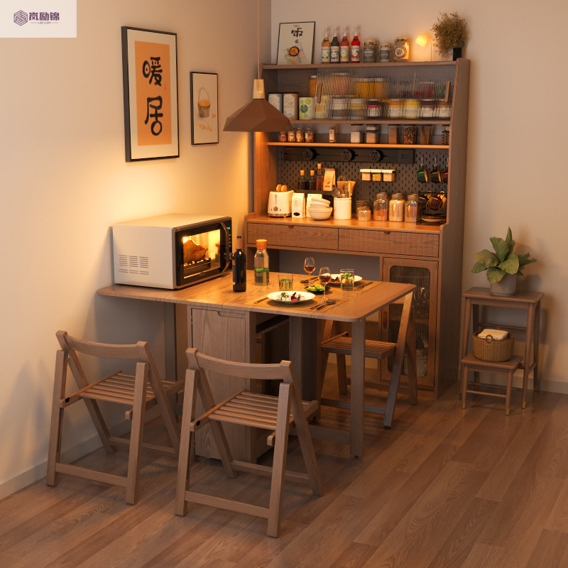 원목 찬장, 식탁, 일체형 벽걸이 수납장, 와인 캐비닛, 식탁이 있는 모던 심플 수납장, 주방 캐비닛