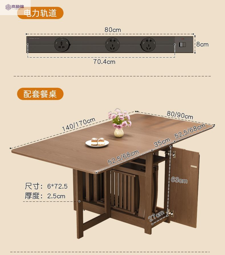 • 사이드 캐비닛 130CM 전동 레일 + 식탁과 의자 2개
