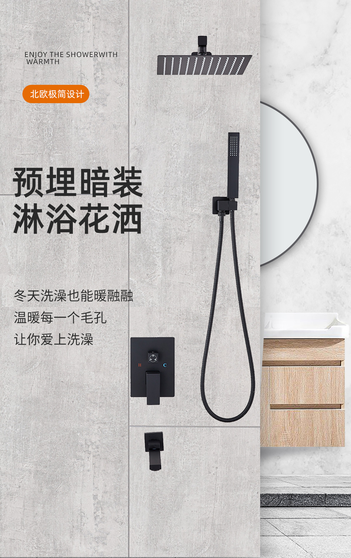 벽에 내장된 냉온수 혼합 밸브 스테인레스 스틸 샤워 헤드가 내장된 국경 간 숨겨진 샤워 세트