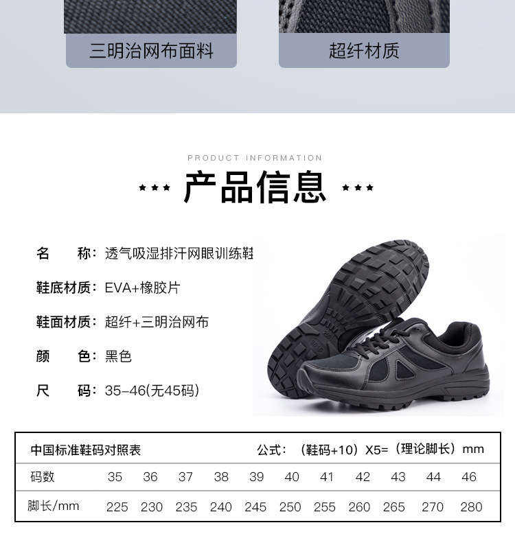 남성 경찰을위한 새로운 2024 Fire Summer 올 블랙 트레이닝 슈즈 통기성 통근 신발 야외 보안 보안 훈련 고무 신발