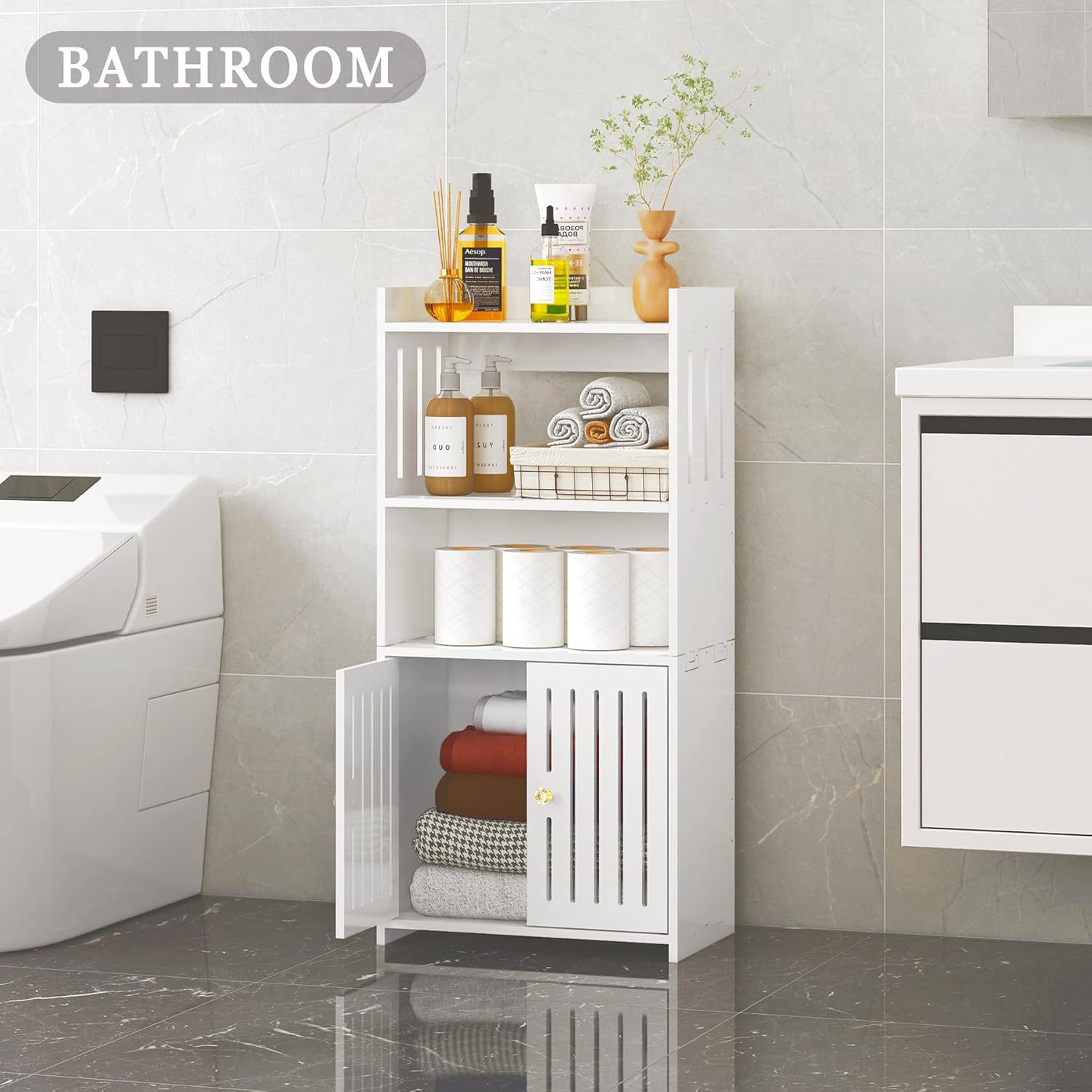 국경 간 욕실 보관함 바닥에 놓인 욕실 보관 및 정리 랙 다층 이중 도어 수직 캐비닛 보관 캐비닛 도매스토어 가기