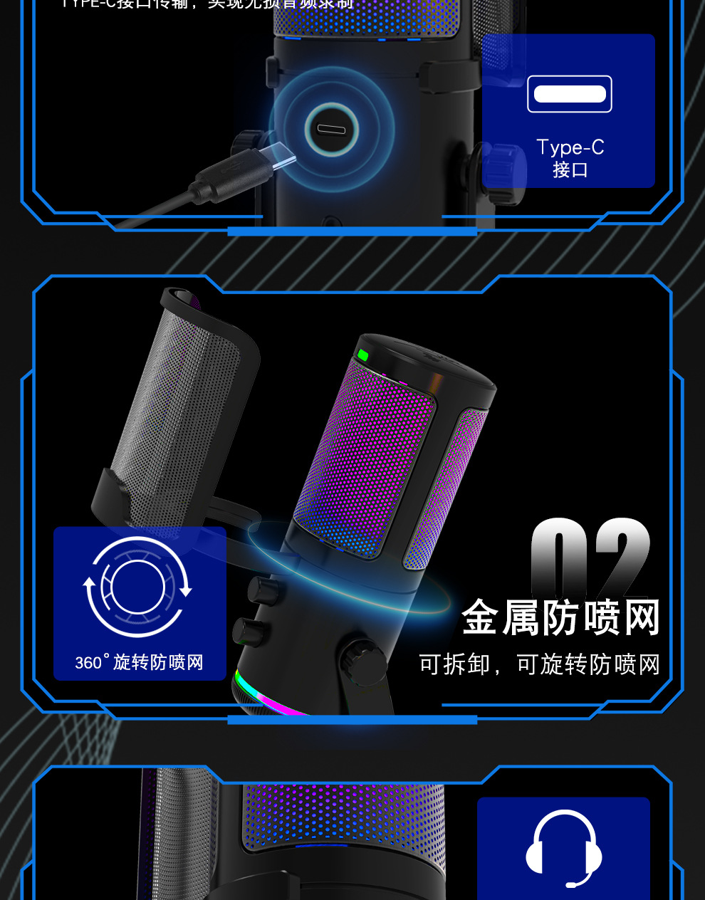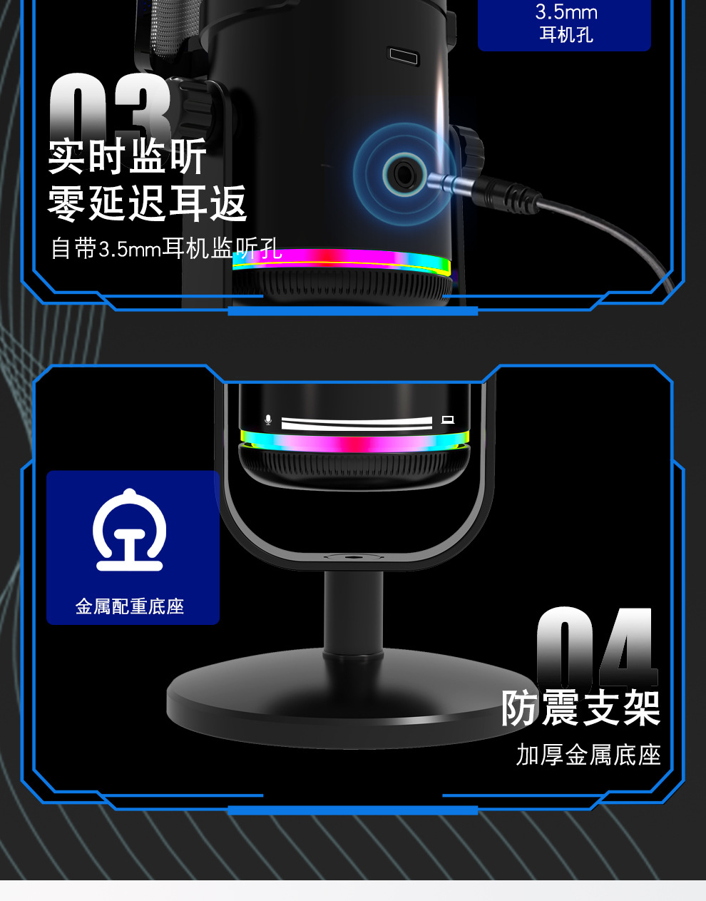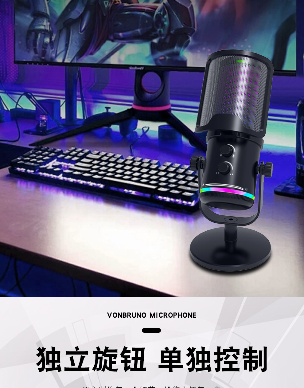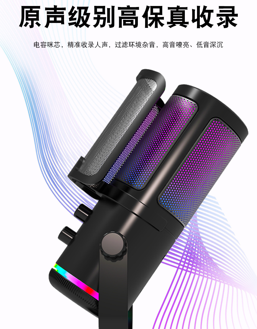 私模M16USB直播录音游戏麦克风 桌面电脑RGB电竞麦克风
