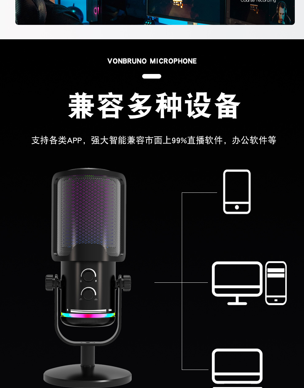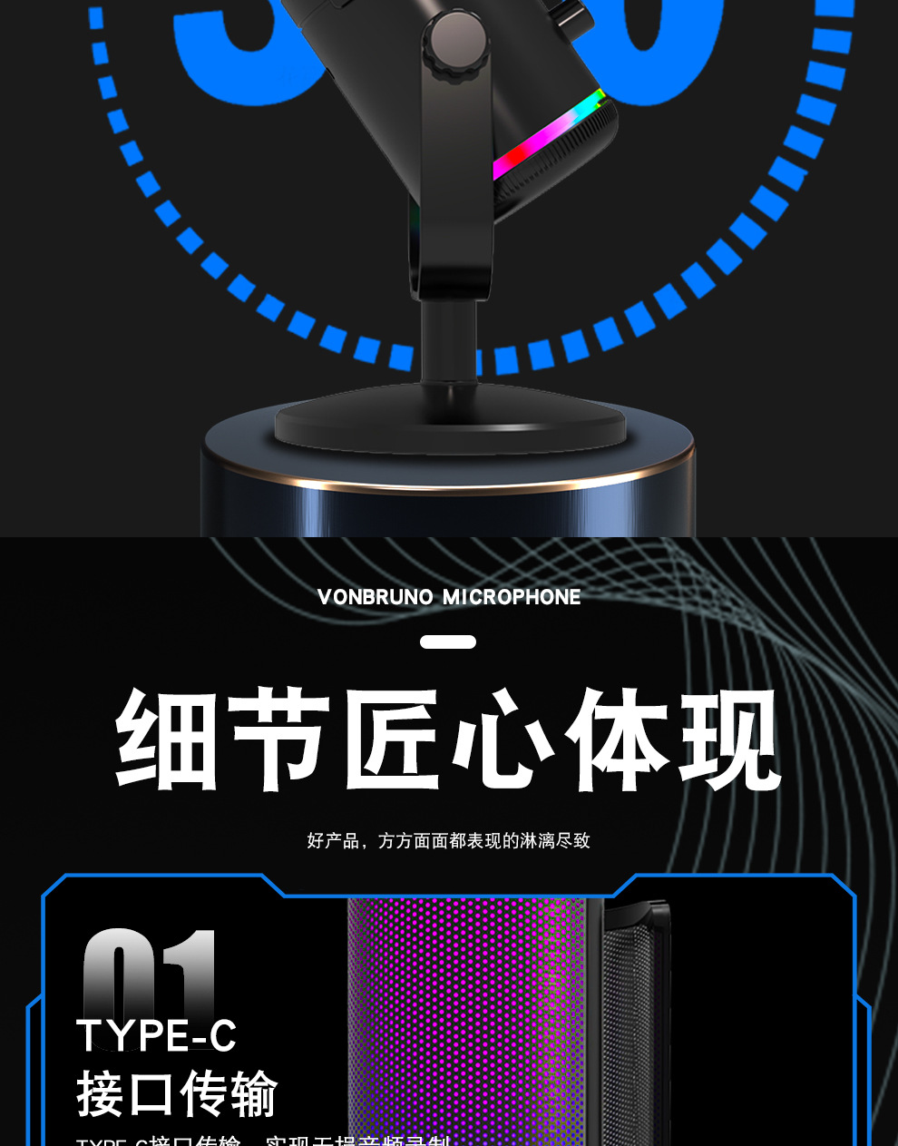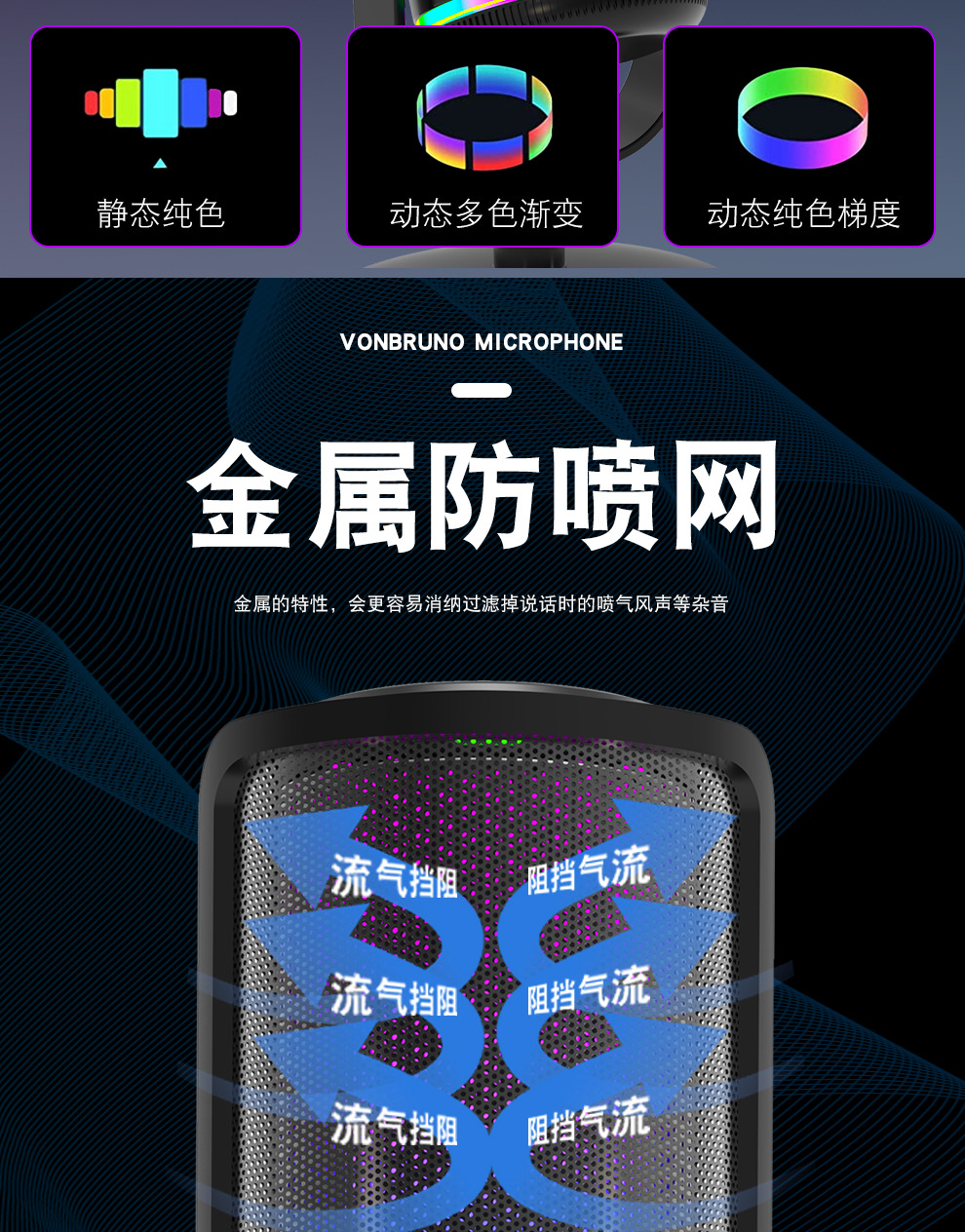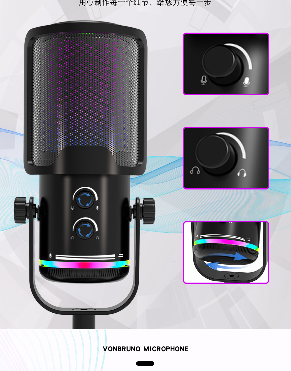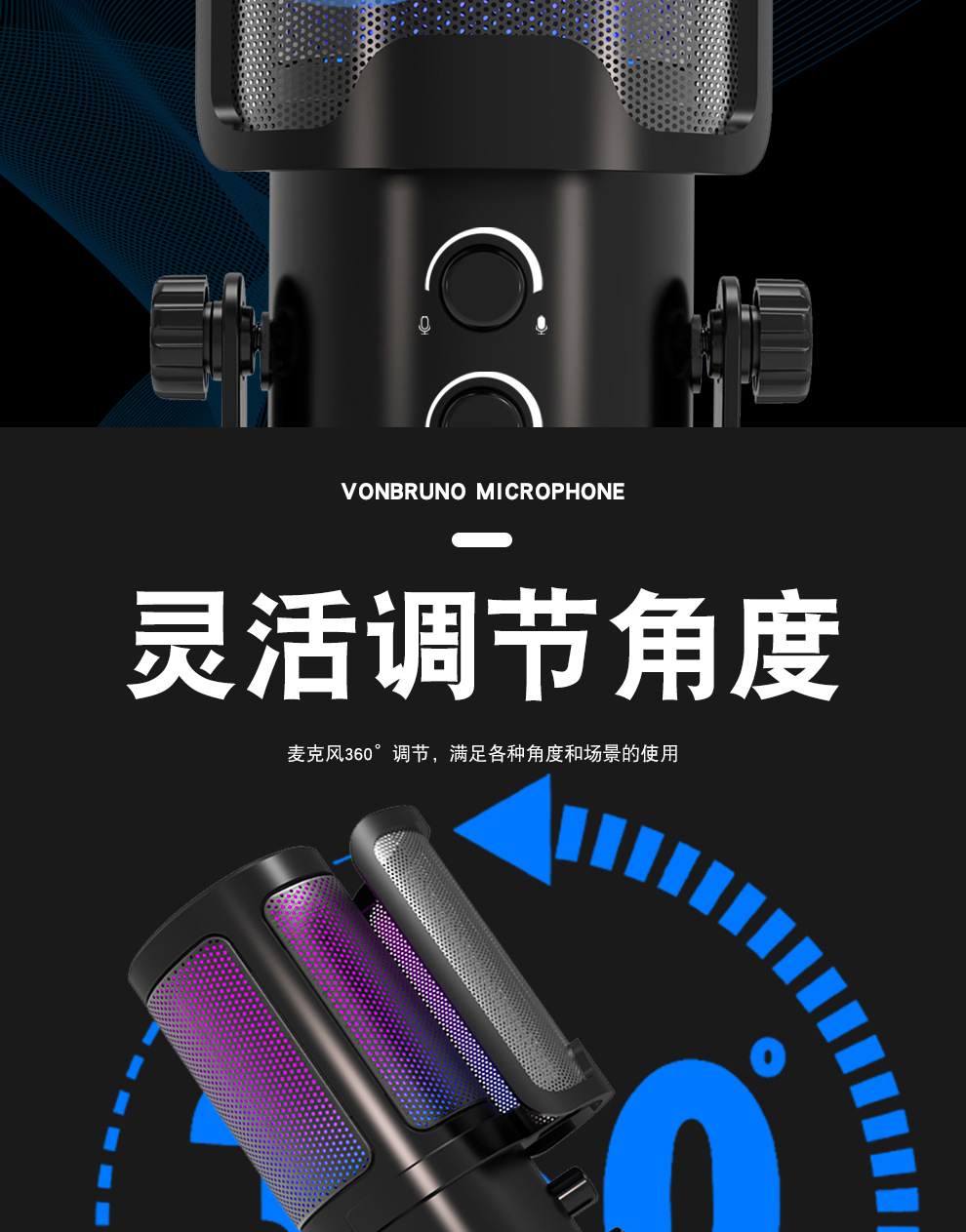 私模M16USB直播录音游戏麦克风 桌面电脑RGB电竞麦克风