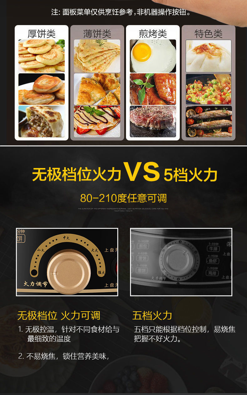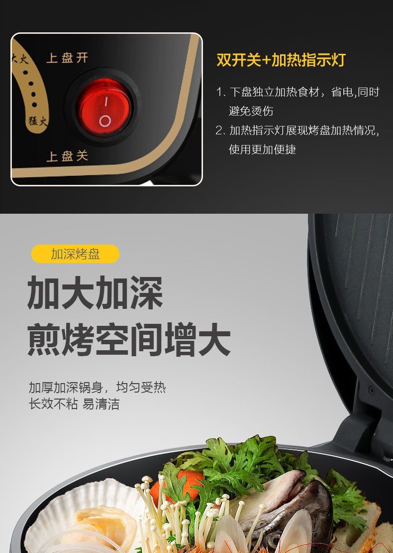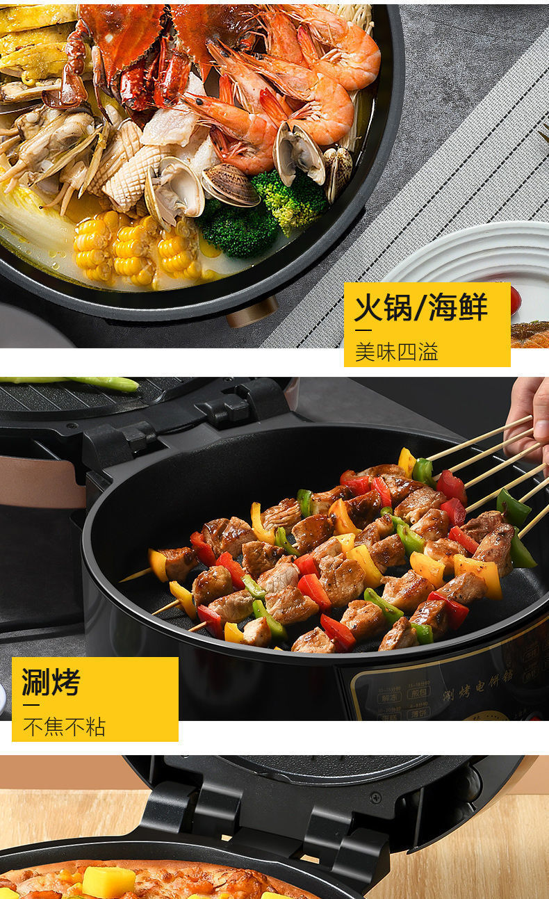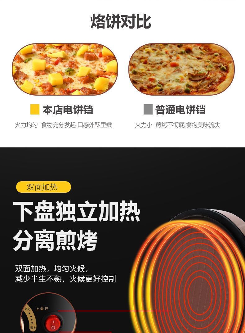 전기 베이킹 팬, 가정용 양면 가열 팬케이크 및 크레이프 기계, 자동 전원 차단, 깊은 대형 팬케이크 팬, 다기능 전기 베이킹 팬