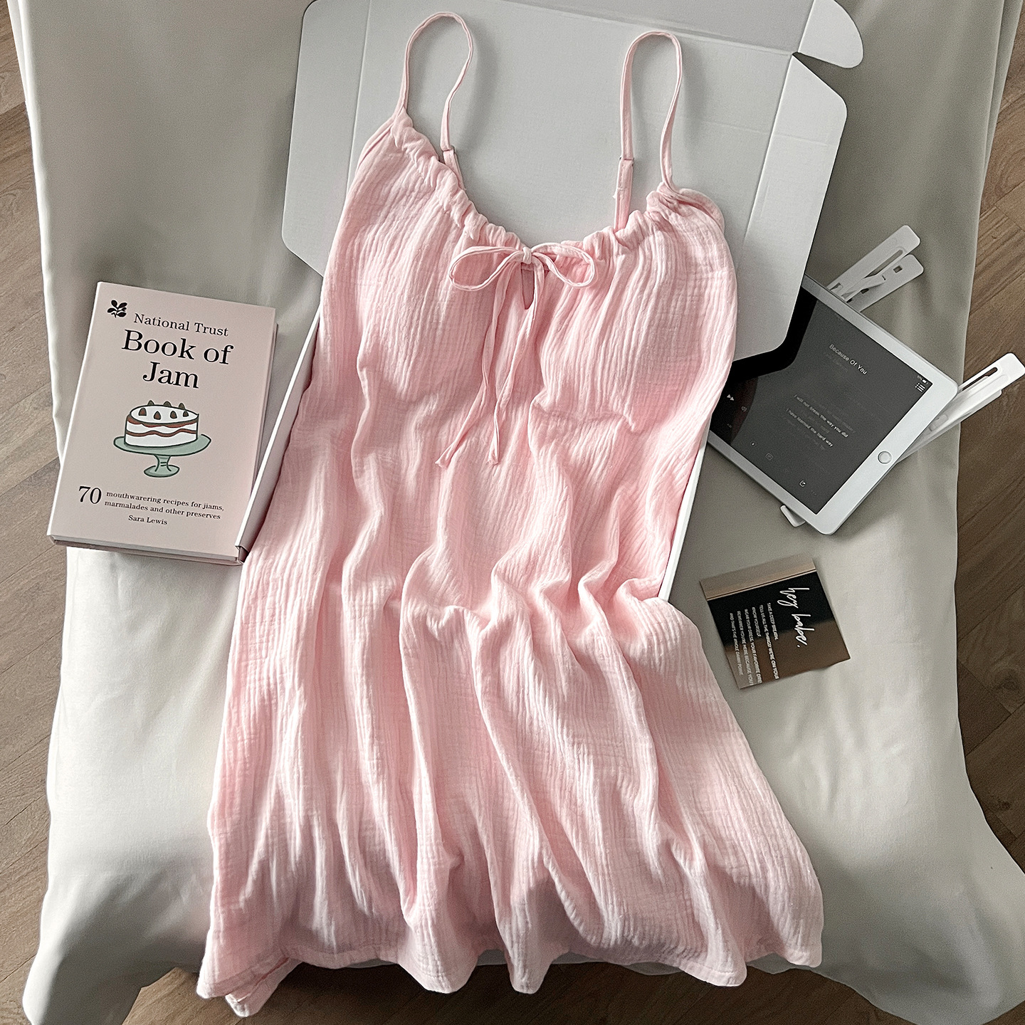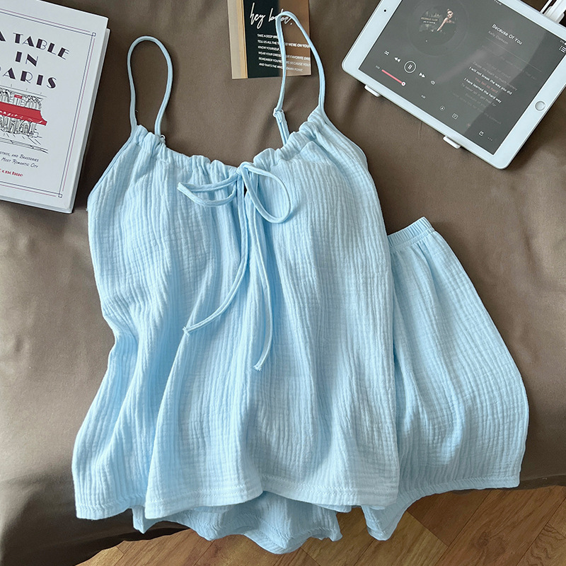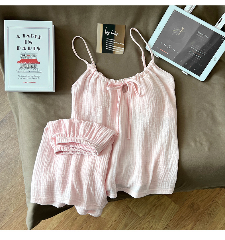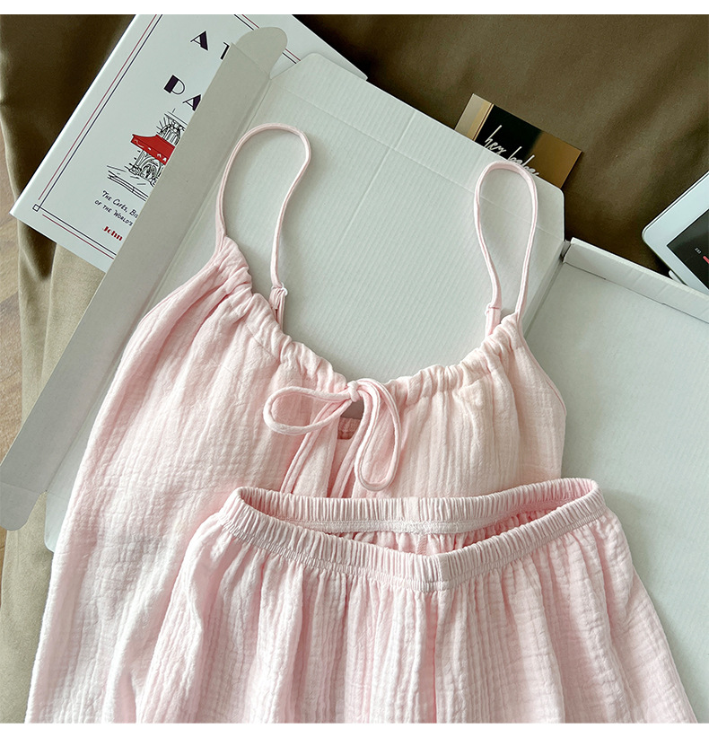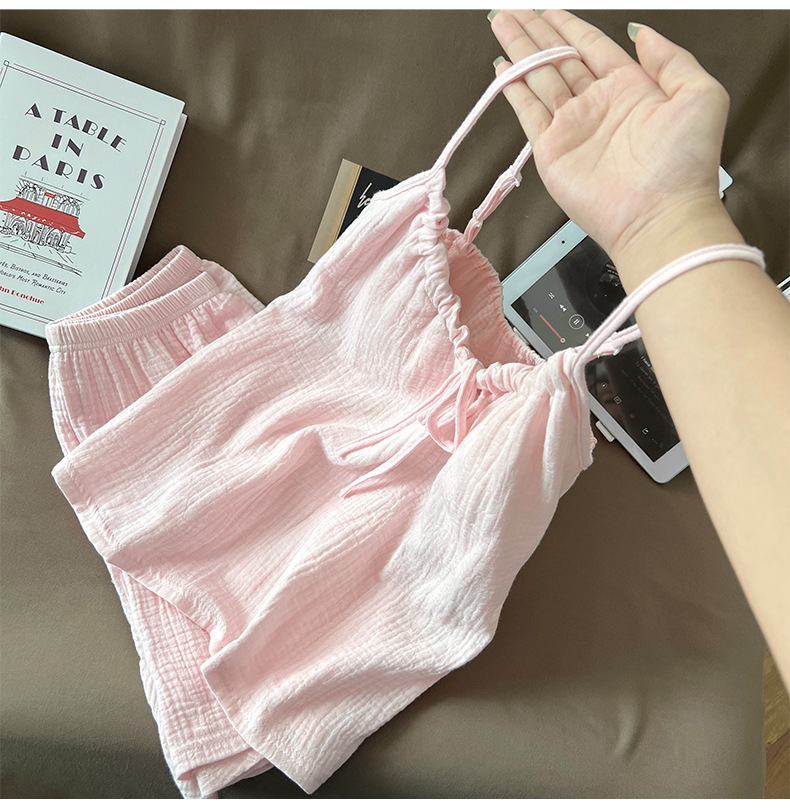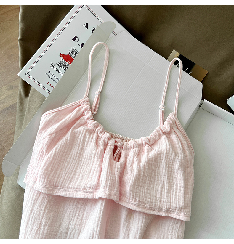 여성용 가리 핑크 서스펜더 잠옷, 여름 순면, 얇고 섹시하며 순수한 욕망, 가슴 패드, 리본 조끼, 홈웨어스토어 가기