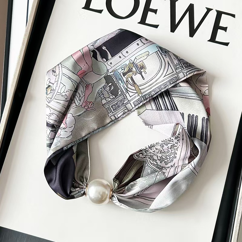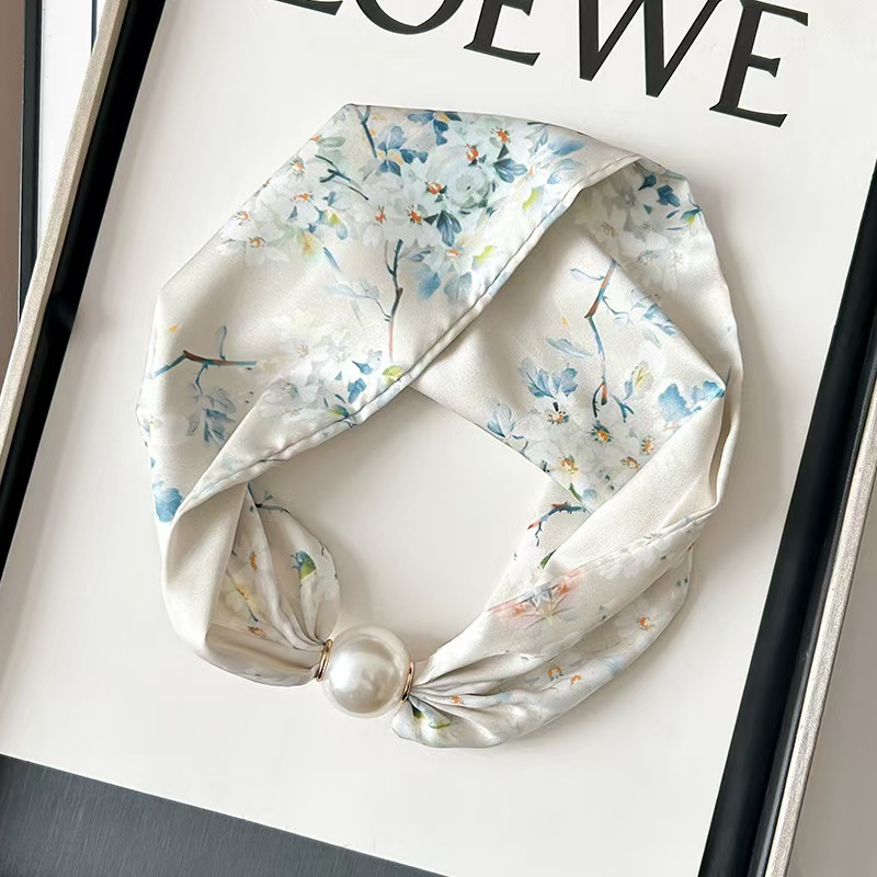 진주 목걸이, 자석 버클, 여성용 작은 실크 스카프, 봄, 가을 목 보호대, 셔츠와 매치하는 목 스카프, 쇄골 목 장식, 얇은 스카프스토어 가기