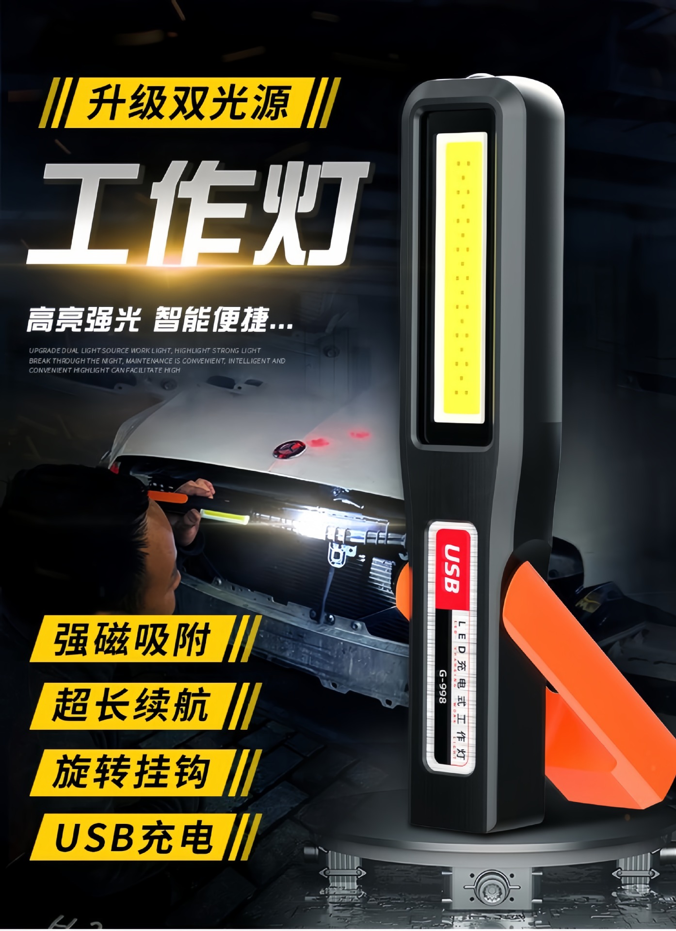 슈퍼 밝은 작업 조명 자동 수리 및 유지 보수 조명 led 자기 강한 빛 자동차 수리 및 유지 보수 조명 손전등 충전