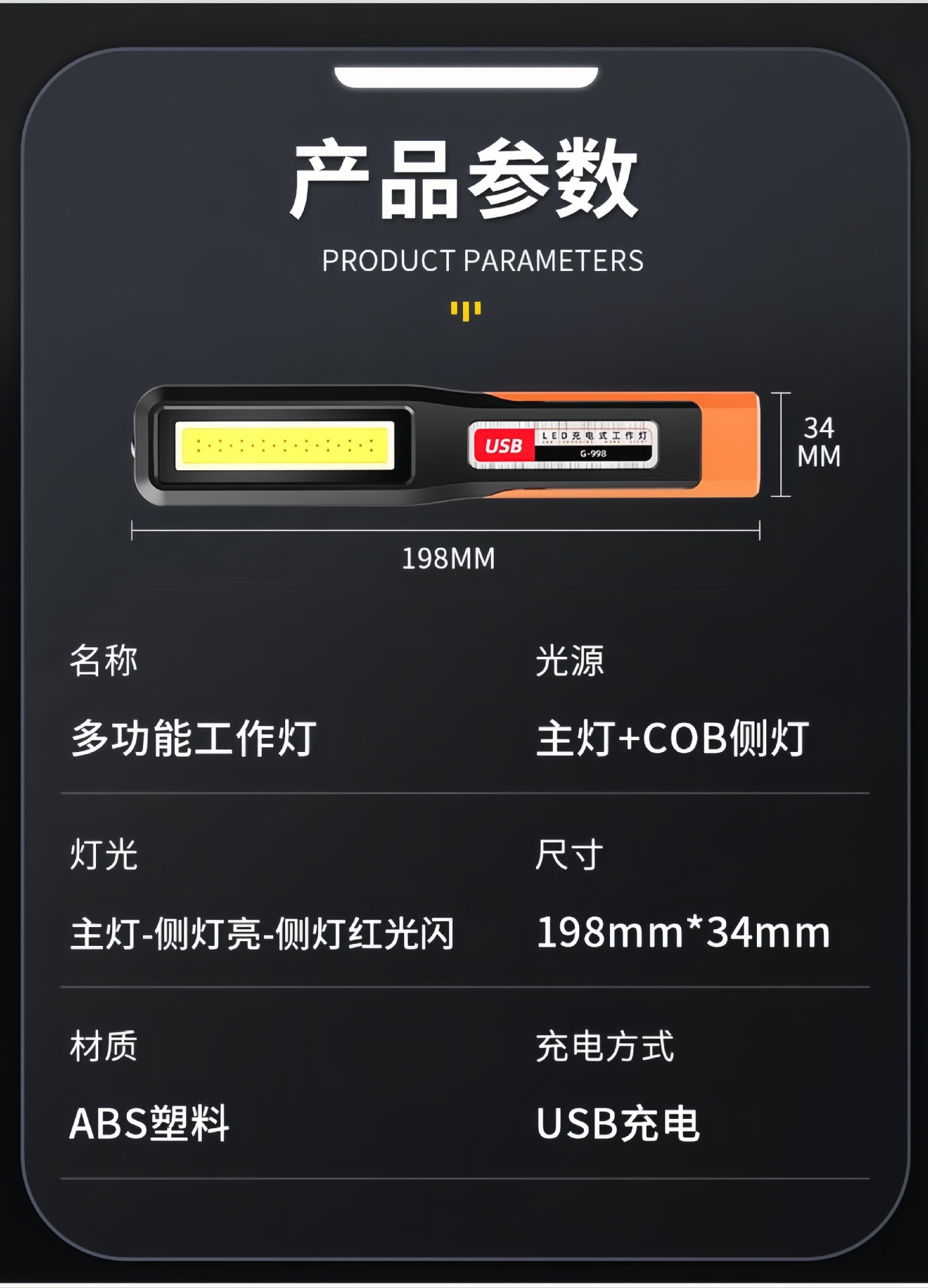 • 【G-998】TYPE-C 충전 다기능 유지보수 작업등【1200mAh】