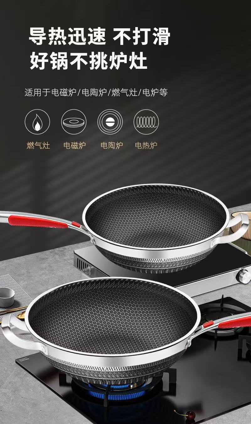 독일 316 스테인레스 스틸 코팅되지 않은 붙지 않는 양면 스크린 오일 프리 인덕션 쿠커 가스 냄비 가정용 냄비스토어 가기