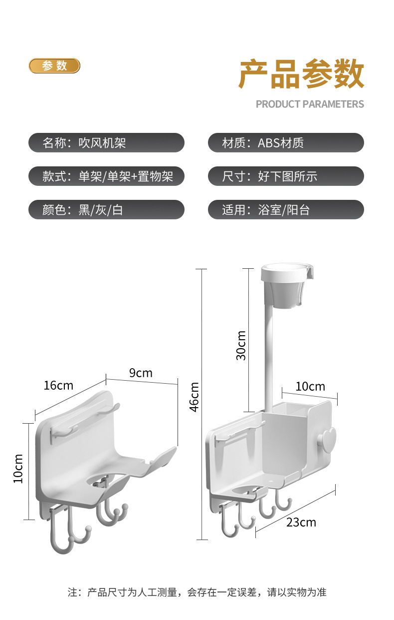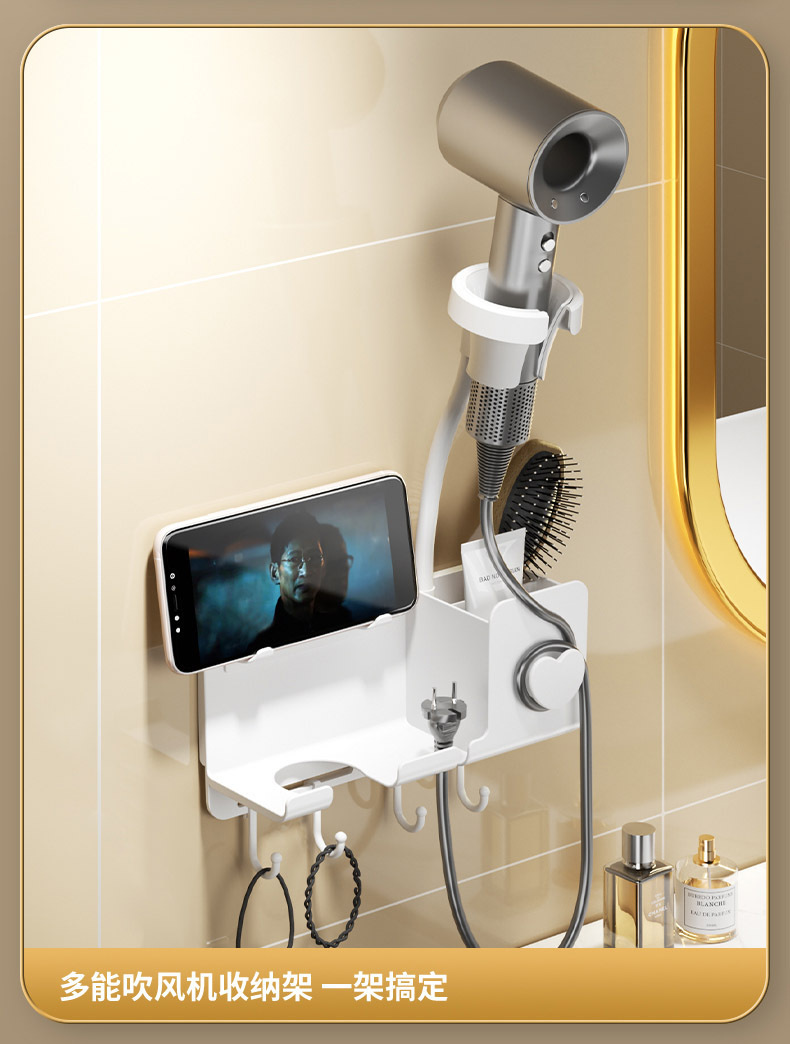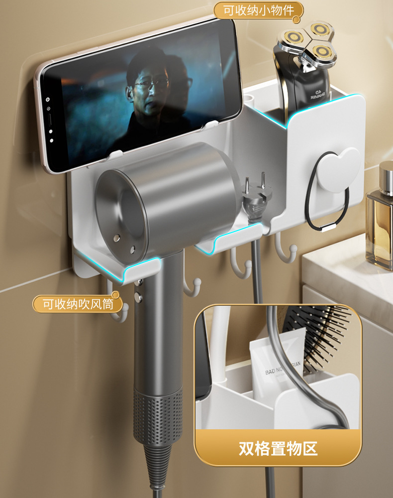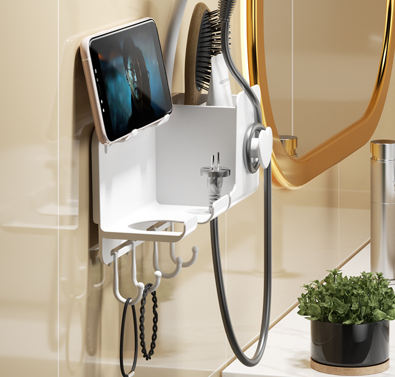 공장에서 욕실 헤어드라이어 보관함을 공급합니다. 구멍이 없는 욕실 다기능 면도기 헤어드라이어 보관함