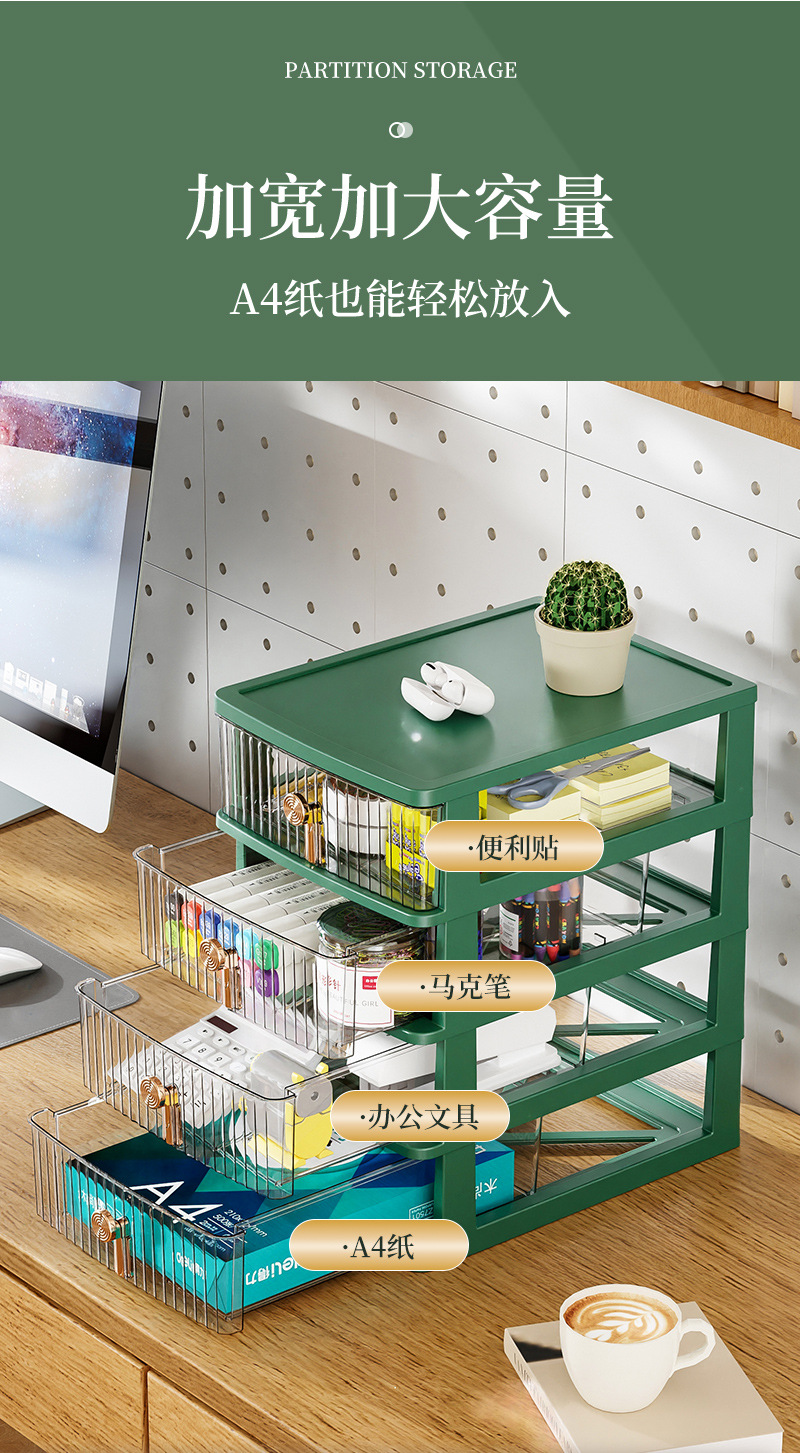 서랍형 데스크탑 수납함 사무실 책상 수납함 A4 종이 문구 화장품 워크스테이션 정리 수납함스토어 가기