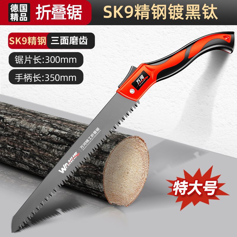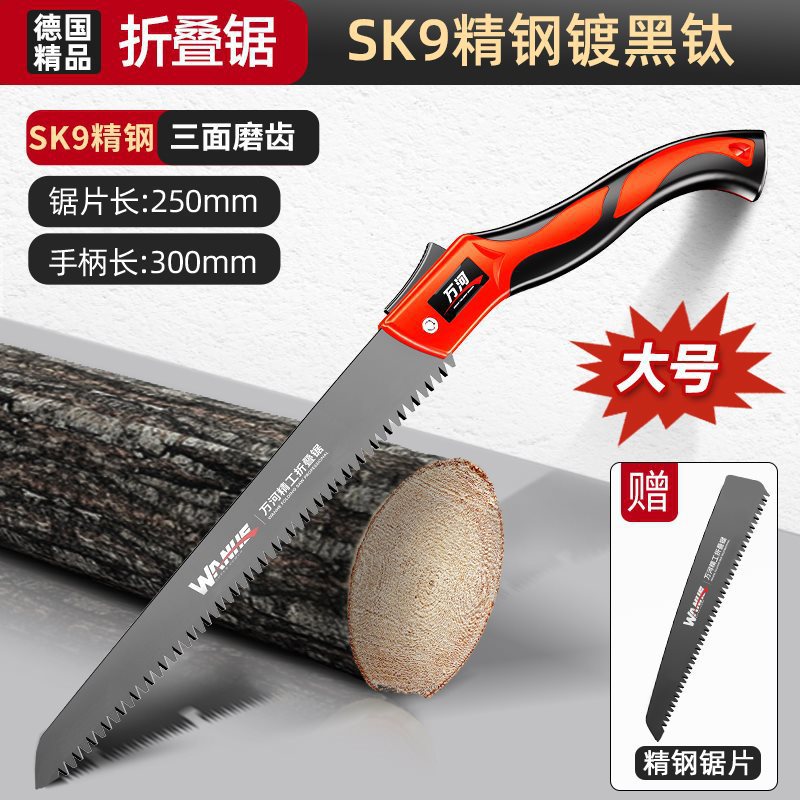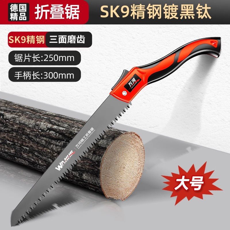 • SK9 스테인리스 스틸 흑색 티타늄 도금 [특대형] 접이식 톱 + 스테인리스 스틸 톱날