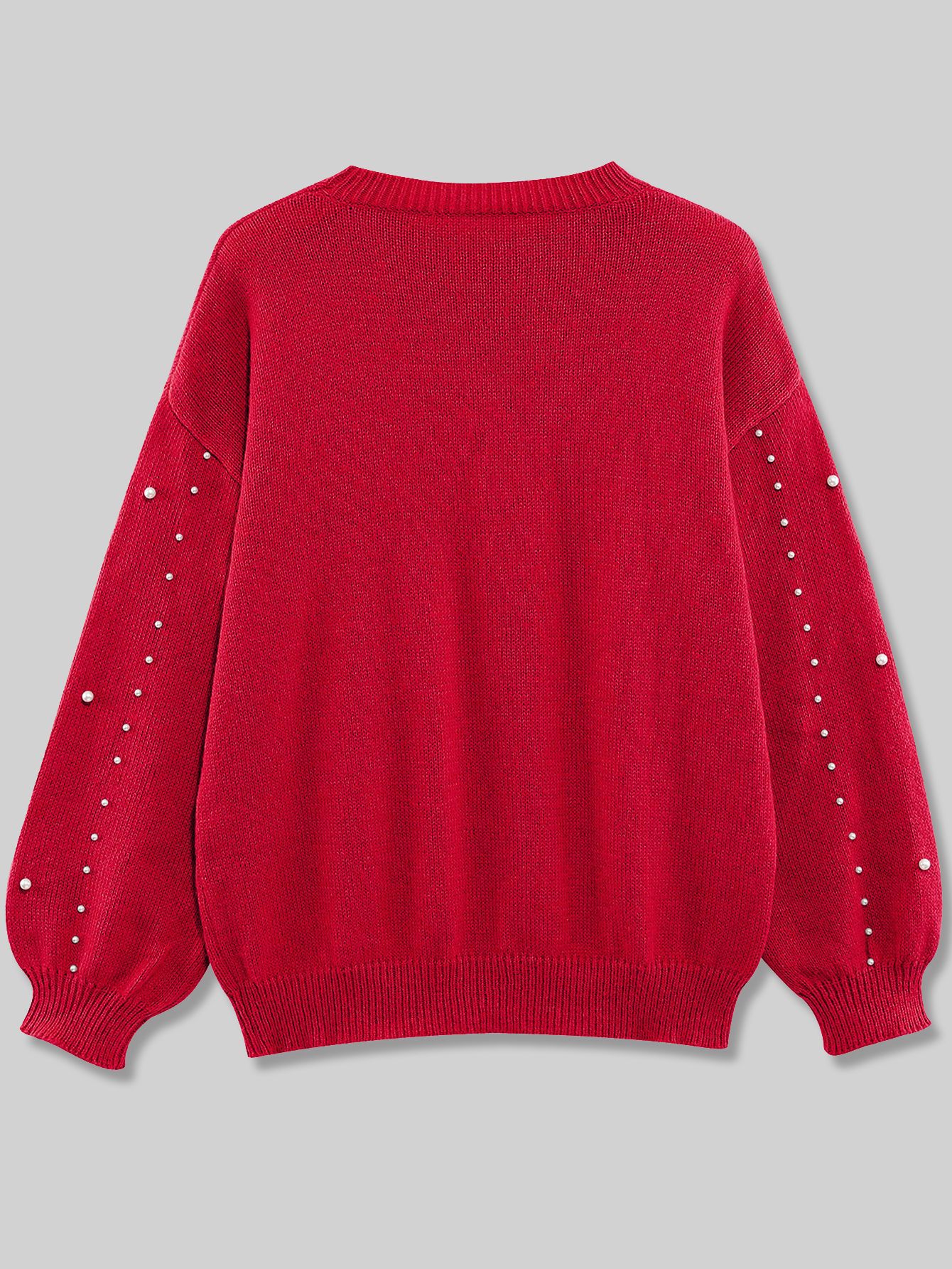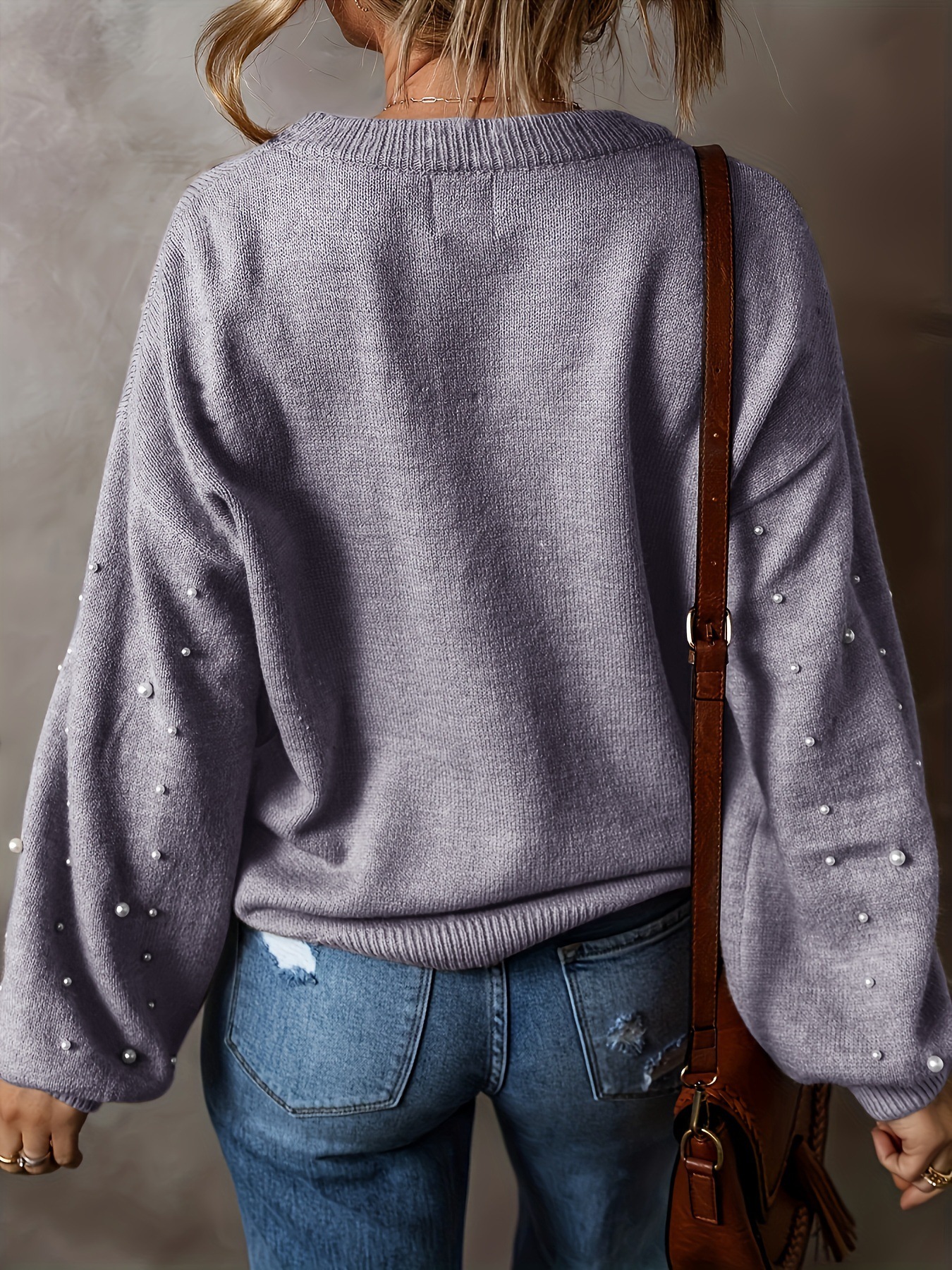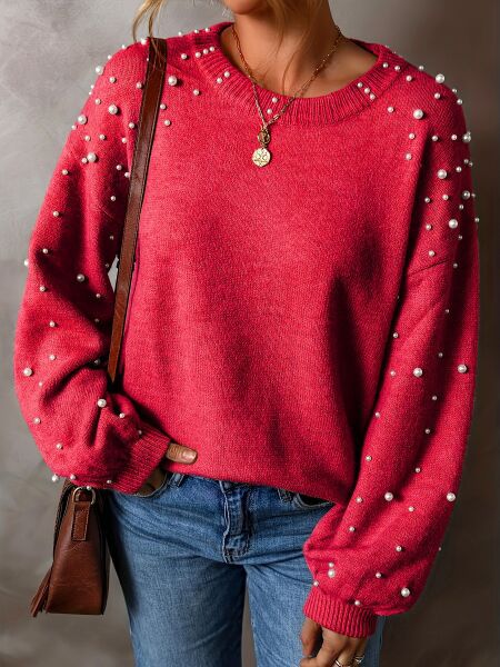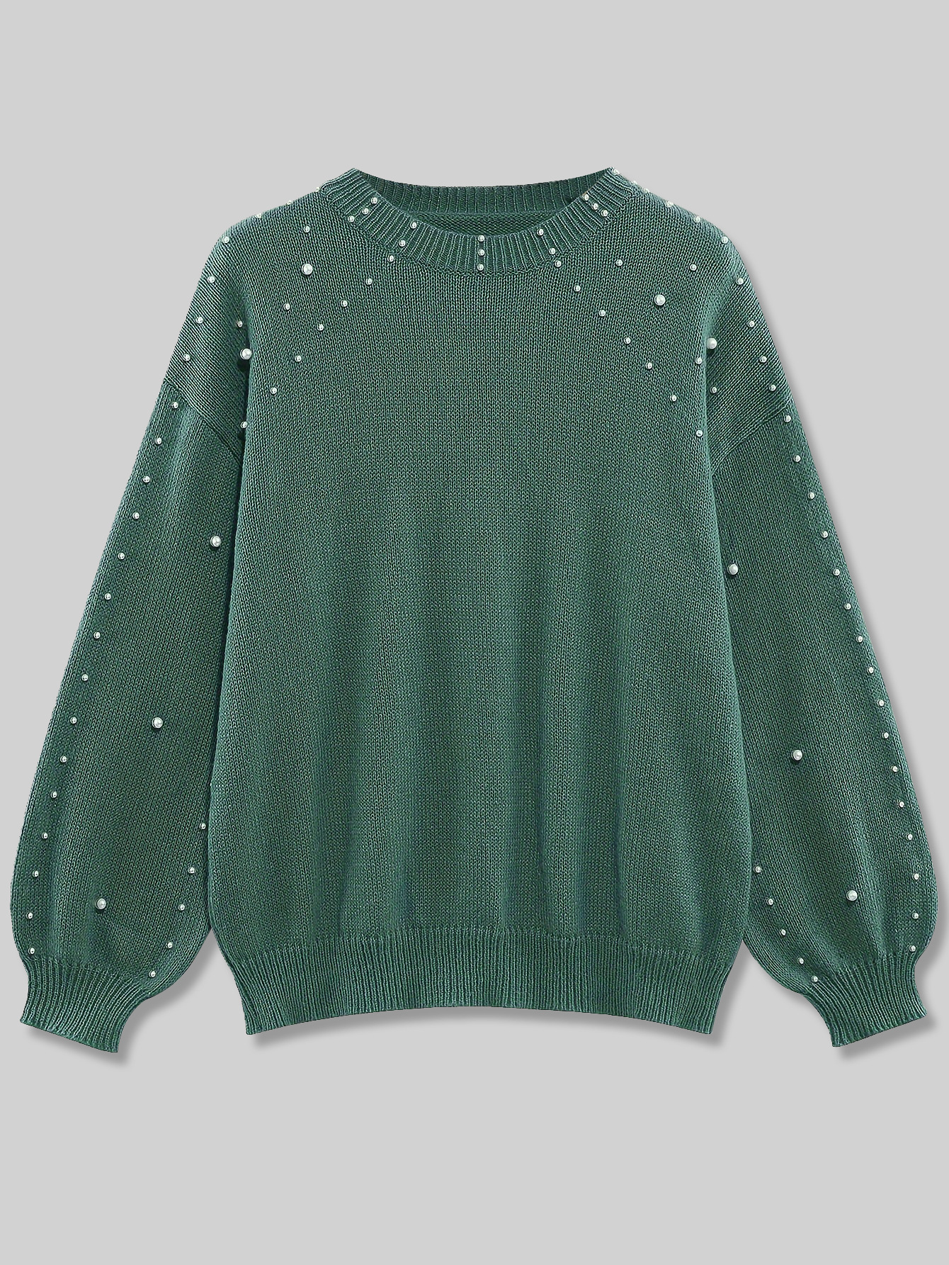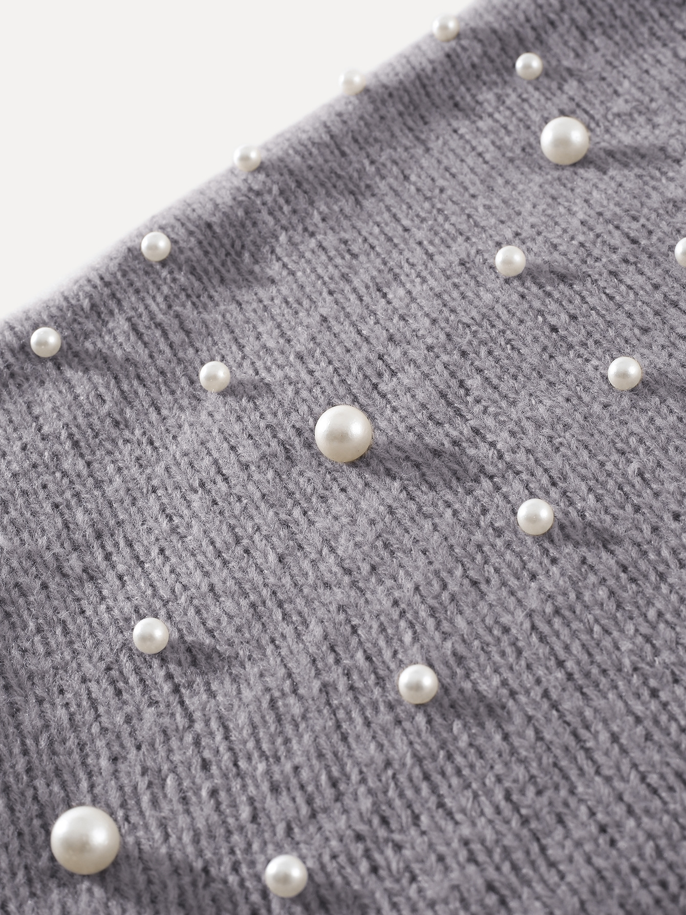 2025 유럽과 미국의 국경을 넘나드는 새로운 대형 패션 우아한 진주 디자인 니트 스웨터 풀오버