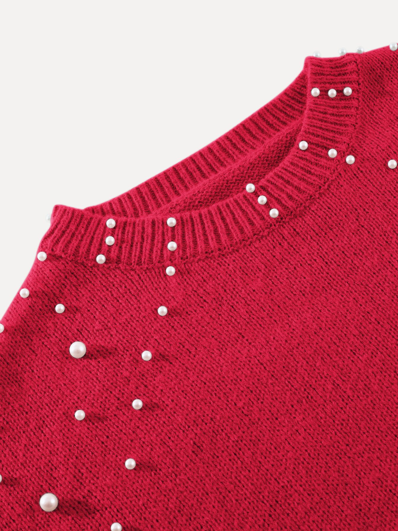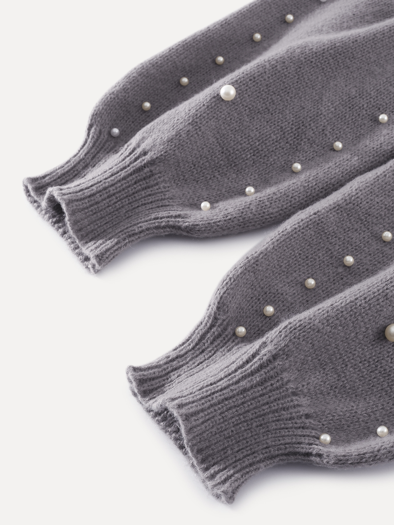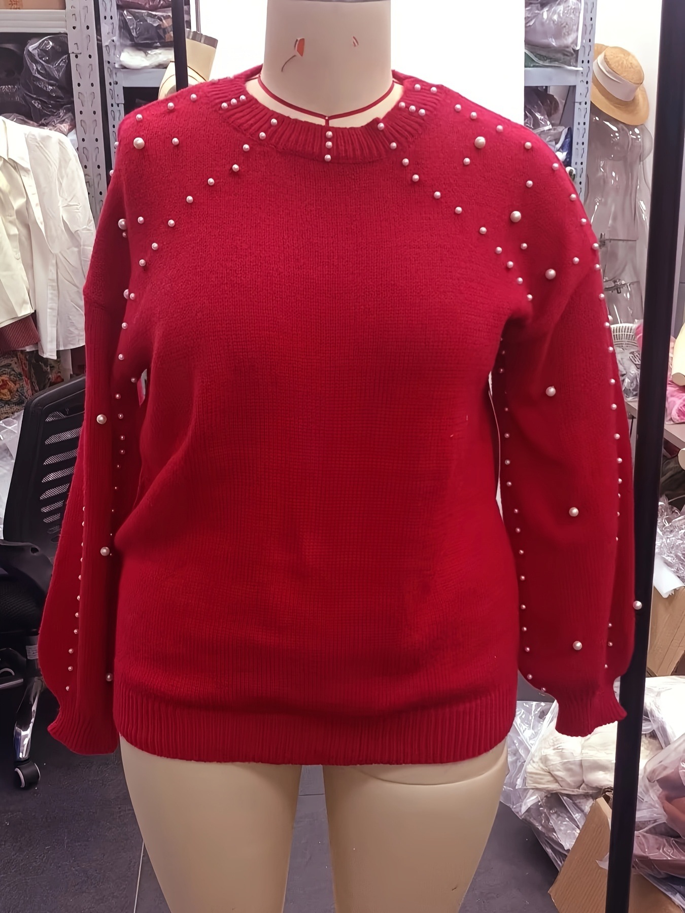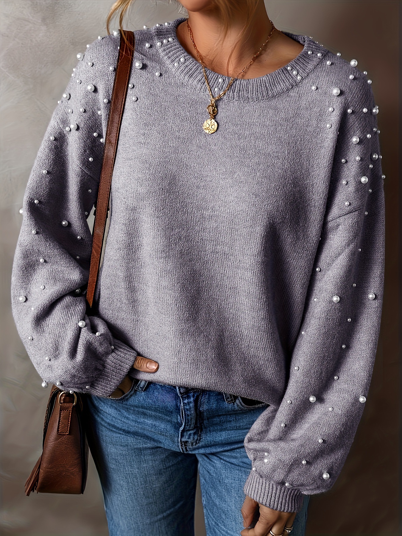 2025 유럽과 미국의 국경을 넘나드는 새로운 대형 패션 우아한 진주 디자인 니트 스웨터 풀오버