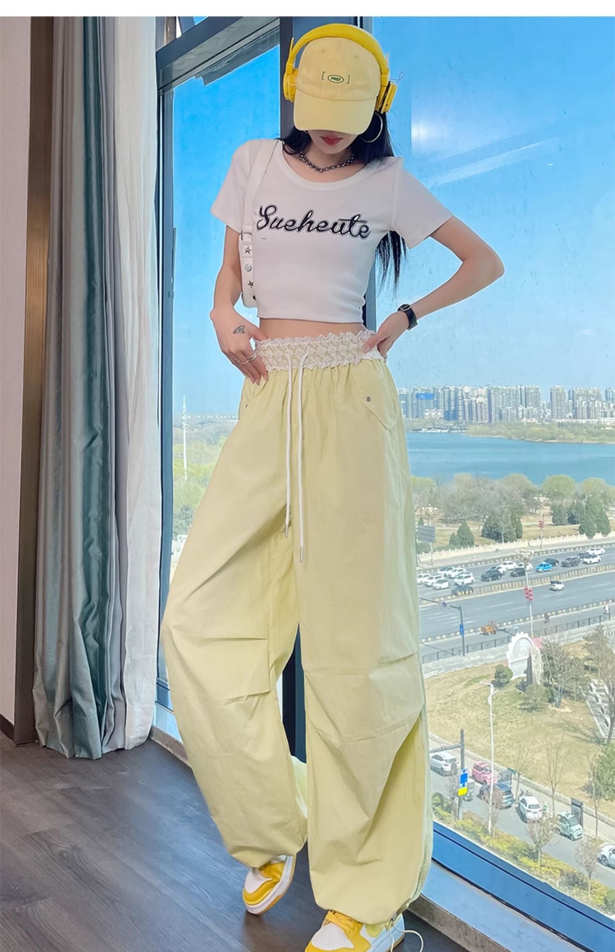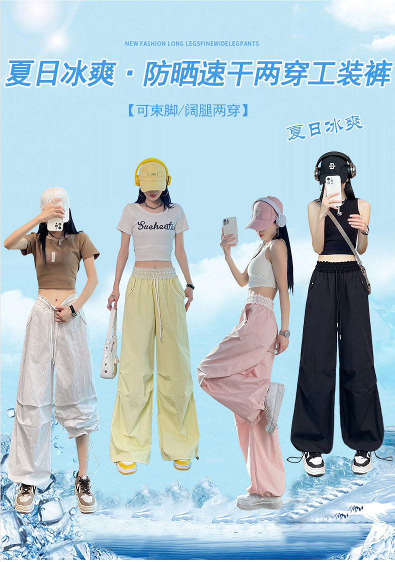 여름 여성을 위한 레이스 속건 작업복 새로운 미국식 하이웨이스트 파라트리퍼 와이드 레그 스포츠 바지 자외선 차단 바지 하이킹 바지스토어 가기
