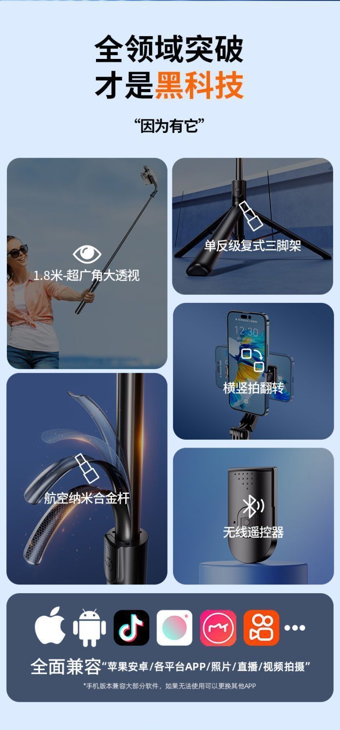 2025 새로운 셀카 스틱 휴대 전화 범용 촬영 스탠드 360도 회전 여행 휴대용 손떨림 방지 범용스토어 가기