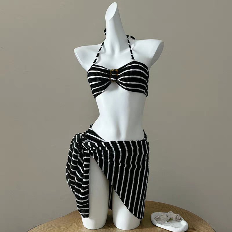비키니 수영복 여성 3 피스 복고풍 줄무늬 섹시한 인터넷 연예인 순수한 욕망 스타일 해변 휴가 온천 수영복
