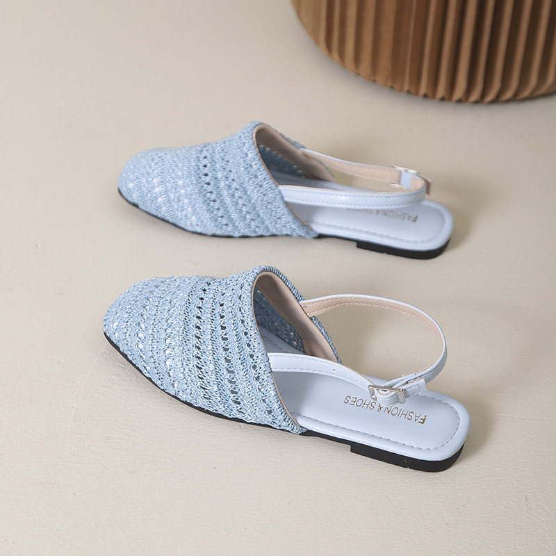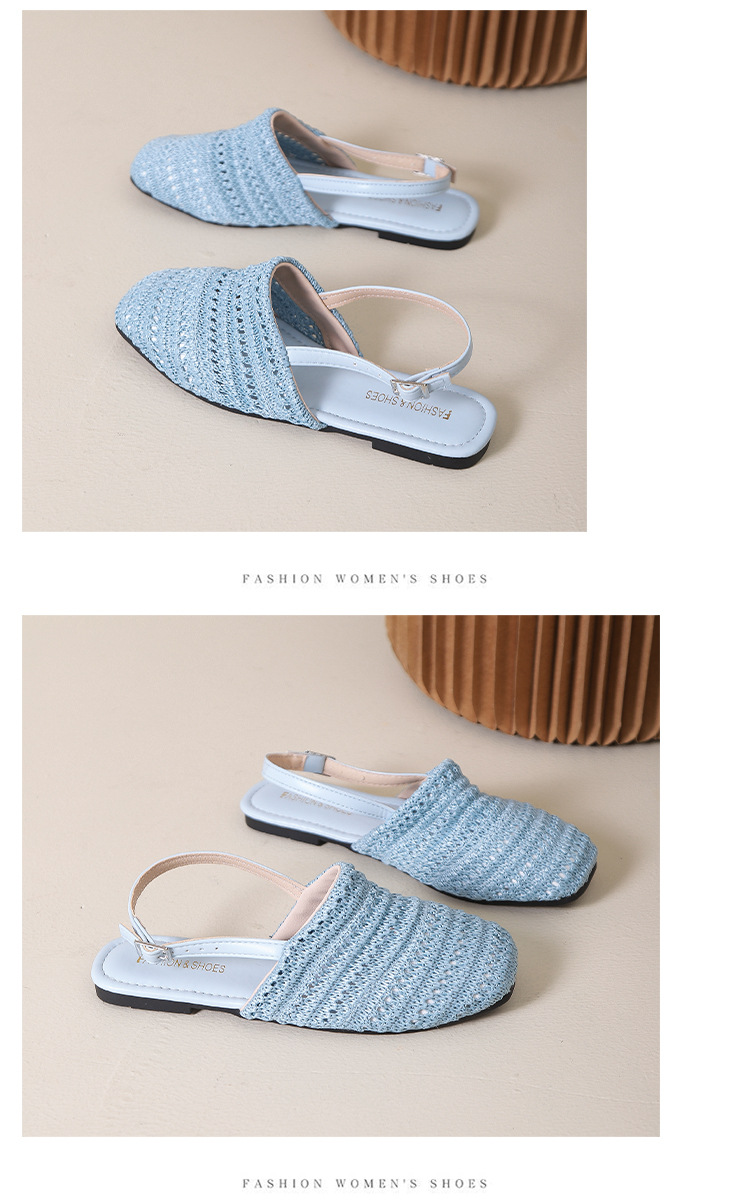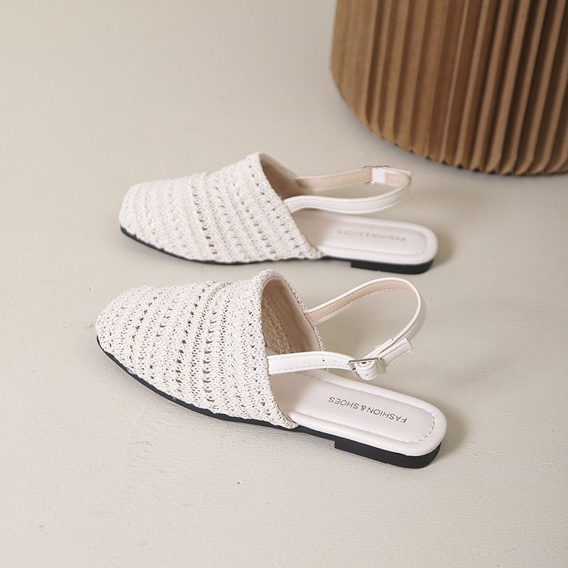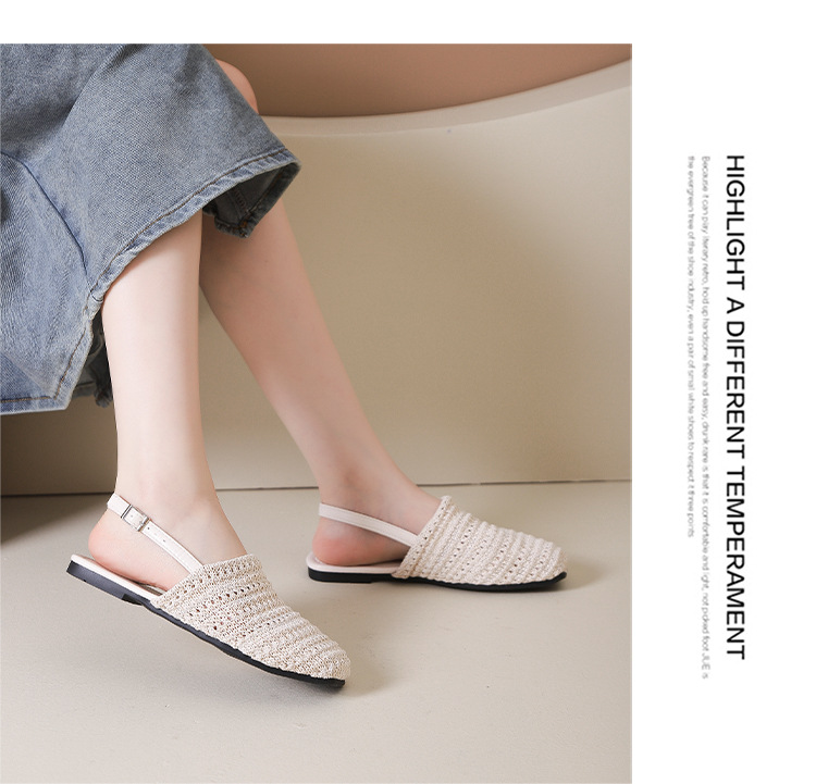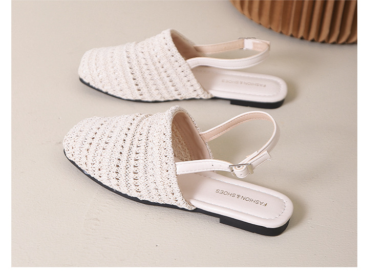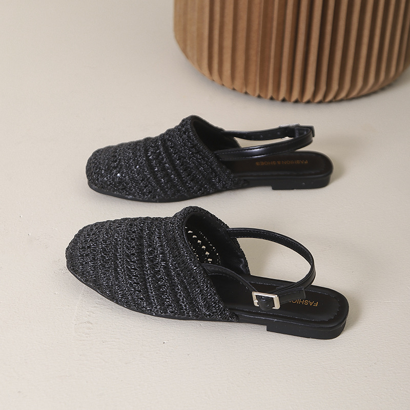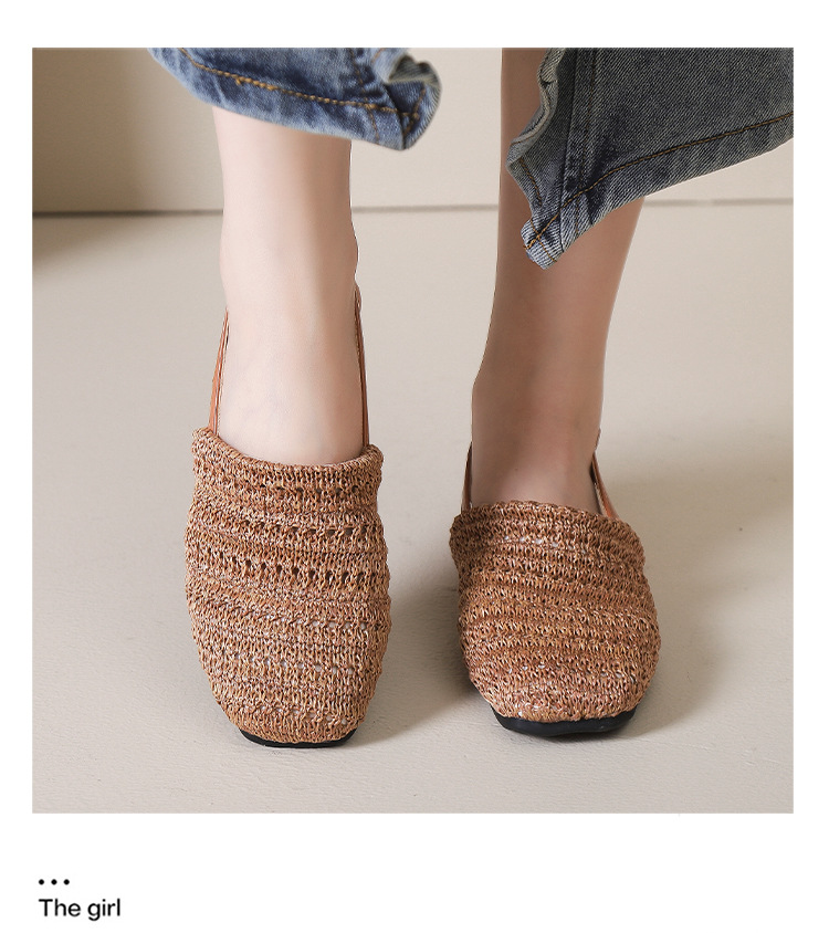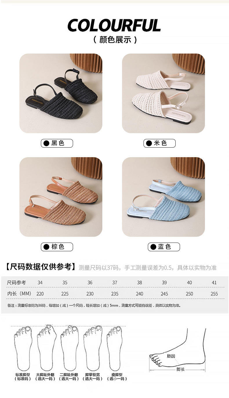 두꺼운 굽의 얕은 입구 밀짚 샌들 여성 신발 2025 봄 여름 신상 플랫 밑창 샌들스토어 가기