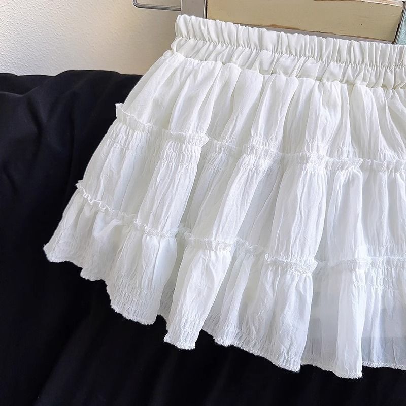 여자 스커트 여름 새로운 스타일 어린이 주름 케이크 스커트 안전 바지와 공주 투투 스커트