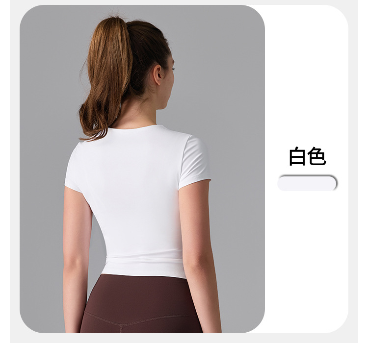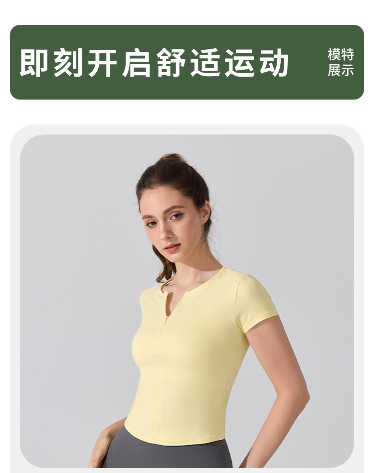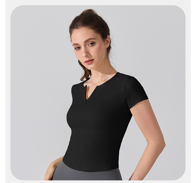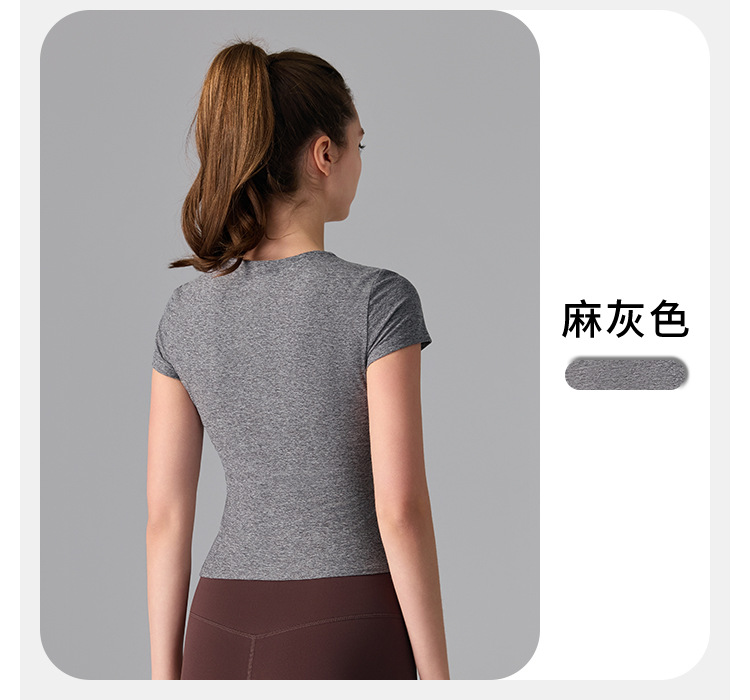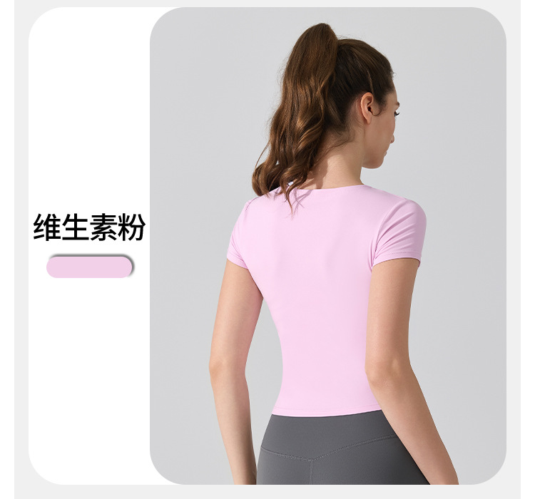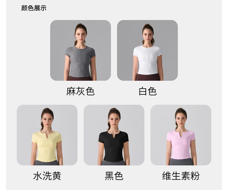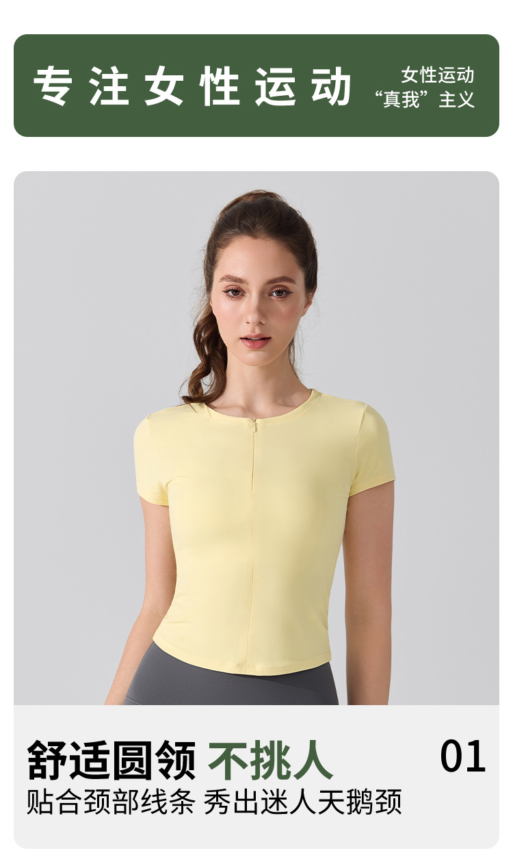 새로운 국경 간 지퍼 라운드 넥 꽉 요가 탑 반팔 짧은 스포츠 티셔츠 여성 슬림 피트니스 요가웨어스토어 가기
