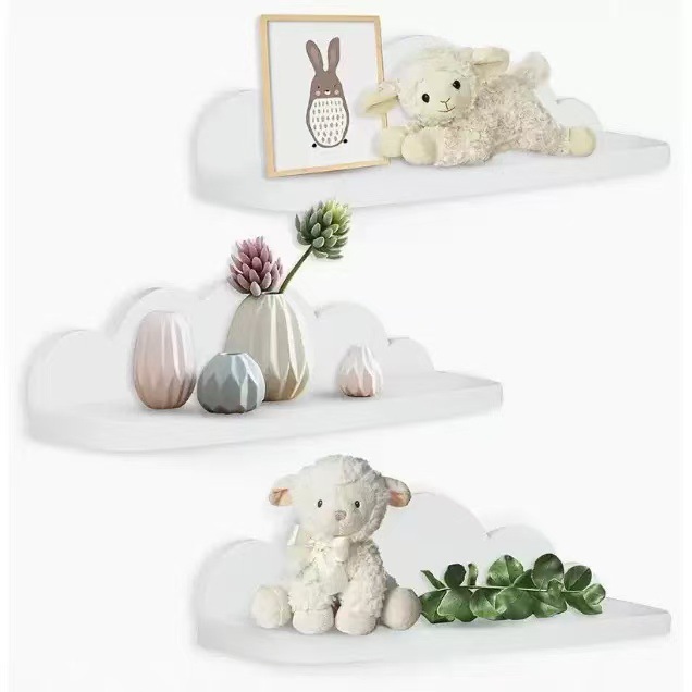 크로스보더 창의적인 나무 공예 구름 모양 수납 선반 어린이 벽걸이 장식 수납 선반 벽 장식