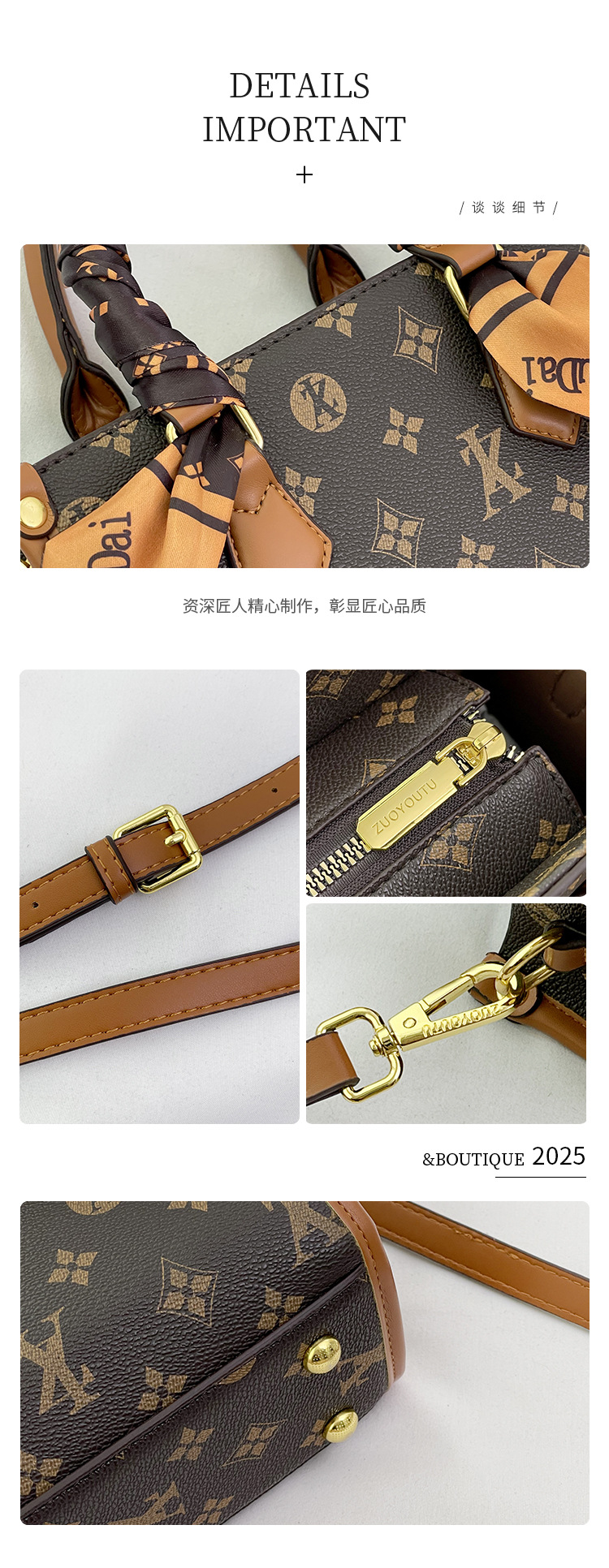 여성을위한 하이 엔드 미니 핸드 헬드 토트 백 2025 새로운 복고풍 인쇄 통근 다용도 숄더 백 크로스 바디 백
