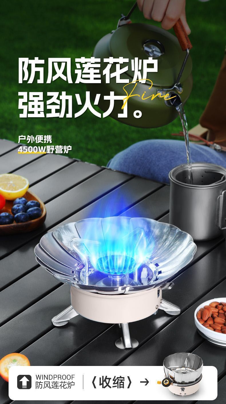 카세트 스토브, 야외 스토브, 접이식 카드 자석 가스 스토브, 야외 캠핑 스토브, 연꽃 스토브 헤드, 물 끓이기 및 차 끓이기스토어 가기