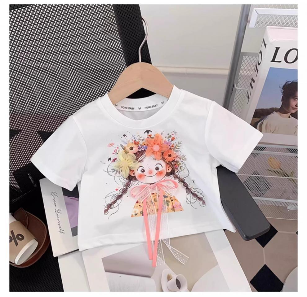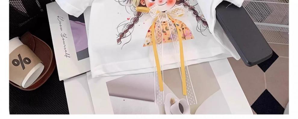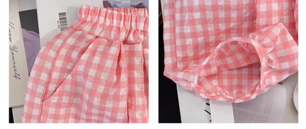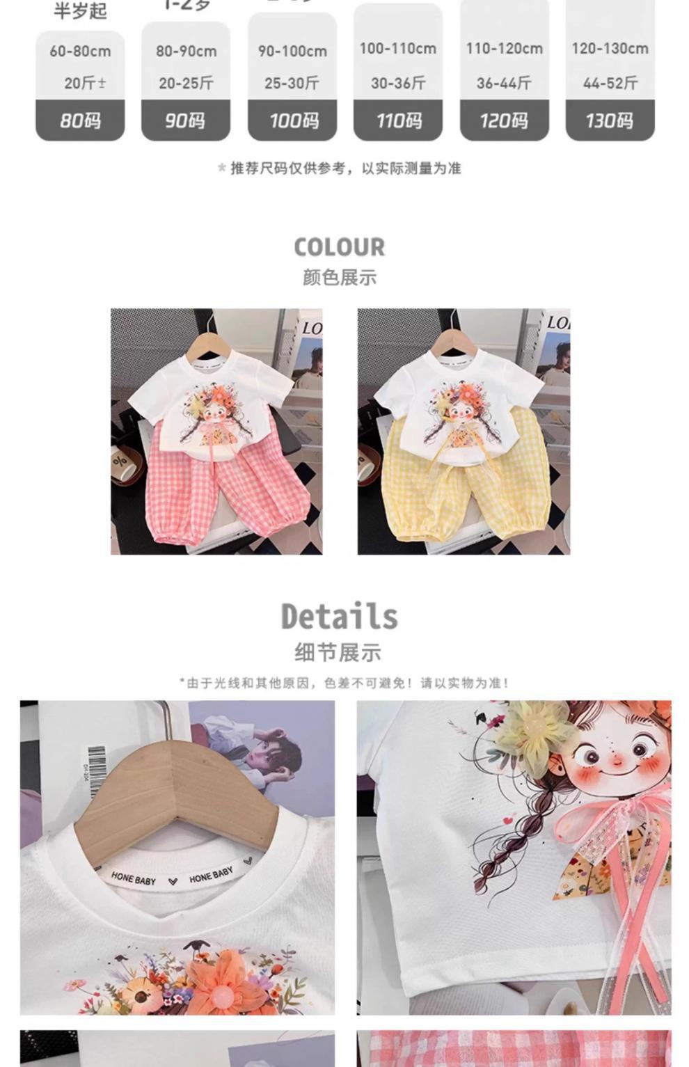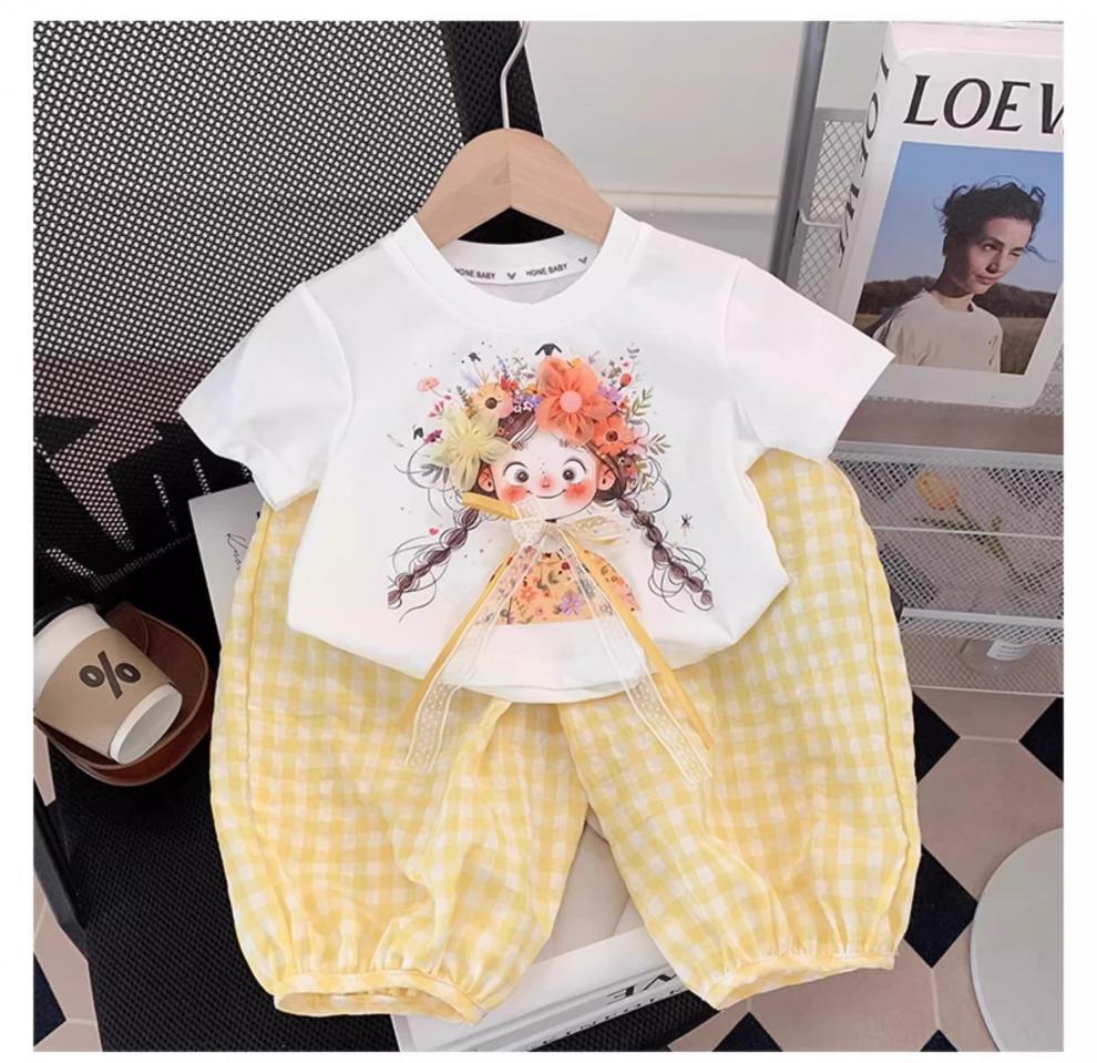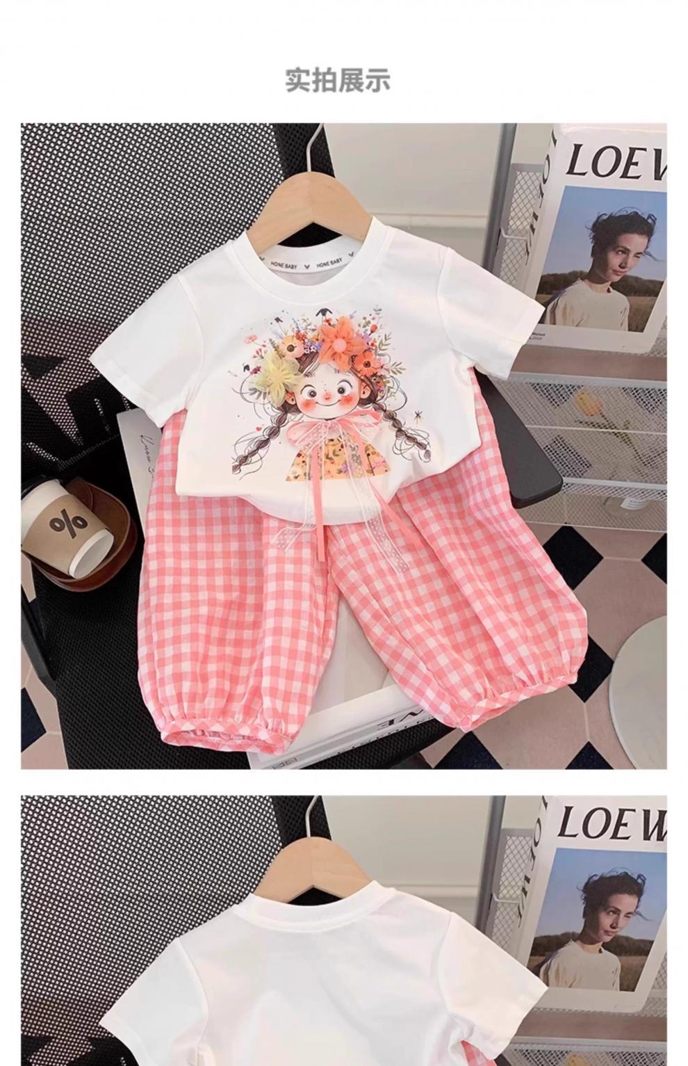 아동복, 여아 정장, 여아 여름옷, 아동용 반팔 티셔츠, 상의, 체크무늬 바지, 아동 운동복 투피스 세트