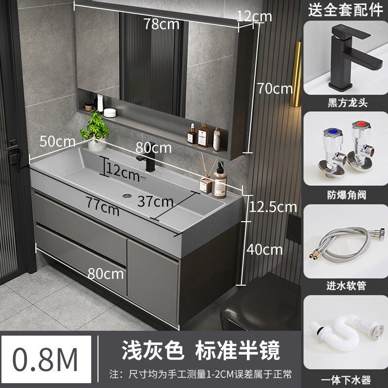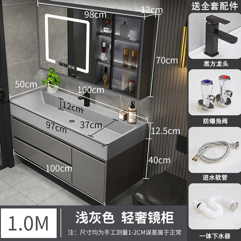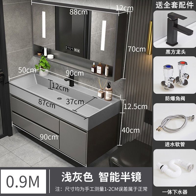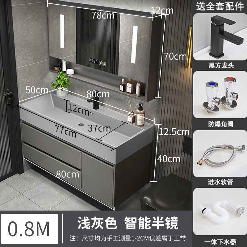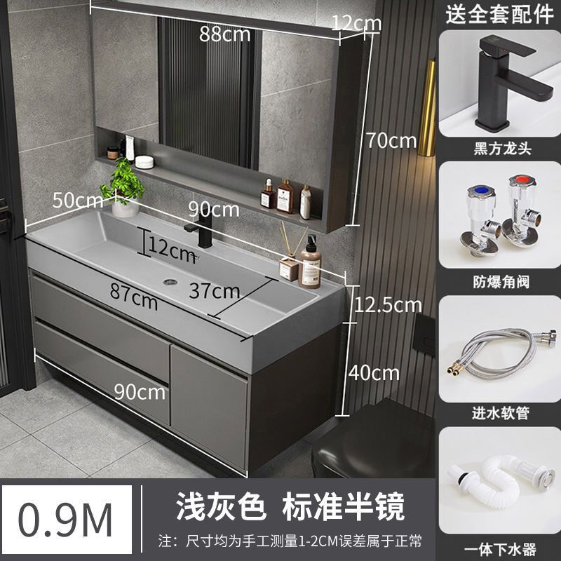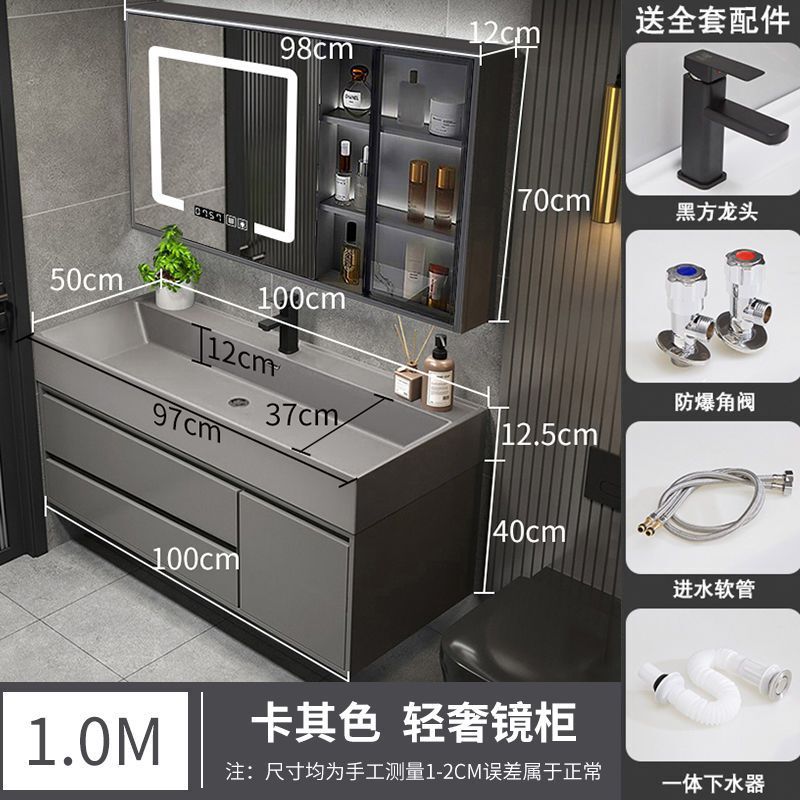 가벼운 고급 욕실 캐비닛 현대적인 미니멀리스트 욕실 바위 통합 세면대 캐비닛 조합 세면대 거울 캐비닛 세트