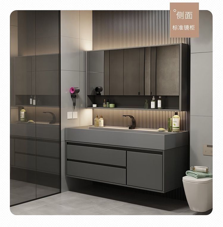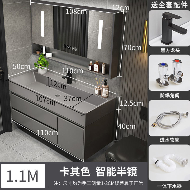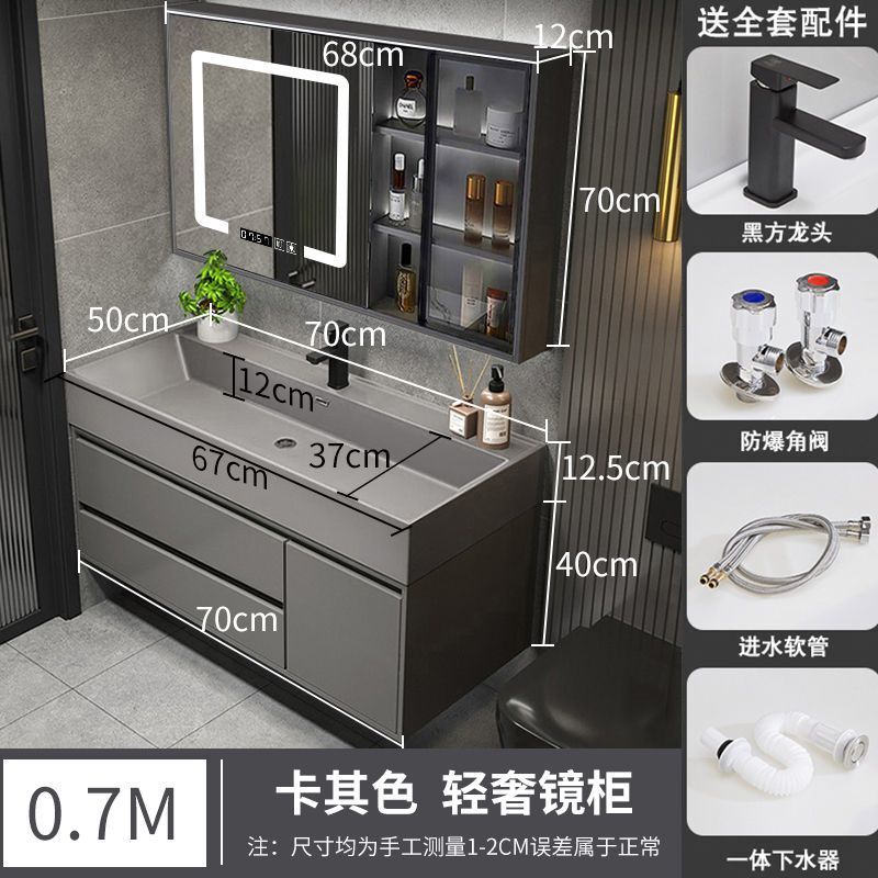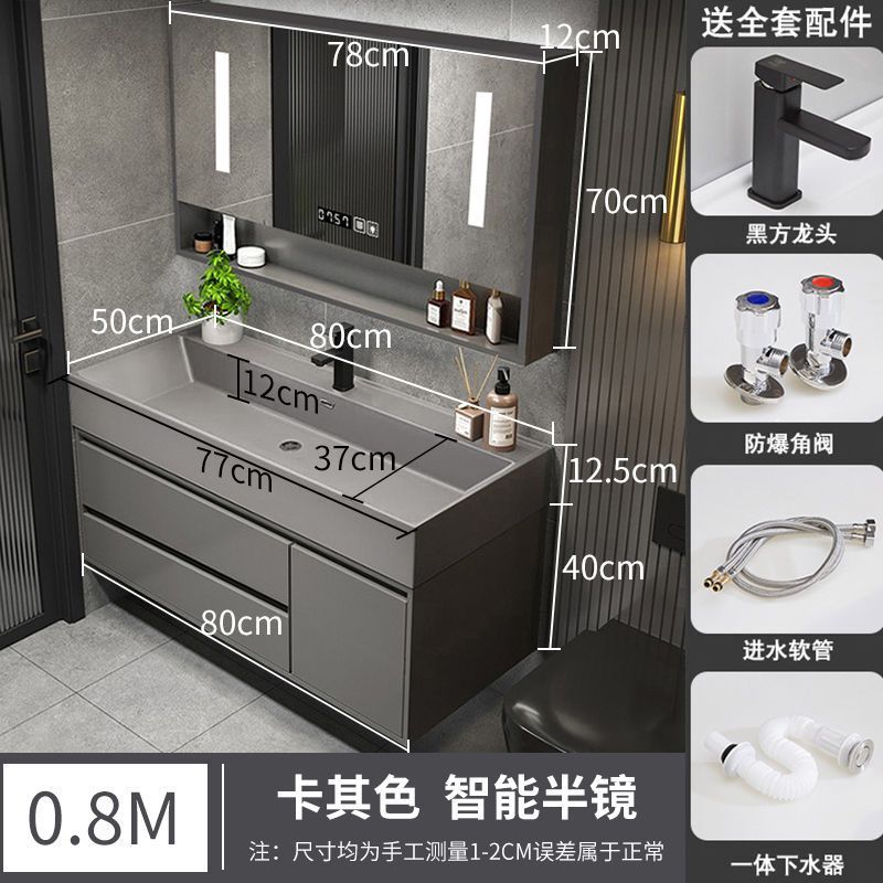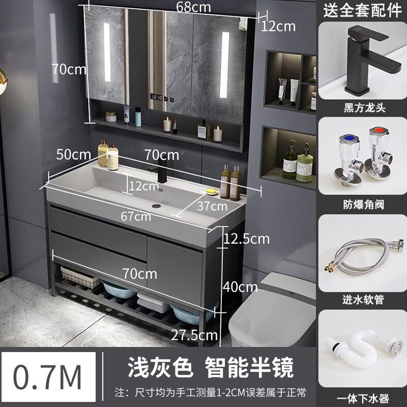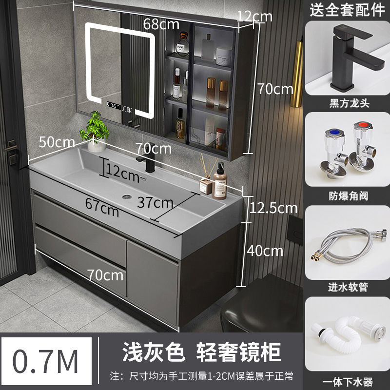 가벼운 고급 욕실 캐비닛 현대적인 미니멀리스트 욕실 바위 통합 세면대 캐비닛 조합 세면대 거울 캐비닛 세트
