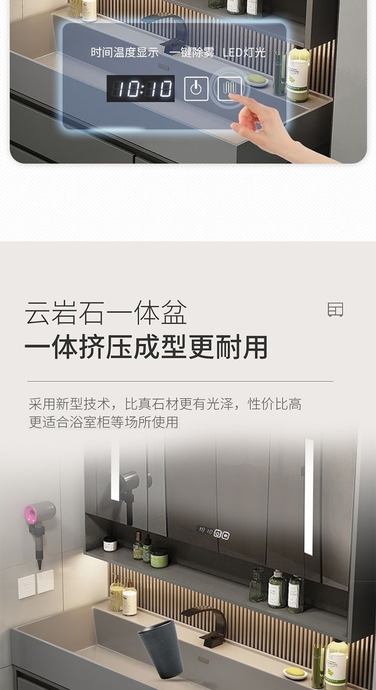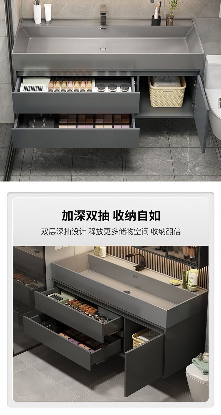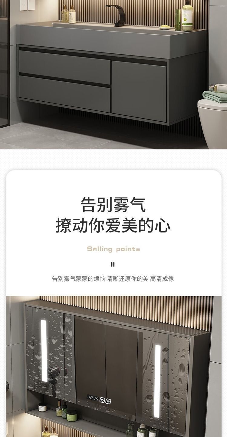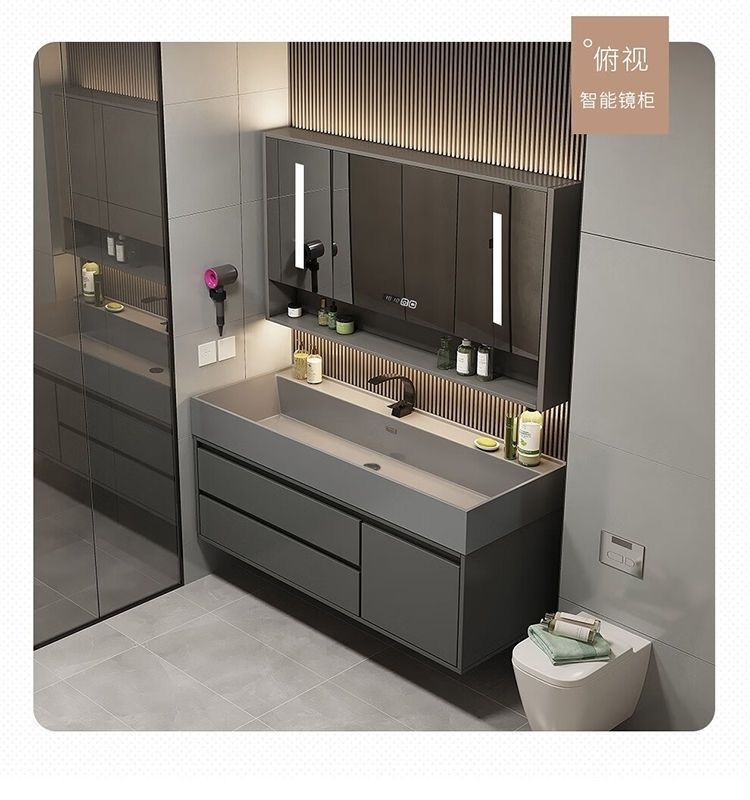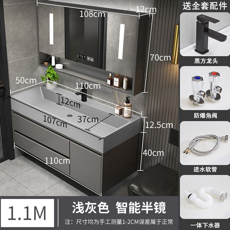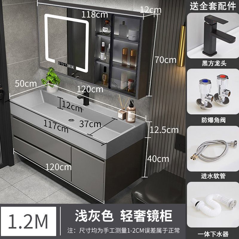 가벼운 고급 욕실 캐비닛 현대적인 미니멀리스트 욕실 바위 통합 세면대 캐비닛 조합 세면대 거울 캐비닛 세트스토어 가기