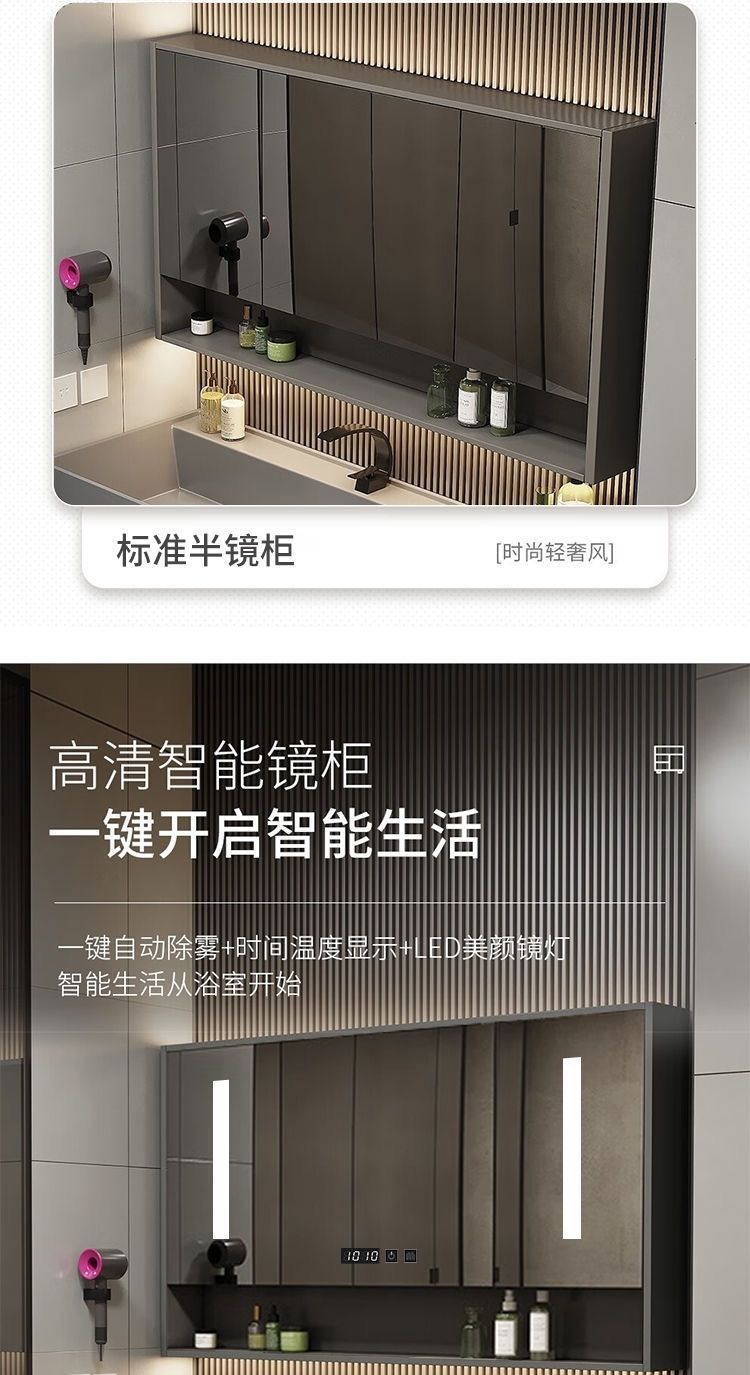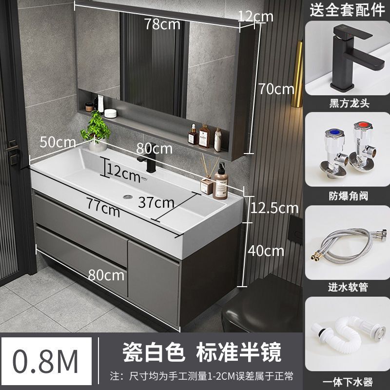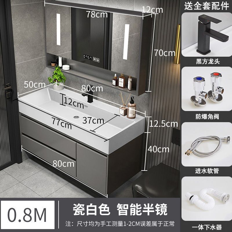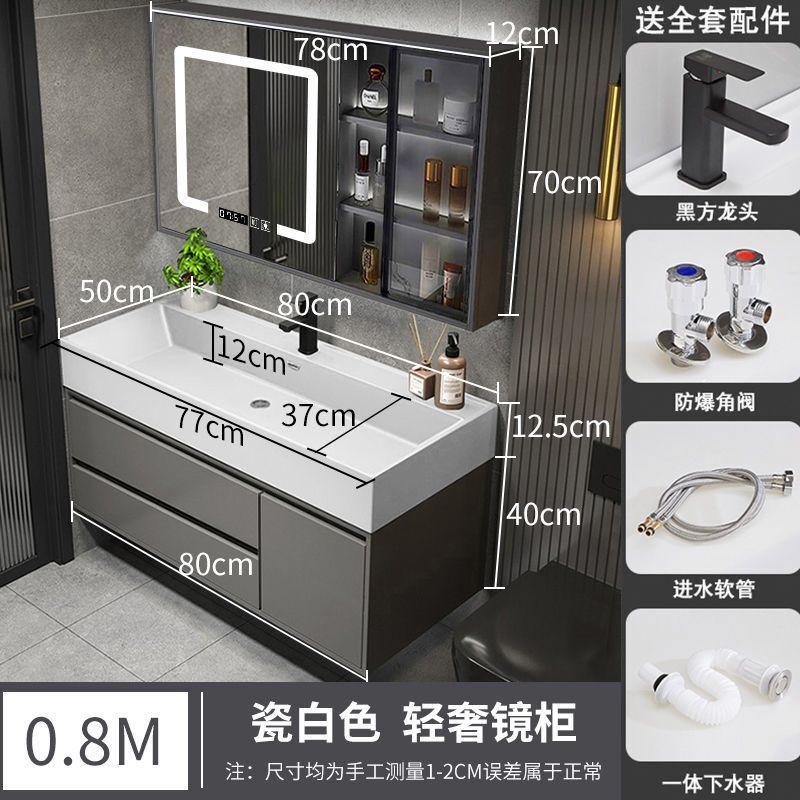 • 초대형 도자기 흰색 바다 분지 (벽 캐비닛) - 80cm 라이트 럭셔리 거울 캐비닛 전체 세트 + 액세서리