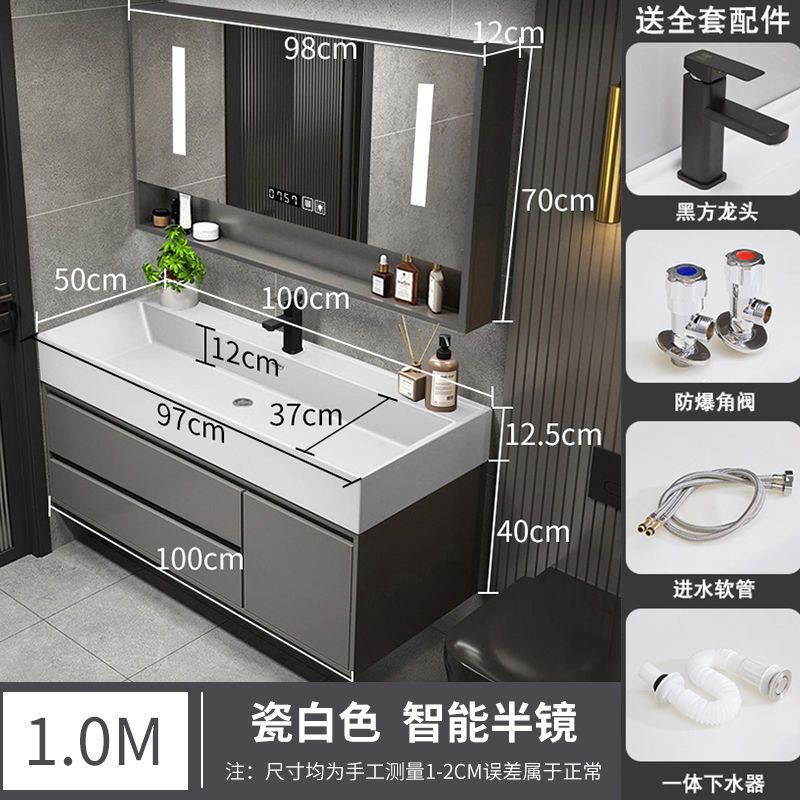 • 초대형 도자기 흰색 바다 분지 (벽 캐비닛) - 100cm 라이트 럭셔리 거울 캐비닛 전체 세트 + 액세서리