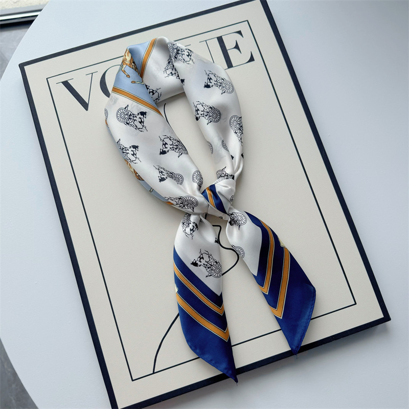 프렌치 스카프, 새틴 레터 프린트 스카프, 70 실크 스카프, 작은 사각형 스카프, 고급 봄, 가을, 다용도, 다양한 스타일 도매