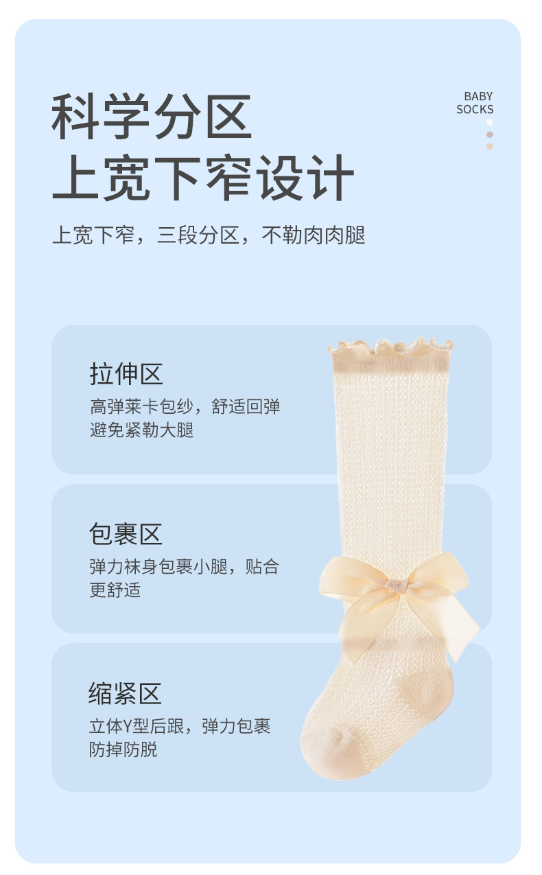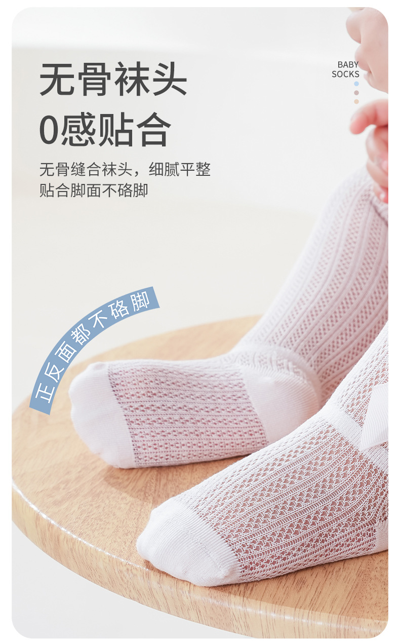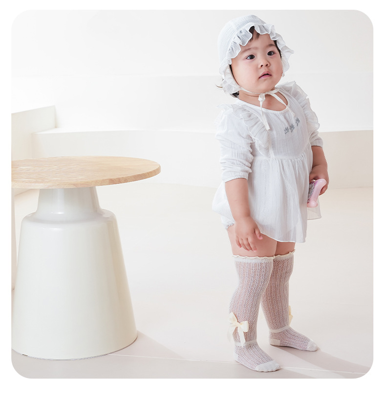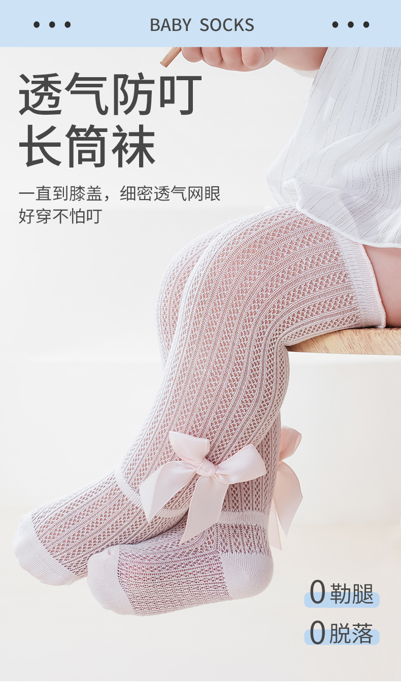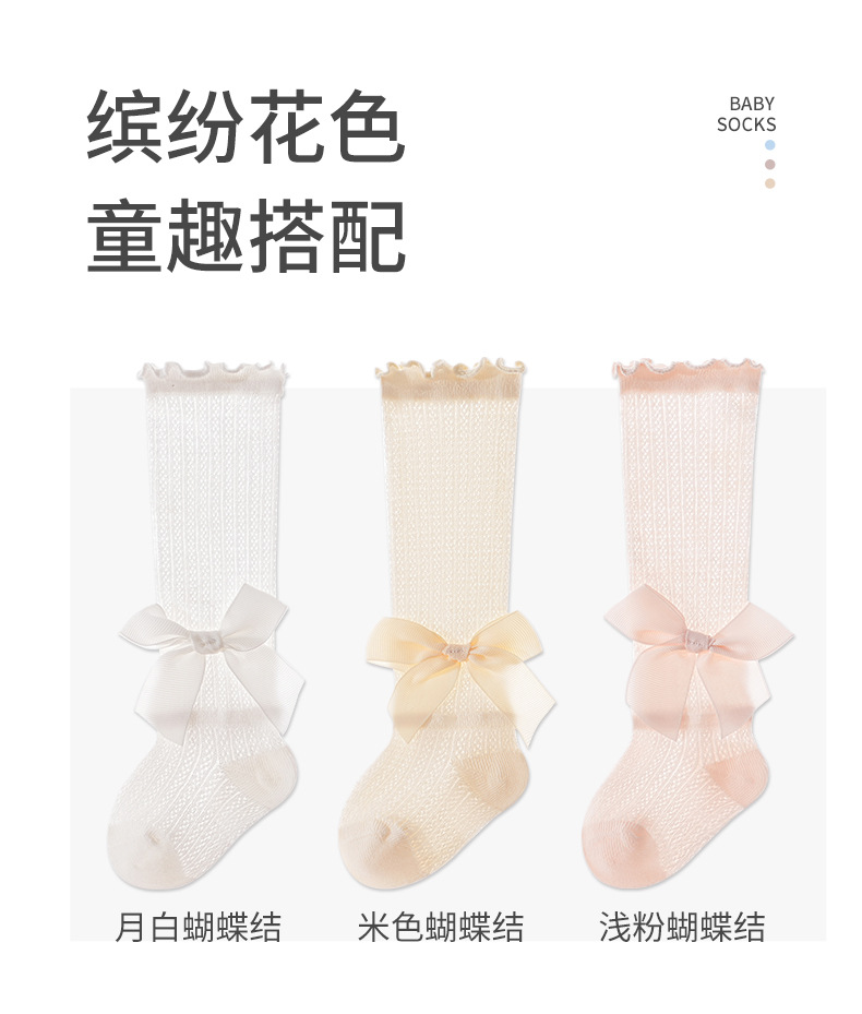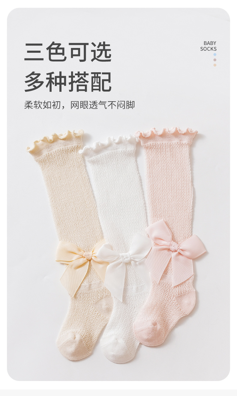 여름 얇은 나비넥타이 아기 긴 양말, 신생아 모기 방지 양말, 아기 무릎 위 양말, 다리를 조이지 않는 메쉬 양말스토어 가기