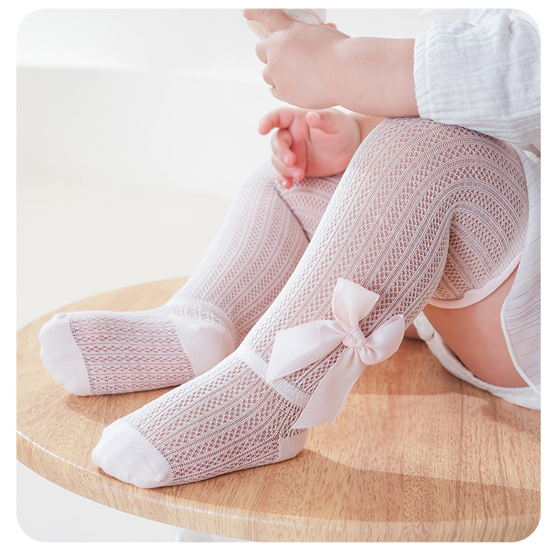 여름 얇은 나비넥타이 아기 긴 양말, 신생아 모기 방지 양말, 아기 무릎 위 양말, 다리를 조이지 않는 메쉬 양말