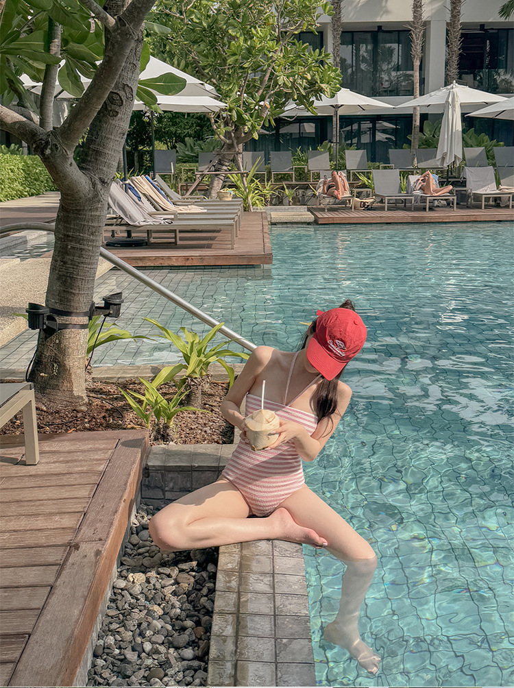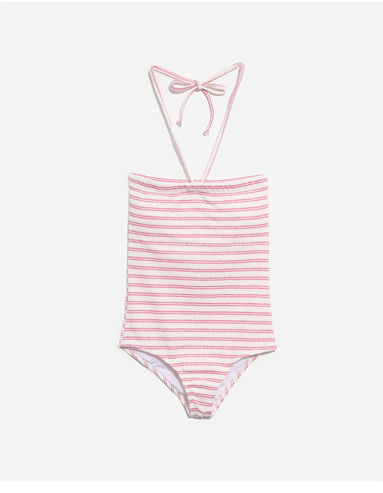 작은 신선한 줄무늬 크로스보더 2025 한국 스타일 온천 학생 작은 가슴 수영복 ins 홀터넥 섹시한 원피스 수영복 여성스토어 가기