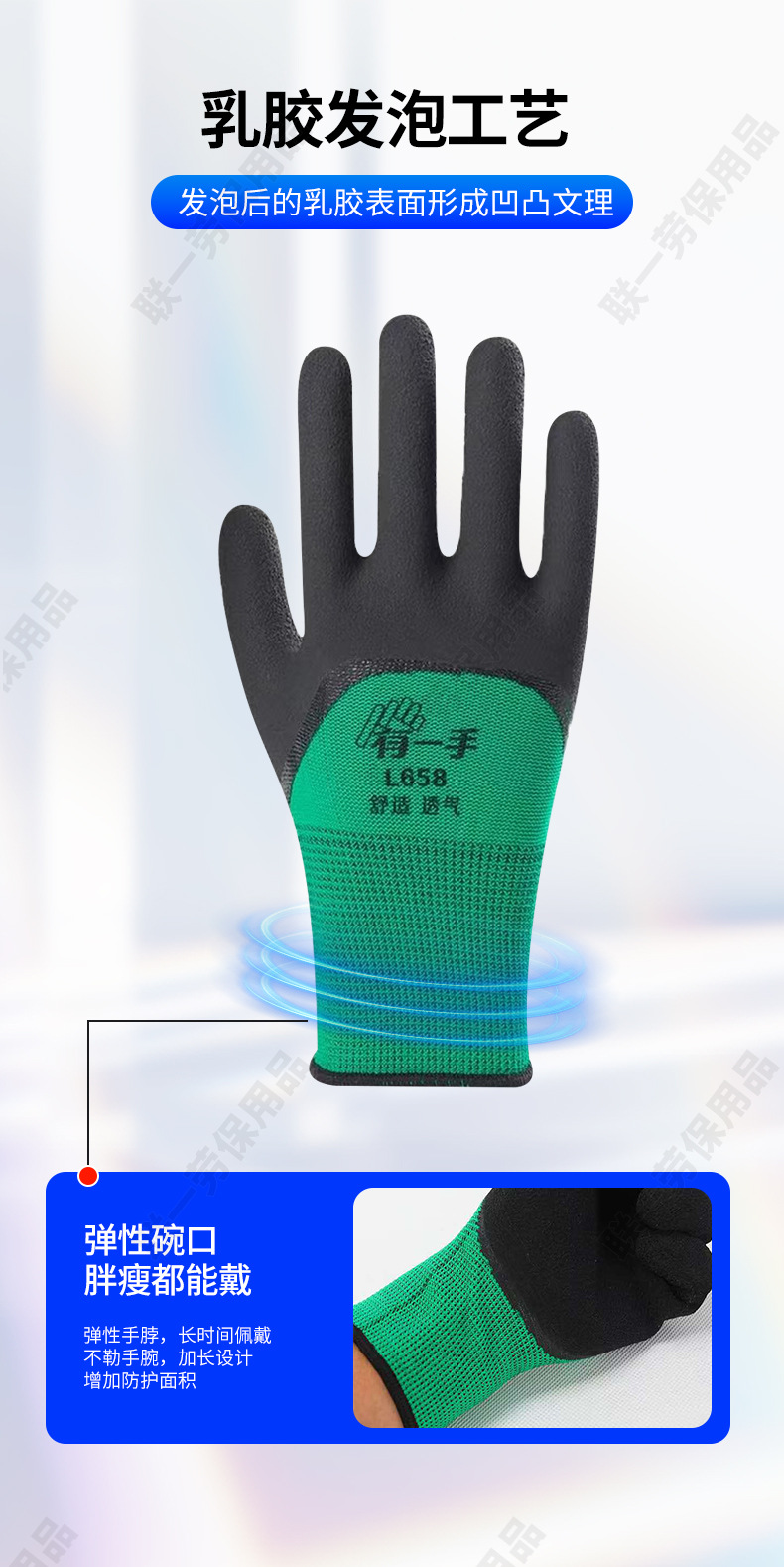 Dengsheng 658에는 내마모성, 미끄럼 방지, 건설 현장 작업 보호 장갑이 포함된 하프 행잉 라텍스 폼 장갑이 있습니다.스토어 가기