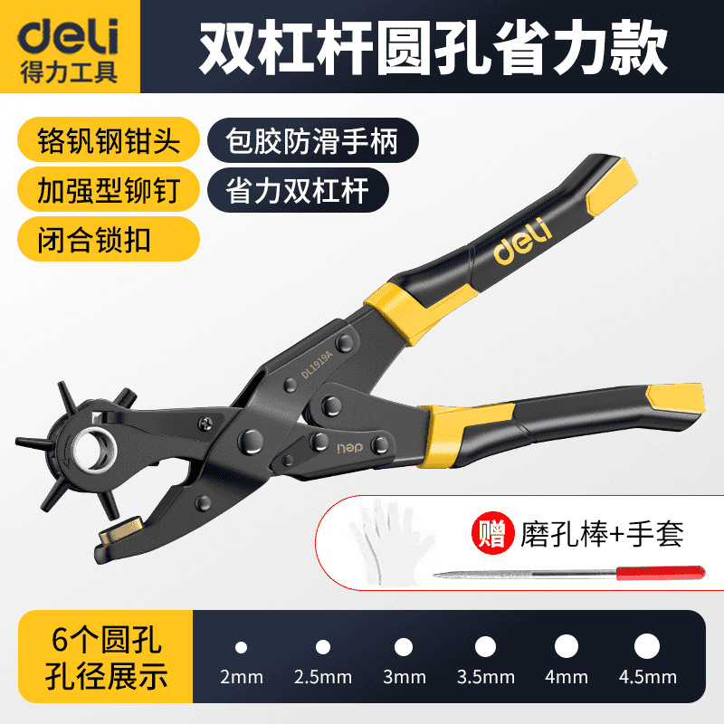 • [전문 모델] 더블 레버 노동 절약형 타원형 펀치 플라이어 [연삭 막대 + 장갑 포함]