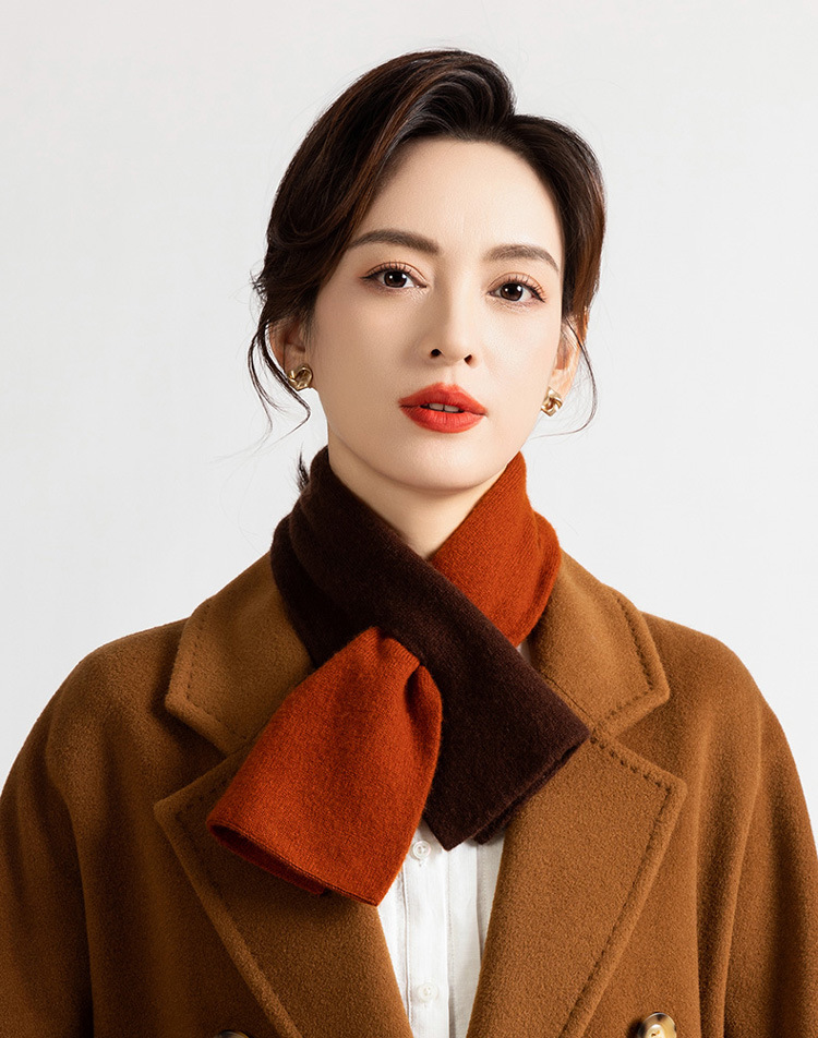 【일반형】100% 순모 스카프 여성용 단색 다용도 니트 짧은 스카프 보온 목도리 선물용 W1040