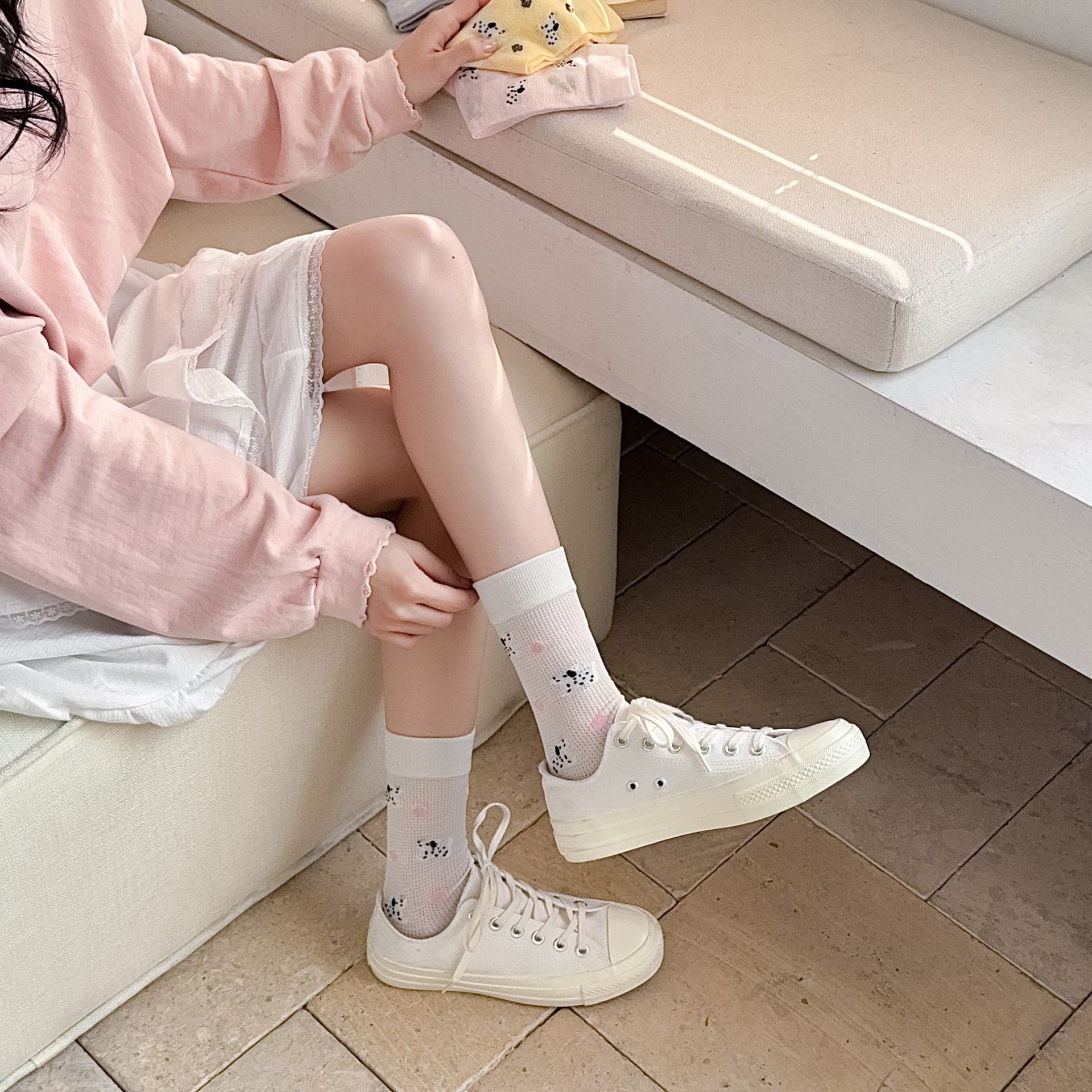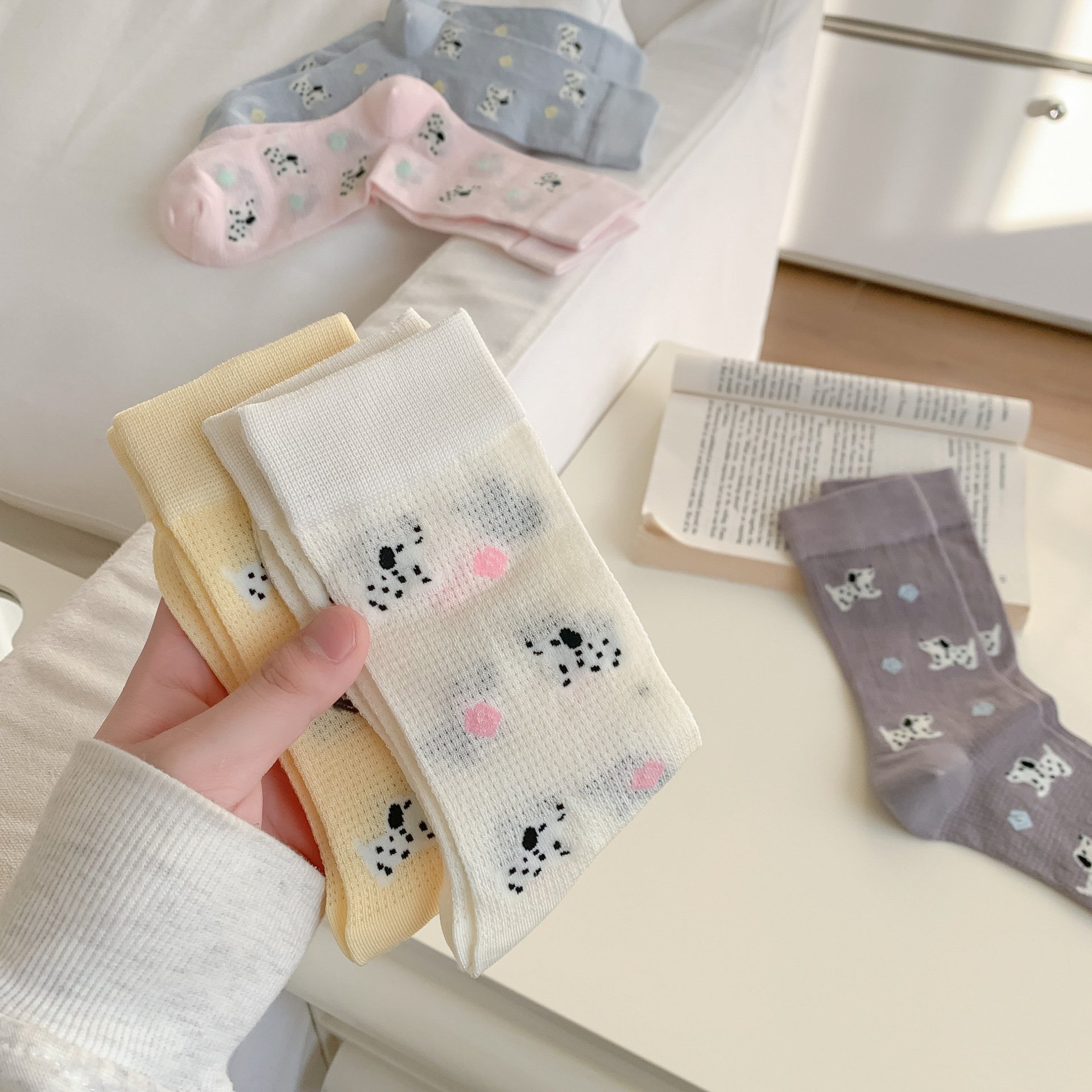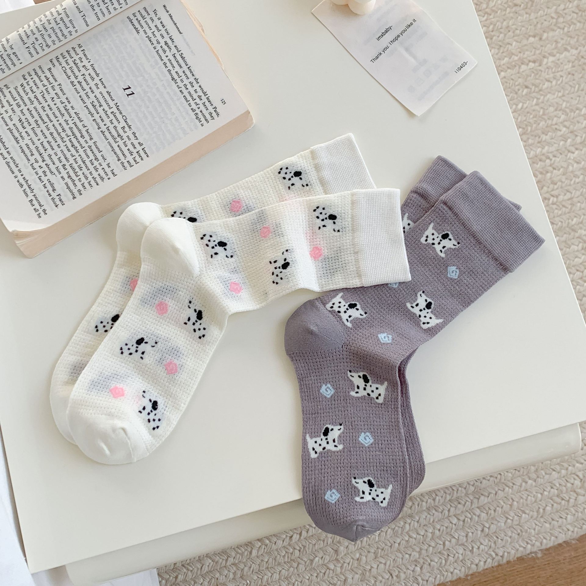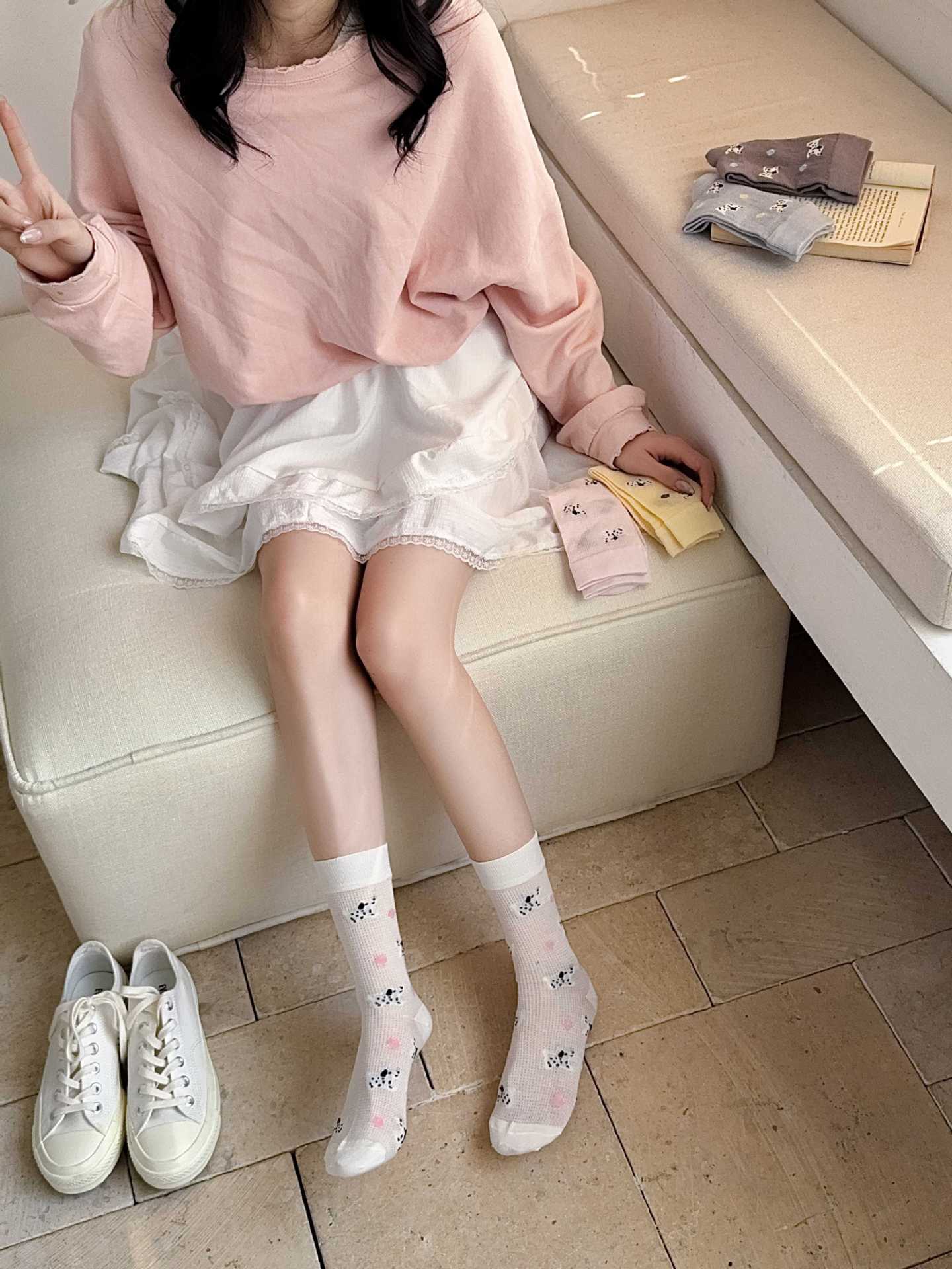 꽃밭 토끼 봄 가을 귀여운 강아지 만화 패턴 트렌디 여름 여성 중목 양말 달콤하고 통기성 좋은 모달 양말스토어 가기