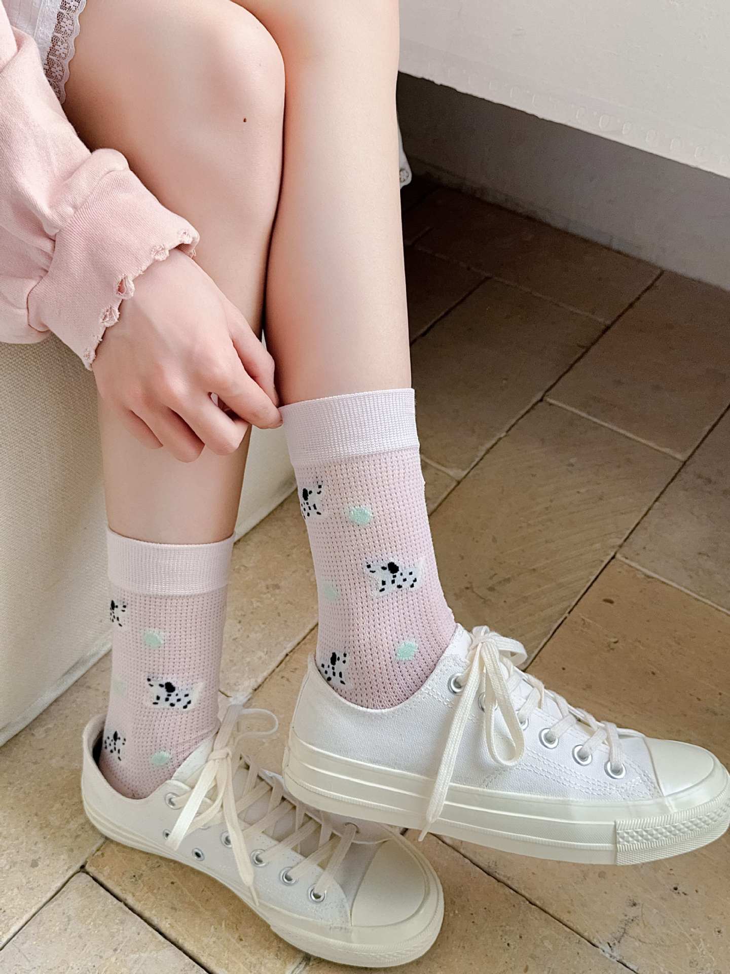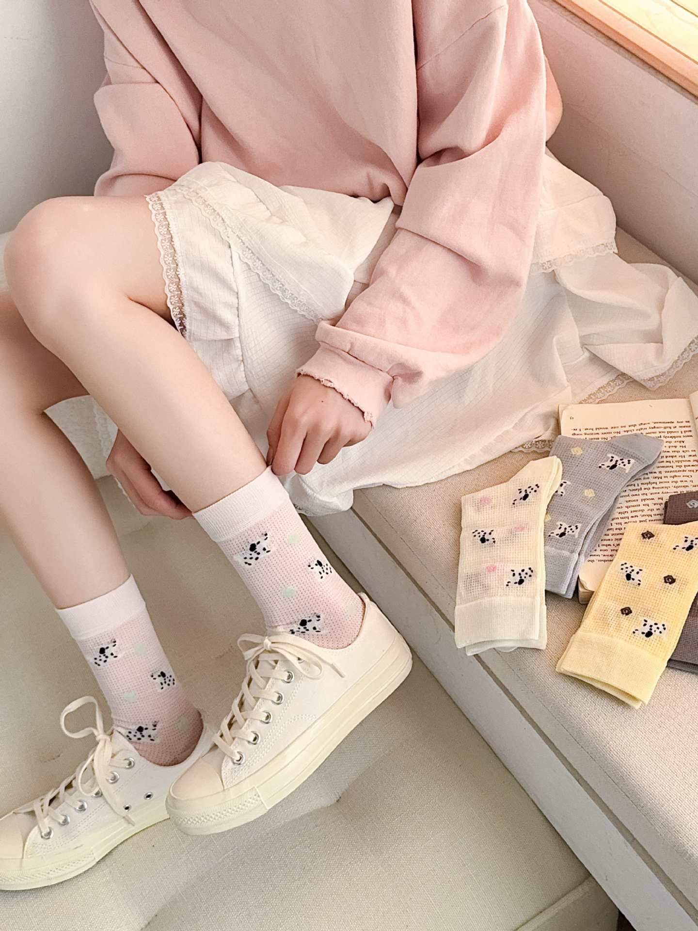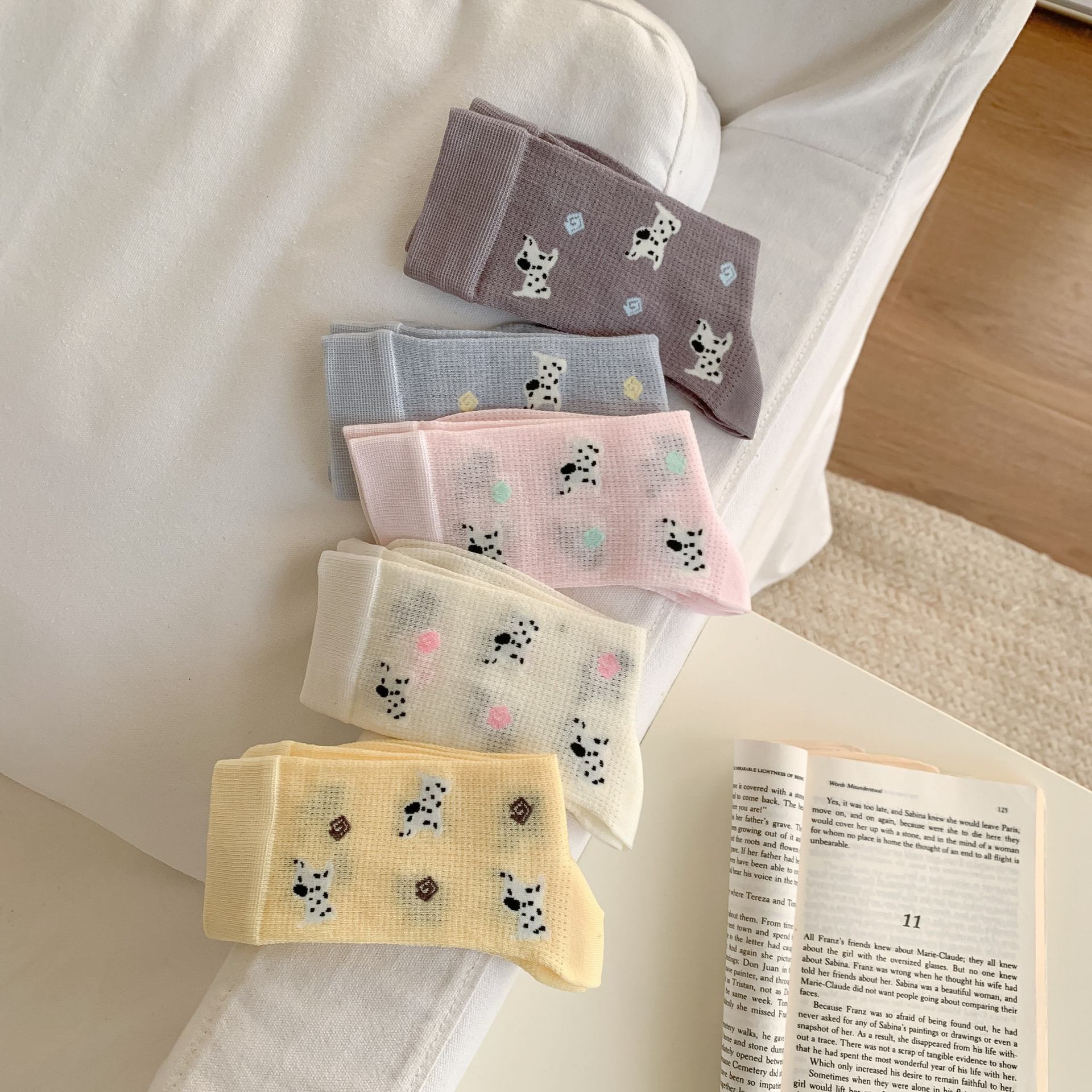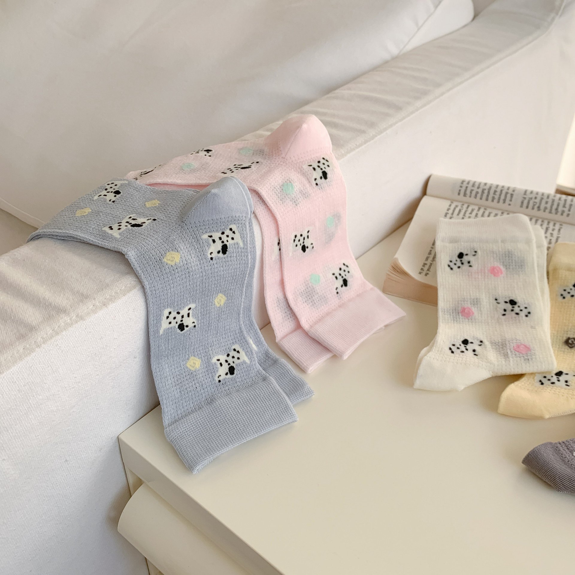 꽃밭 토끼 봄 가을 귀여운 강아지 만화 패턴 트렌디 여름 여성 중목 양말 달콤하고 통기성 좋은 모달 양말스토어 가기