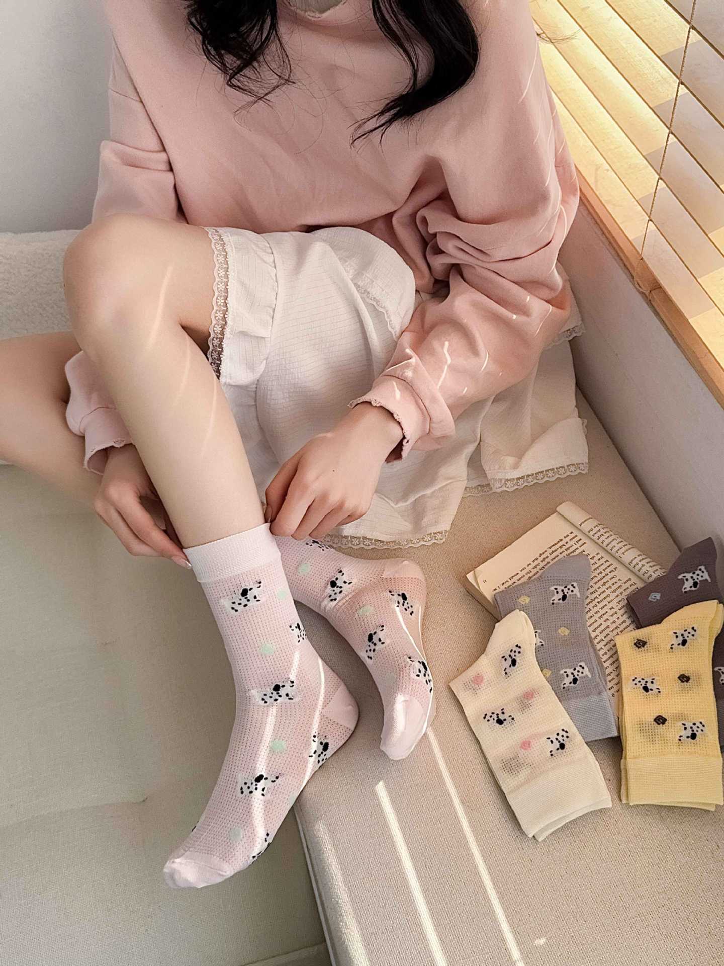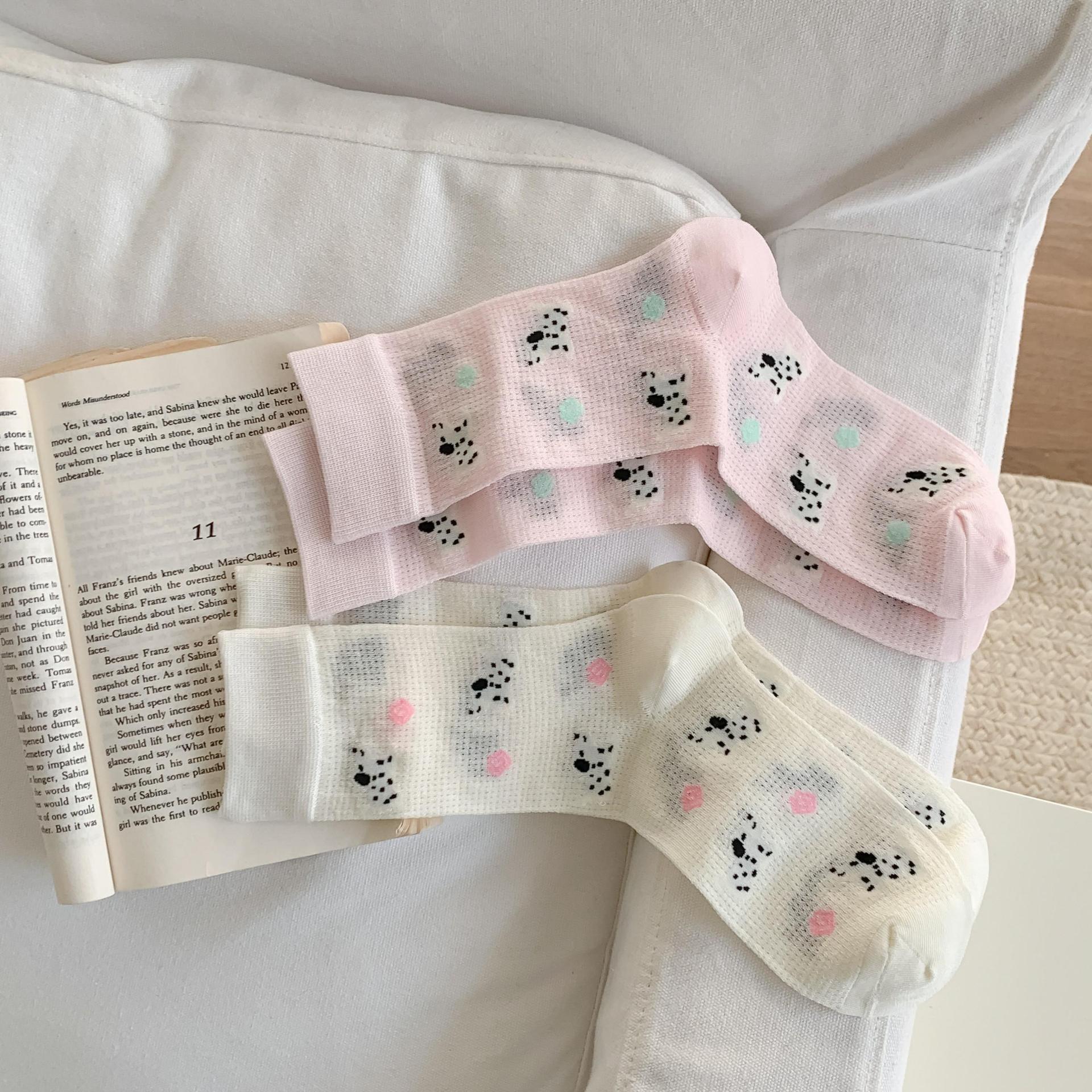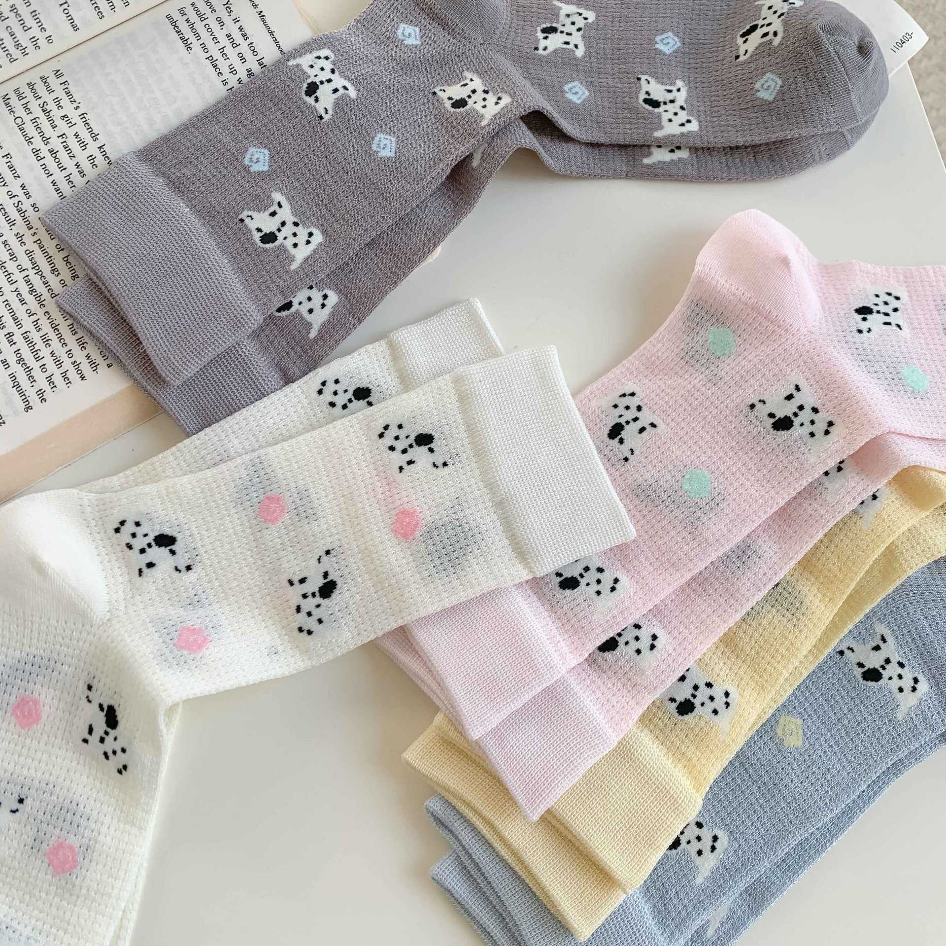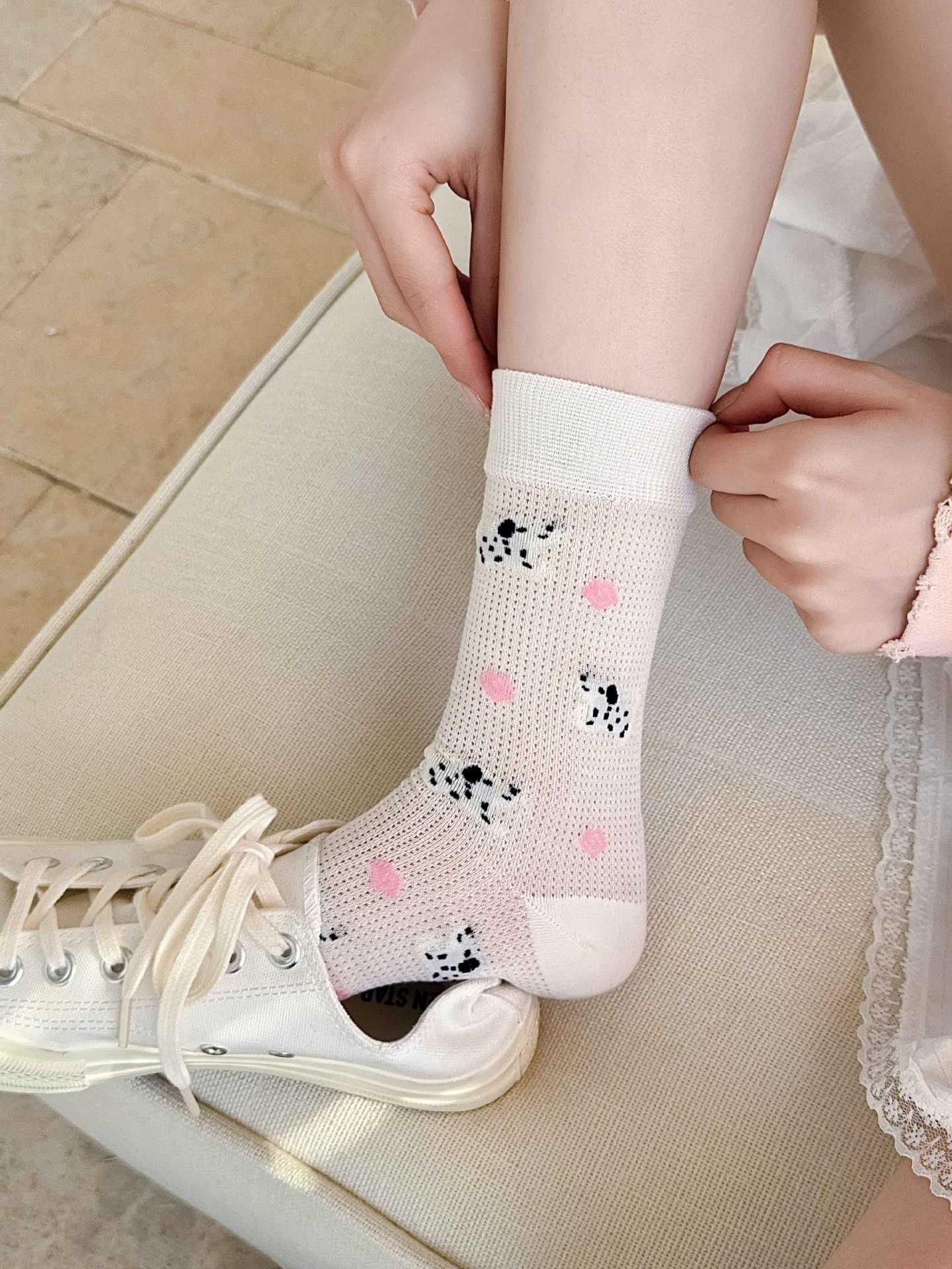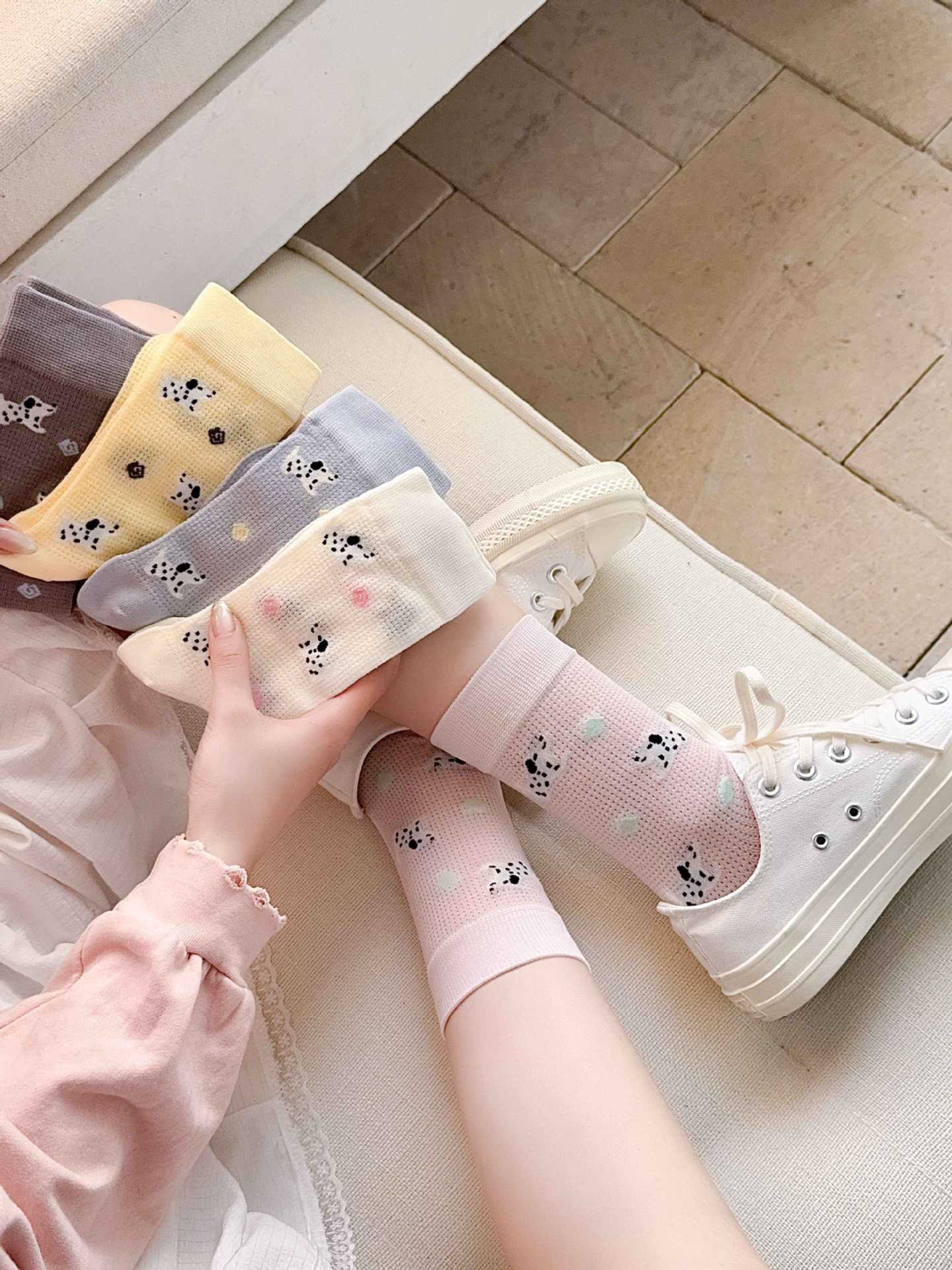 꽃밭 토끼 봄 가을 귀여운 강아지 만화 패턴 트렌디 여름 여성 중목 양말 달콤하고 통기성 좋은 모달 양말
