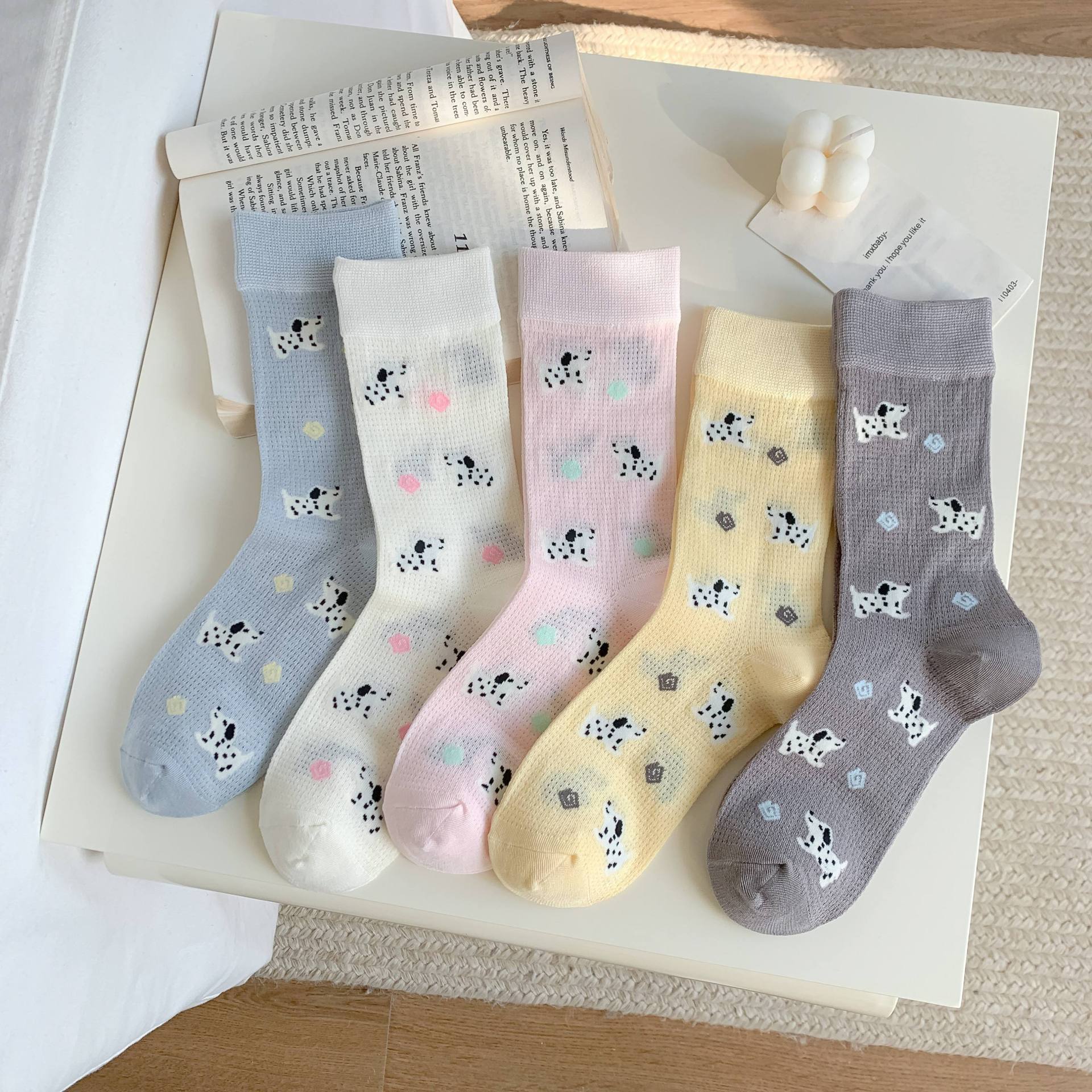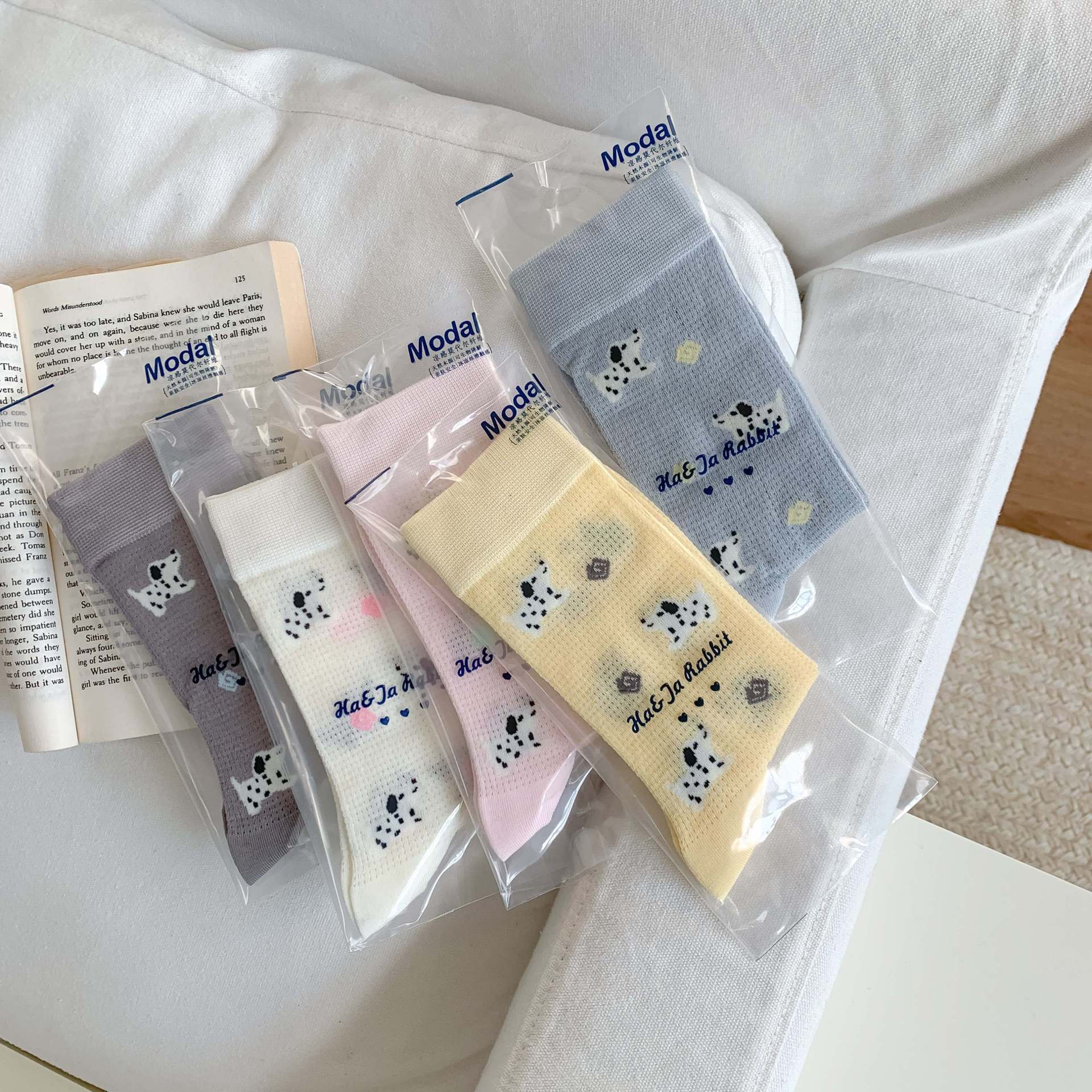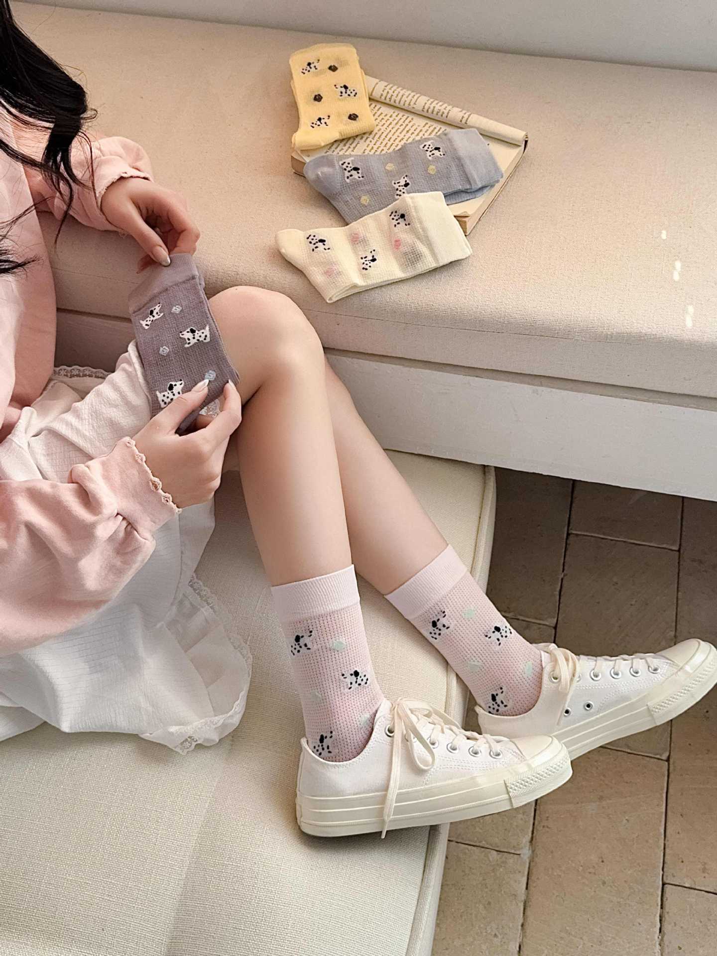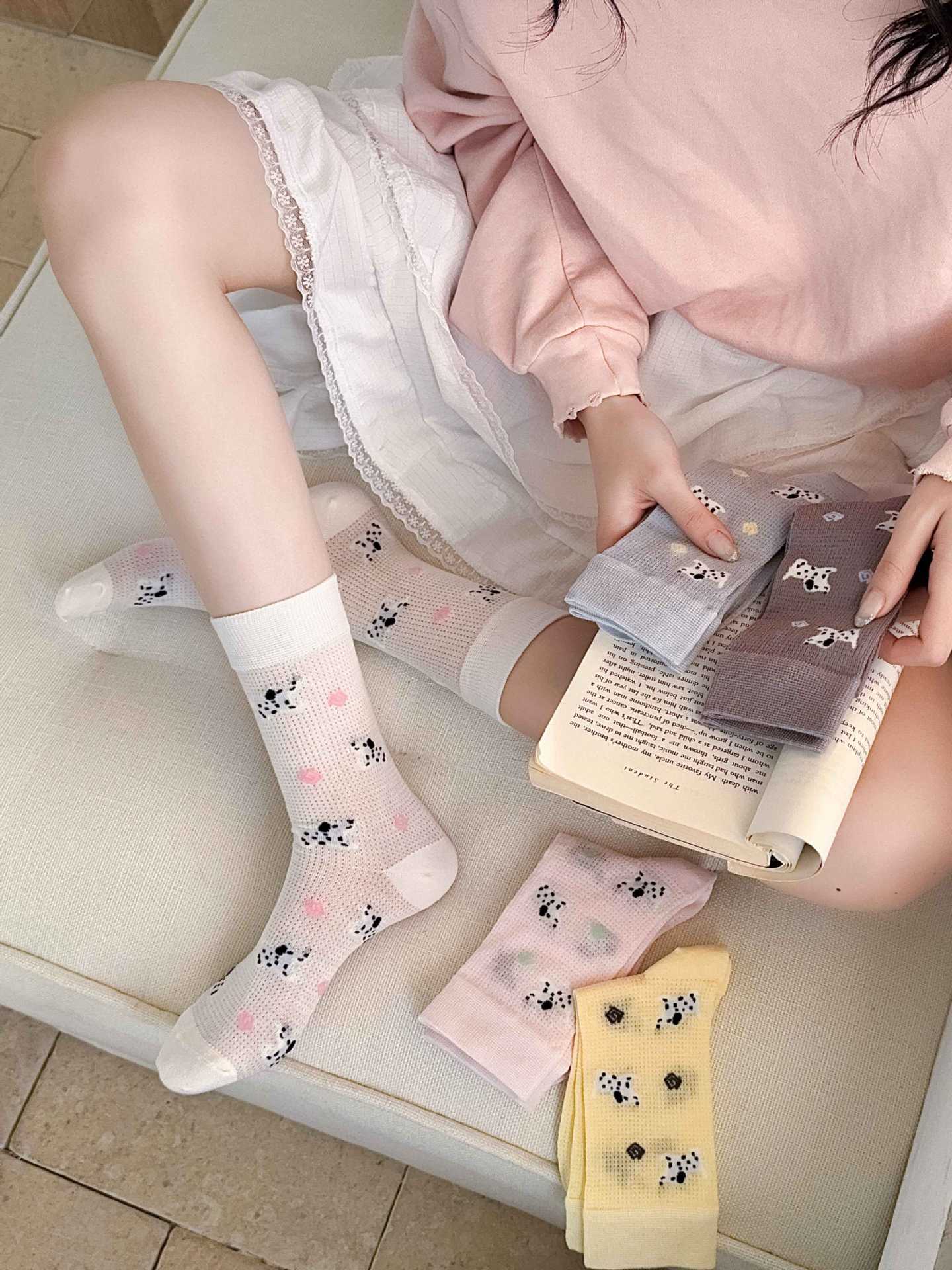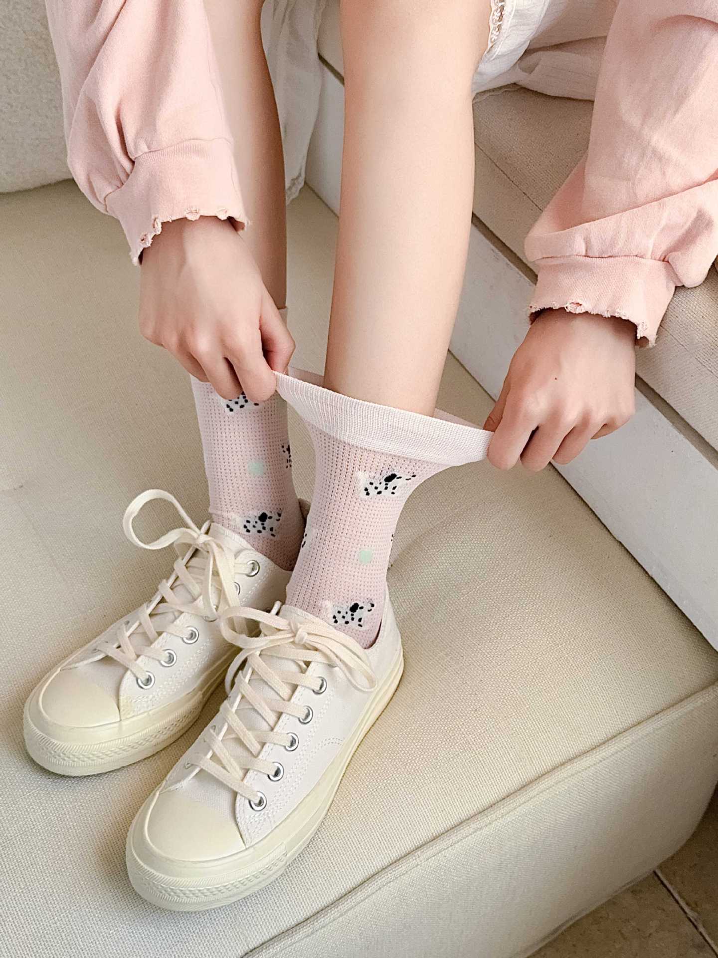 꽃밭 토끼 봄 가을 귀여운 강아지 만화 패턴 트렌디 여름 여성 중목 양말 달콤하고 통기성 좋은 모달 양말