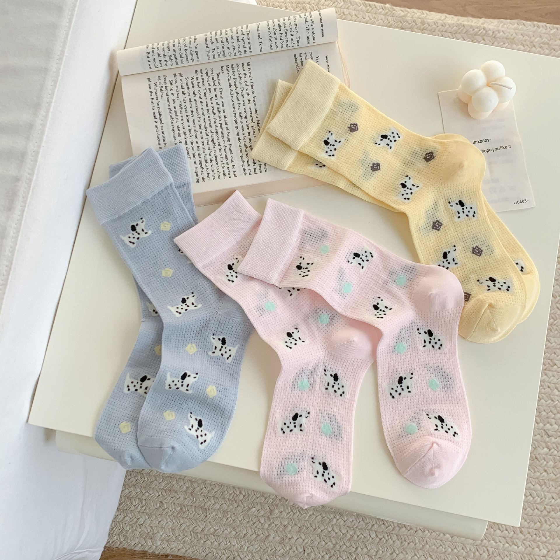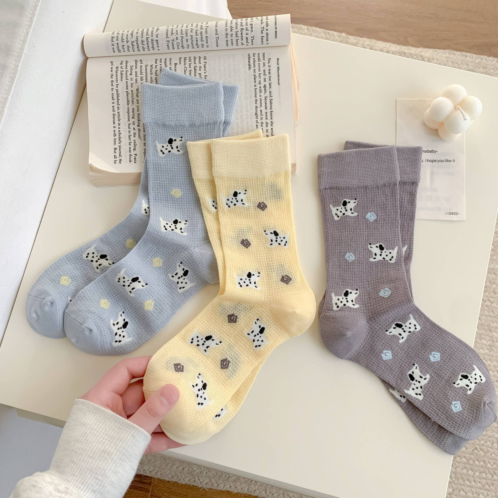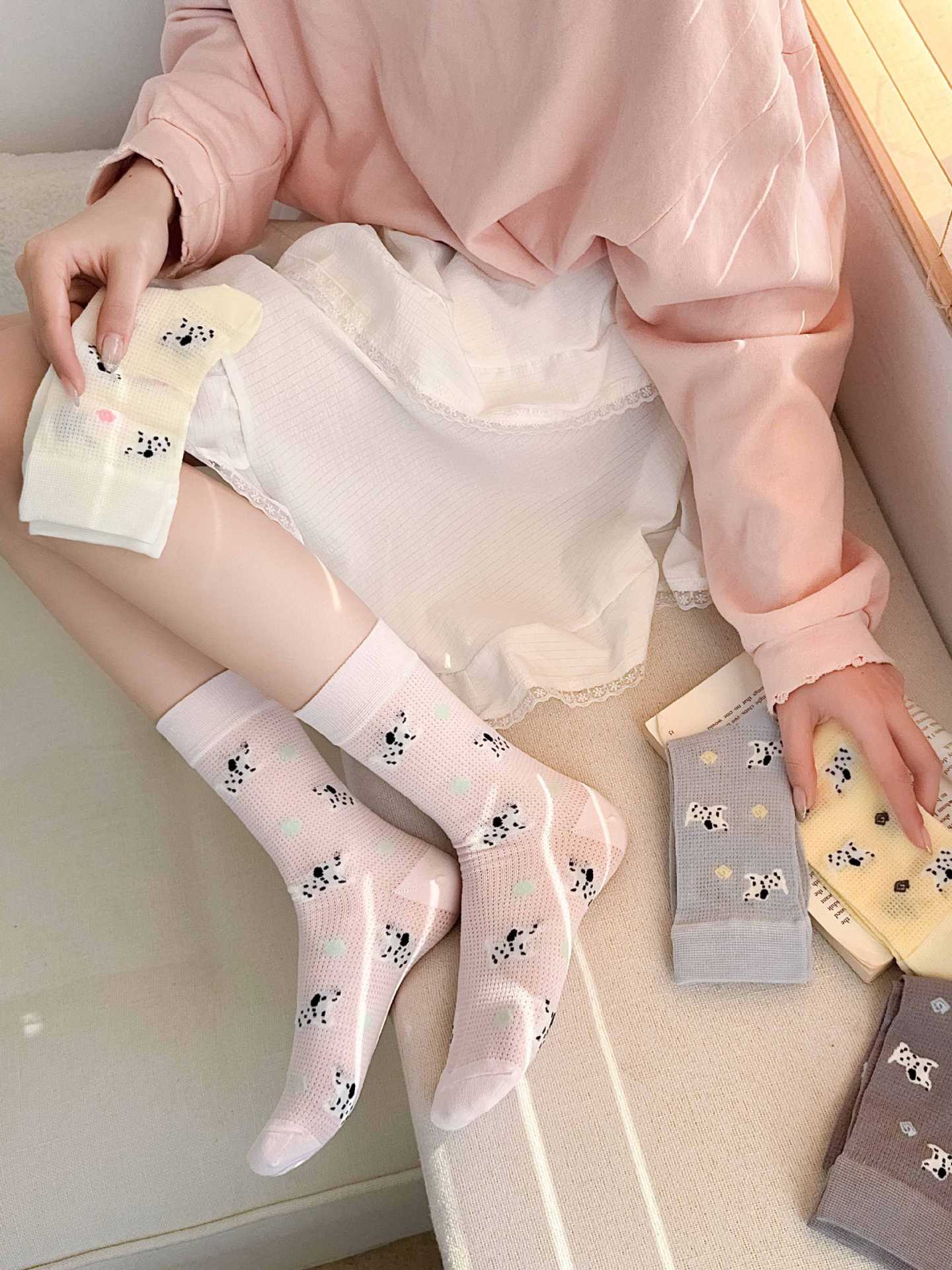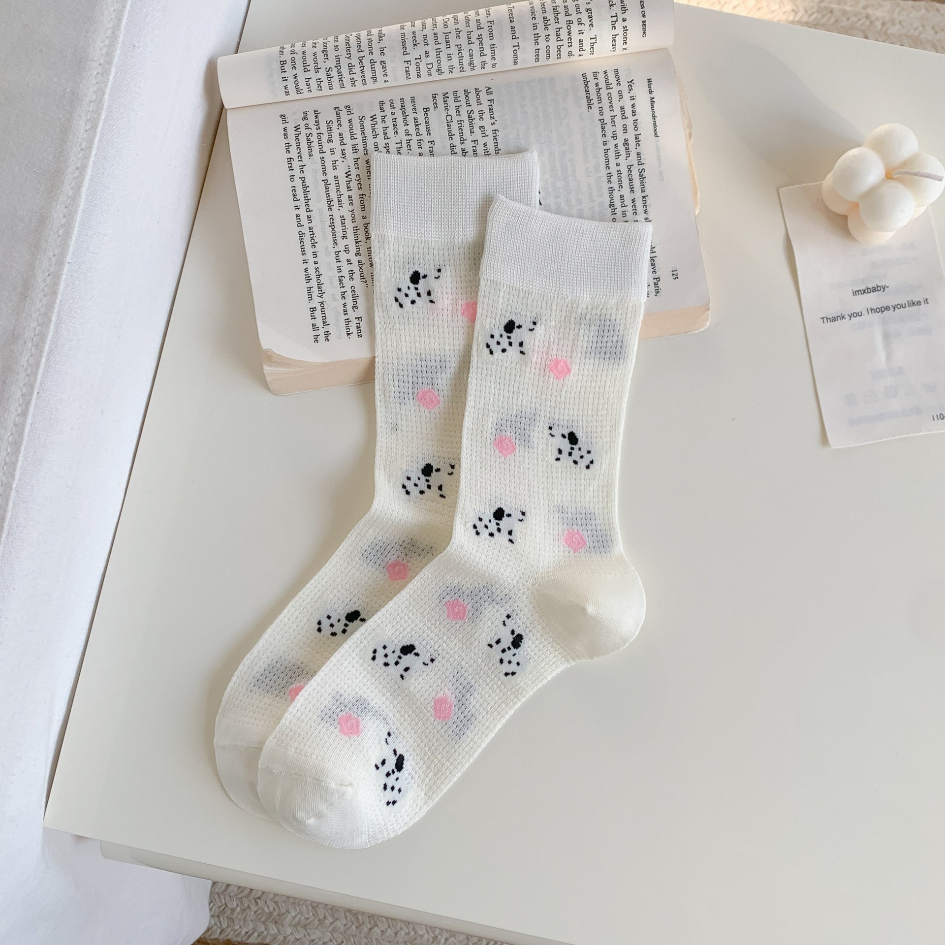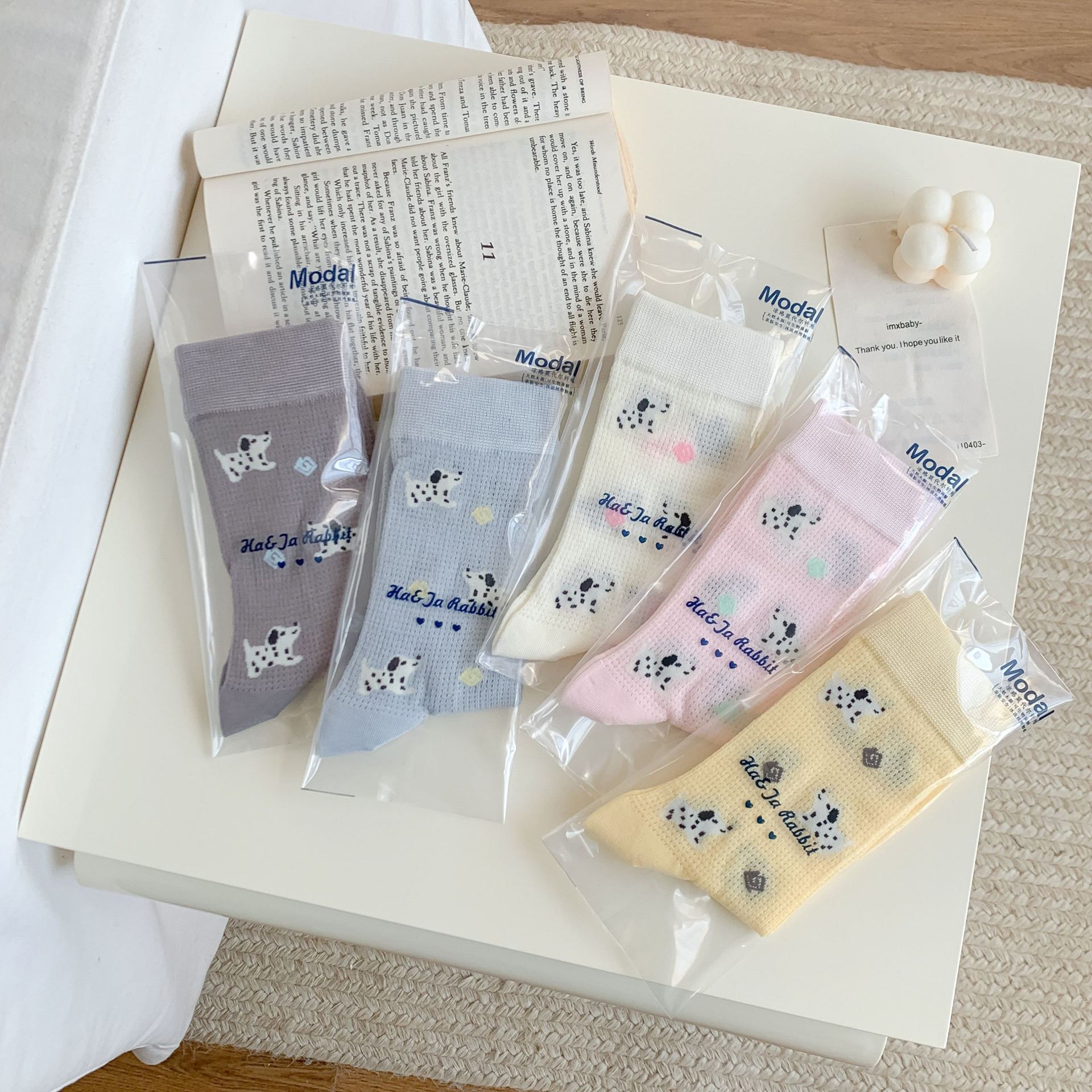 꽃밭 토끼 봄 가을 귀여운 강아지 만화 패턴 트렌디 여름 여성 중목 양말 달콤하고 통기성 좋은 모달 양말