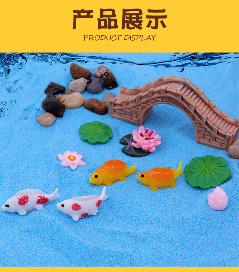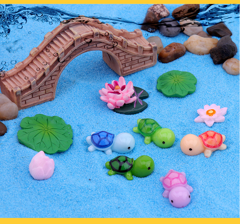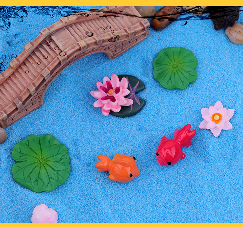 금붕어 모래 상자 diy 마이크로 풍경 수족관 장식 물고기 탱크 수경 거북이 작은 물고기 수지 장식품 잉어 연꽃 잎 꽃스토어 가기