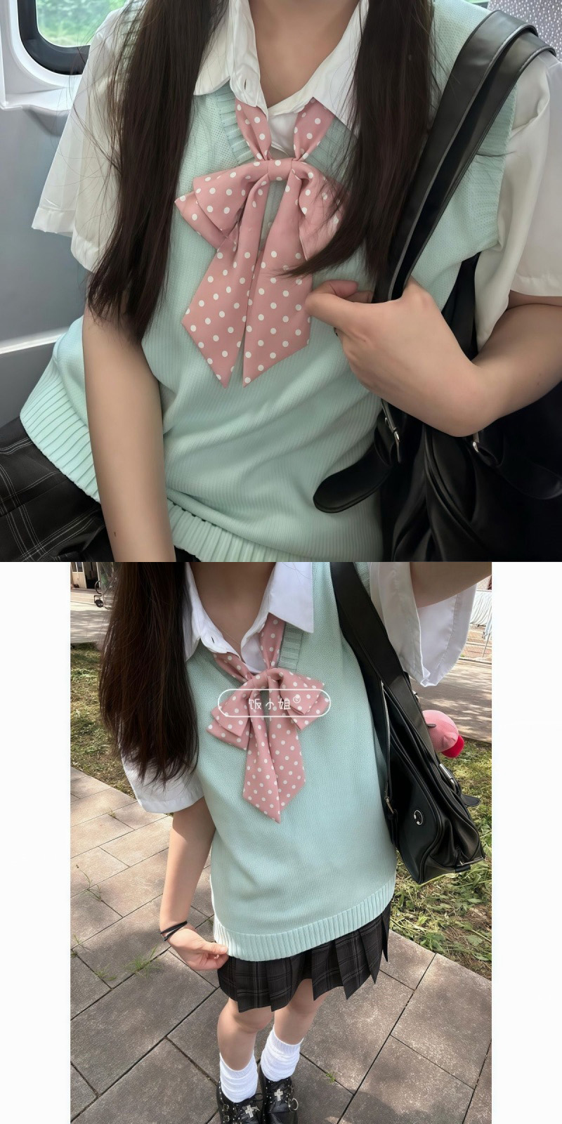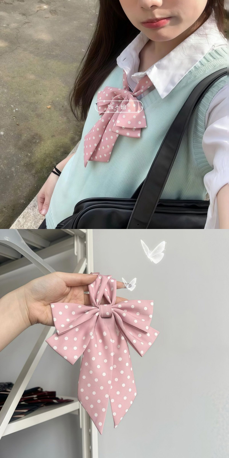 오리지널 jk 유니폼 넥타이 폴카 도트 롱 핸들 넥타이 소녀 귀여운 학생 소녀 대학 스타일 액세서리 넥타이스토어 가기
